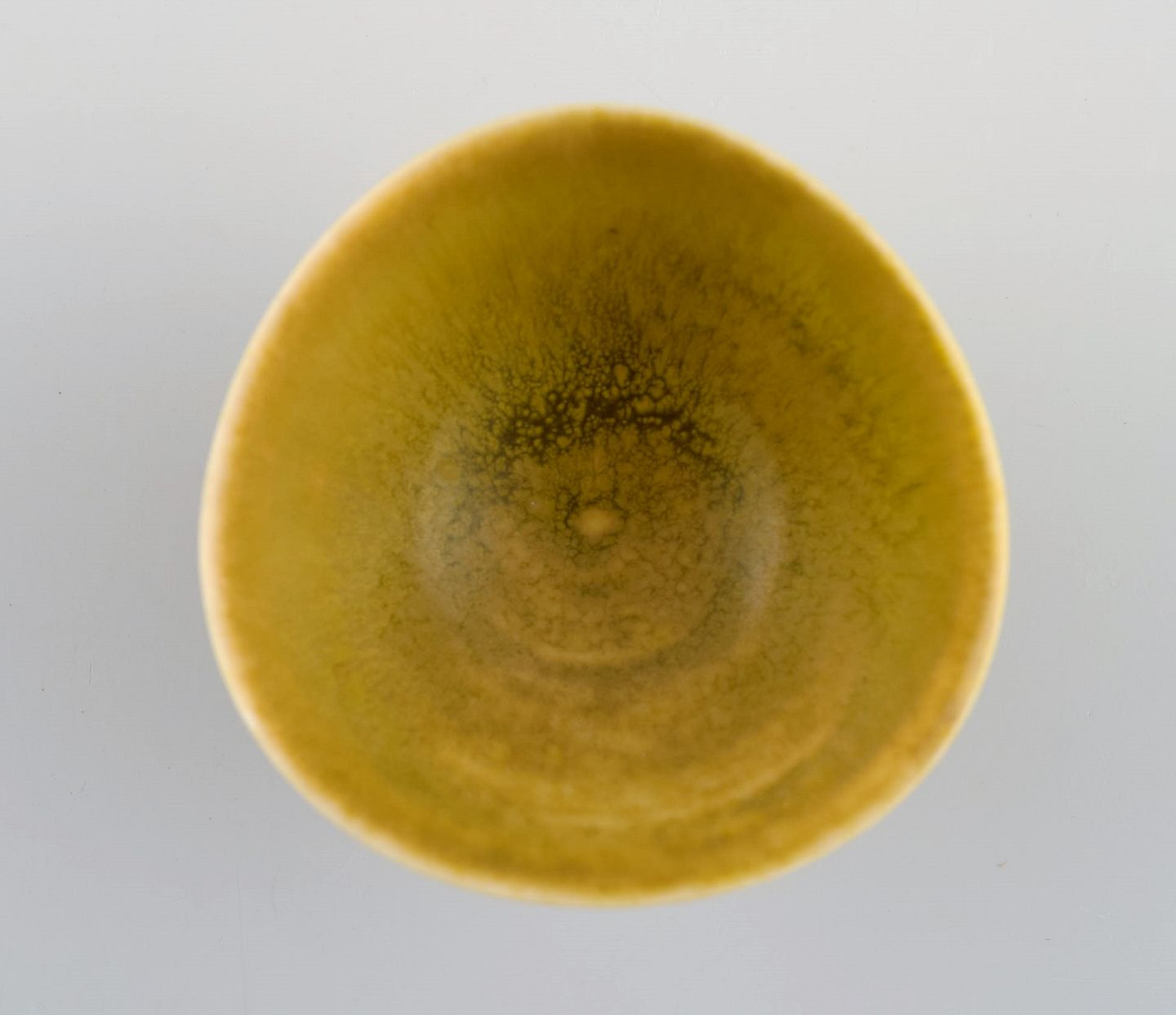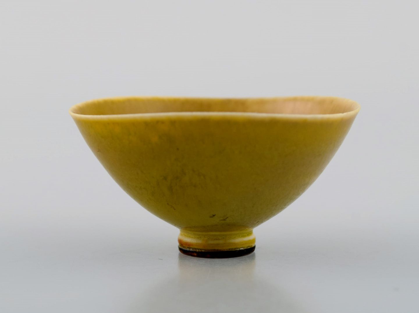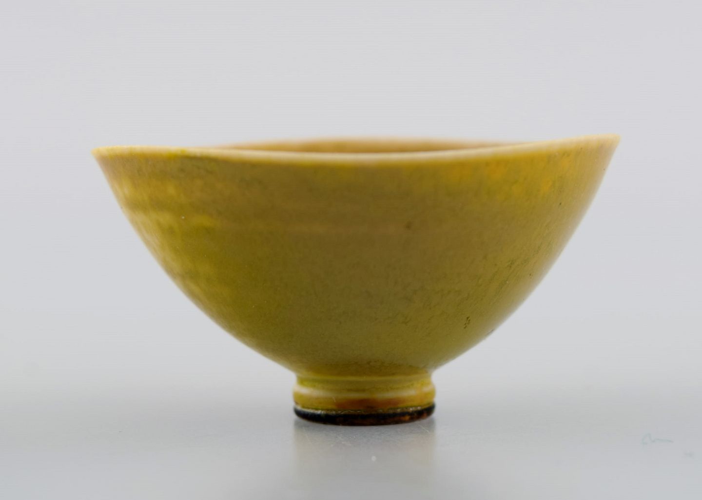Berndt Friberg (1899-1981) for Gustavsberg Studiohand. Miniature skål i glaseret stentøj. Smuk glasur i gule nuancer. 1960'erne. Måler: 5,8 x 3,2 cm. I flot stand. Signeret.