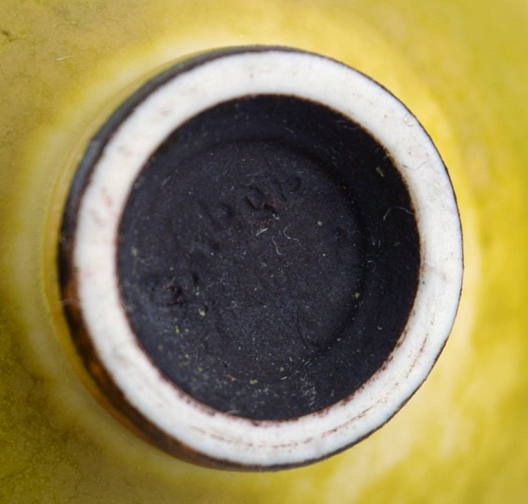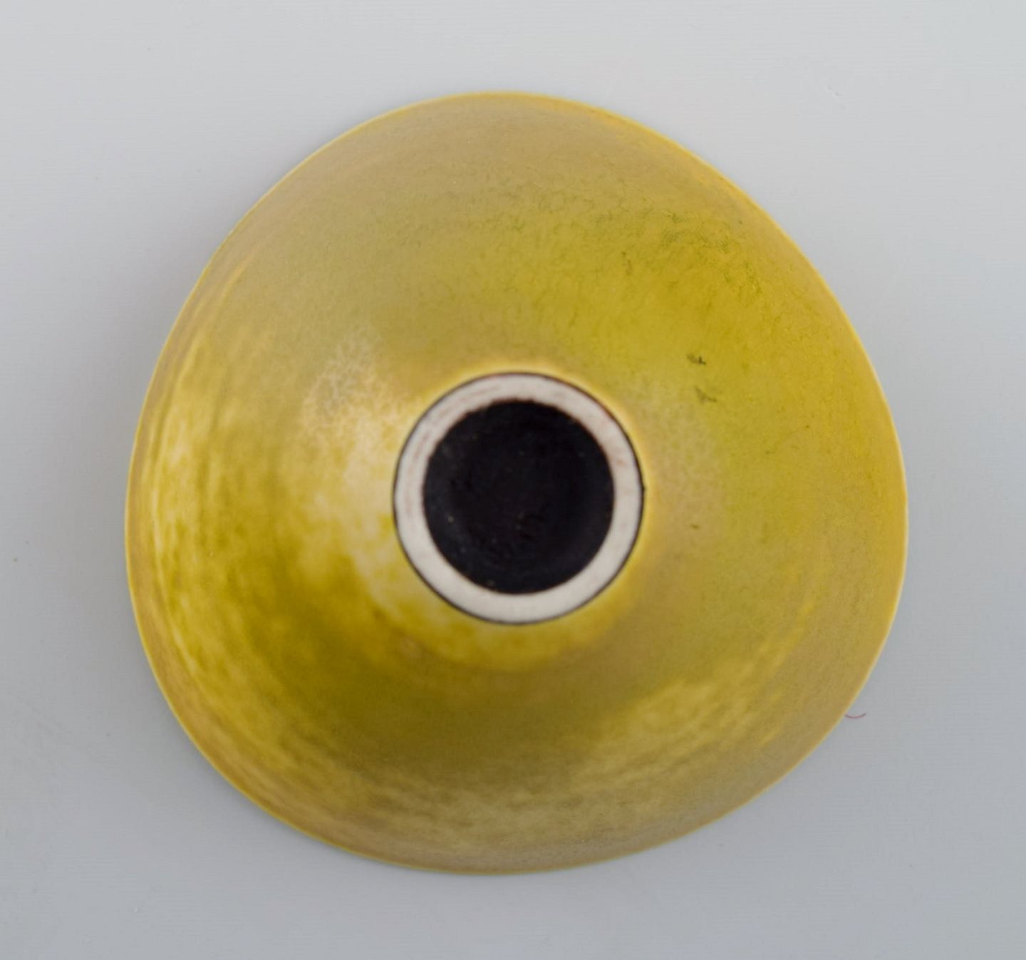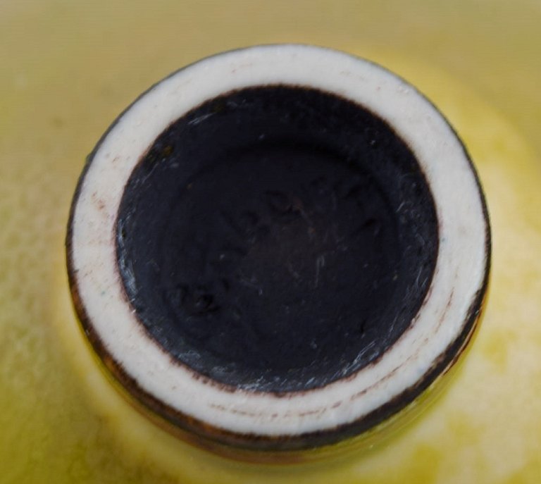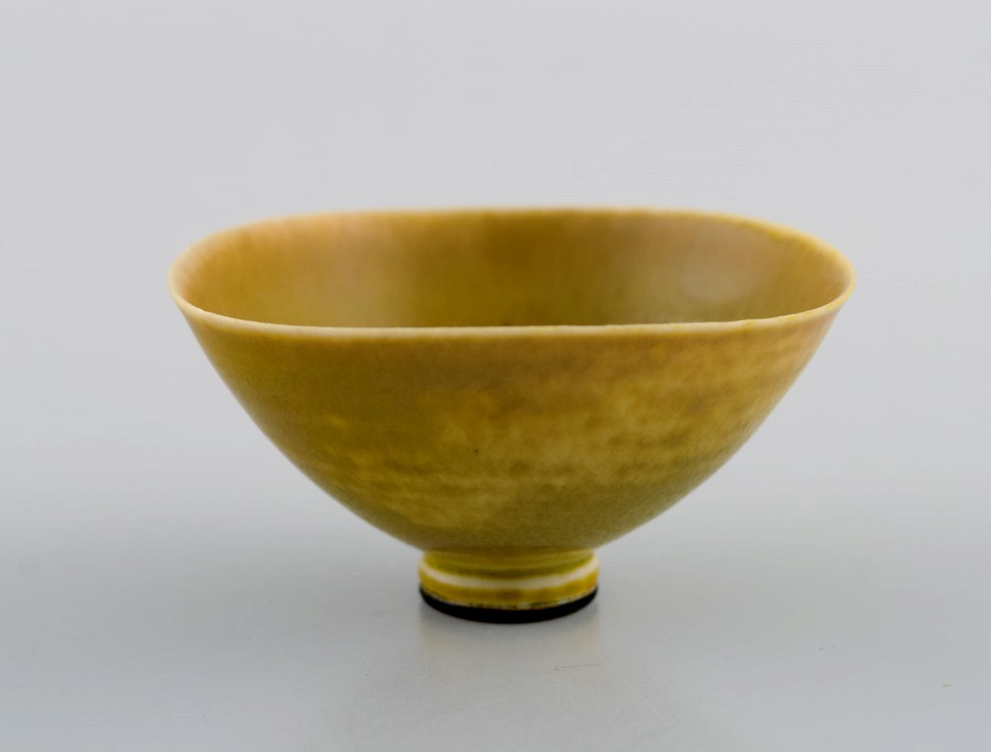 Berndt Friberg (1899-1981) for Gustavsberg Studiohand. Miniature skål i glaseret stentøj. Smuk glasur i gule nuancer. 1960'erne. Måler: 5,8 x 3,2 cm. I flot stand. Signeret.