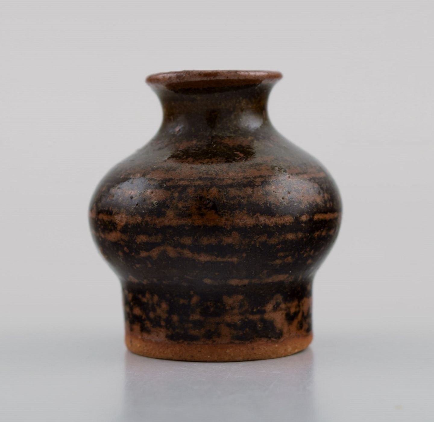 Jacob Bang (1932-2011) for Arne Bang. Unique miniature vase in glazed stoneware. Beautiful glaze in brown shades. Mid-20th century. Measures: 4.7 x 4.5 cm. In excellent condition. Signed.