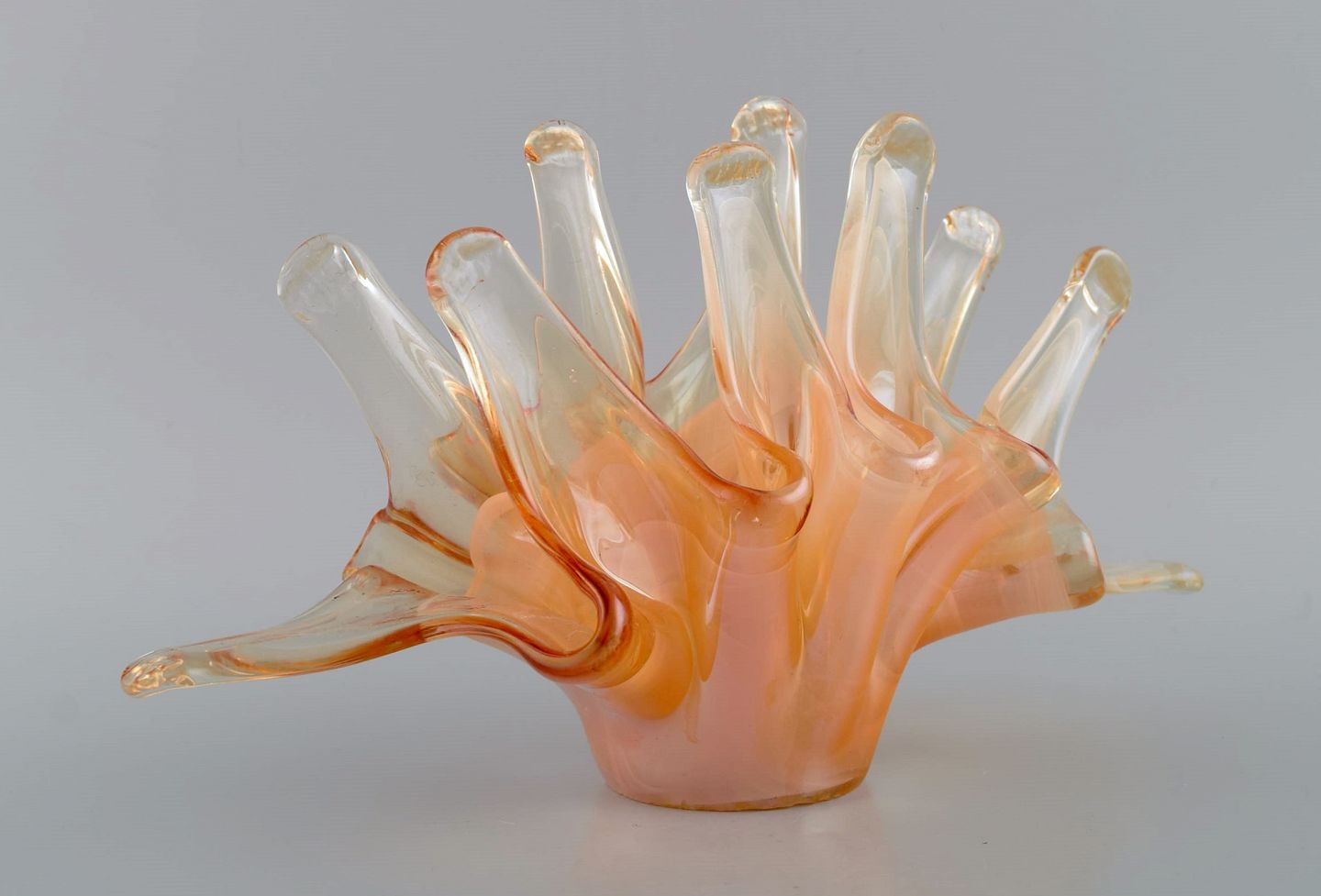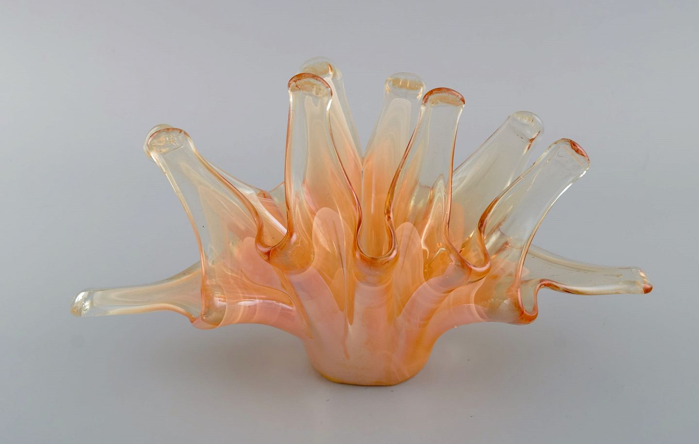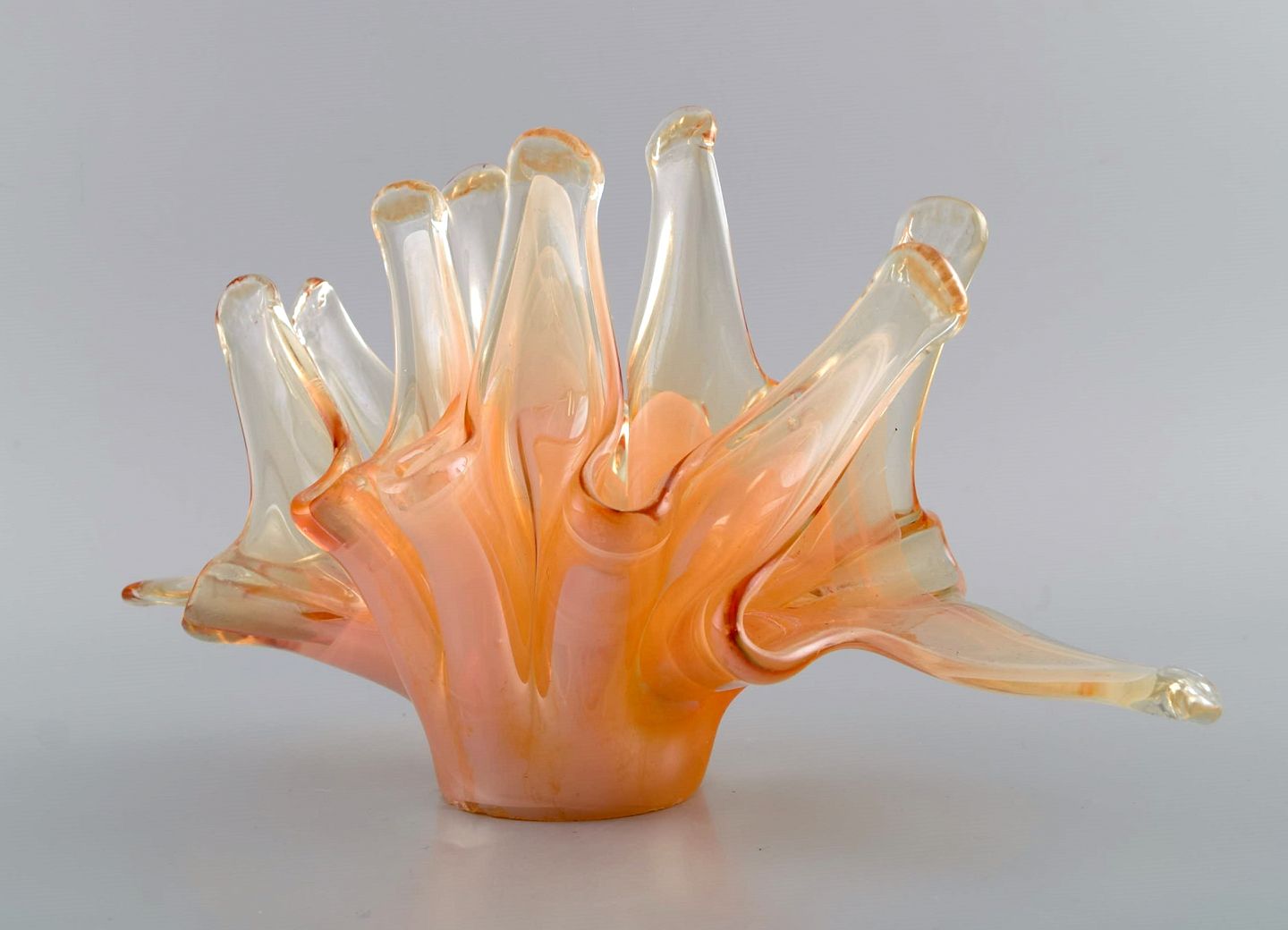 Large organically shaped Murano bowl in mouth blown art glass. 1960s / 70s. Measures: 32 x 17.5 x 13 cm. In excellent condition. Label.