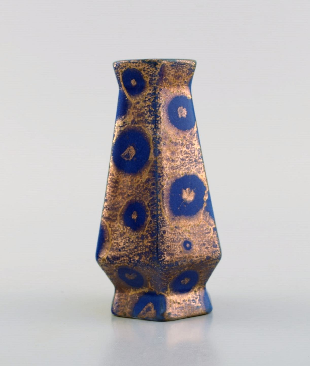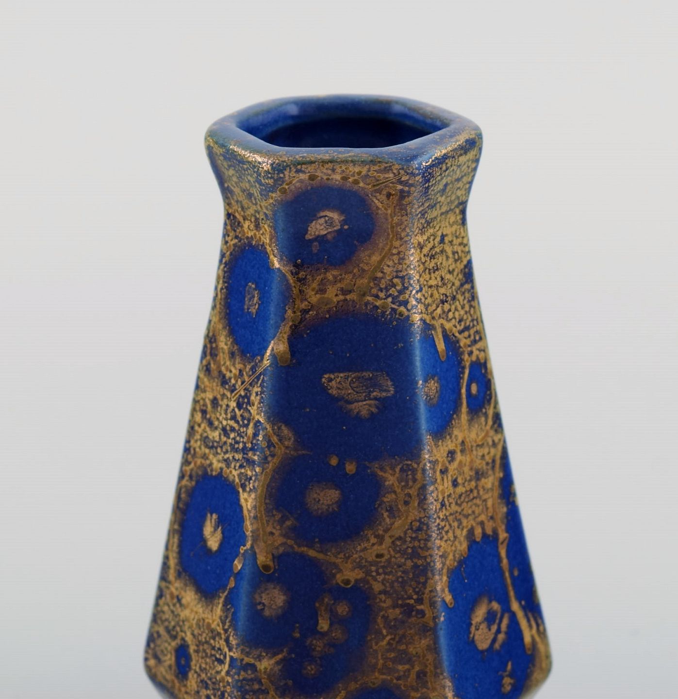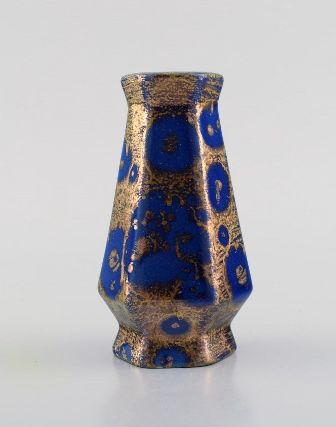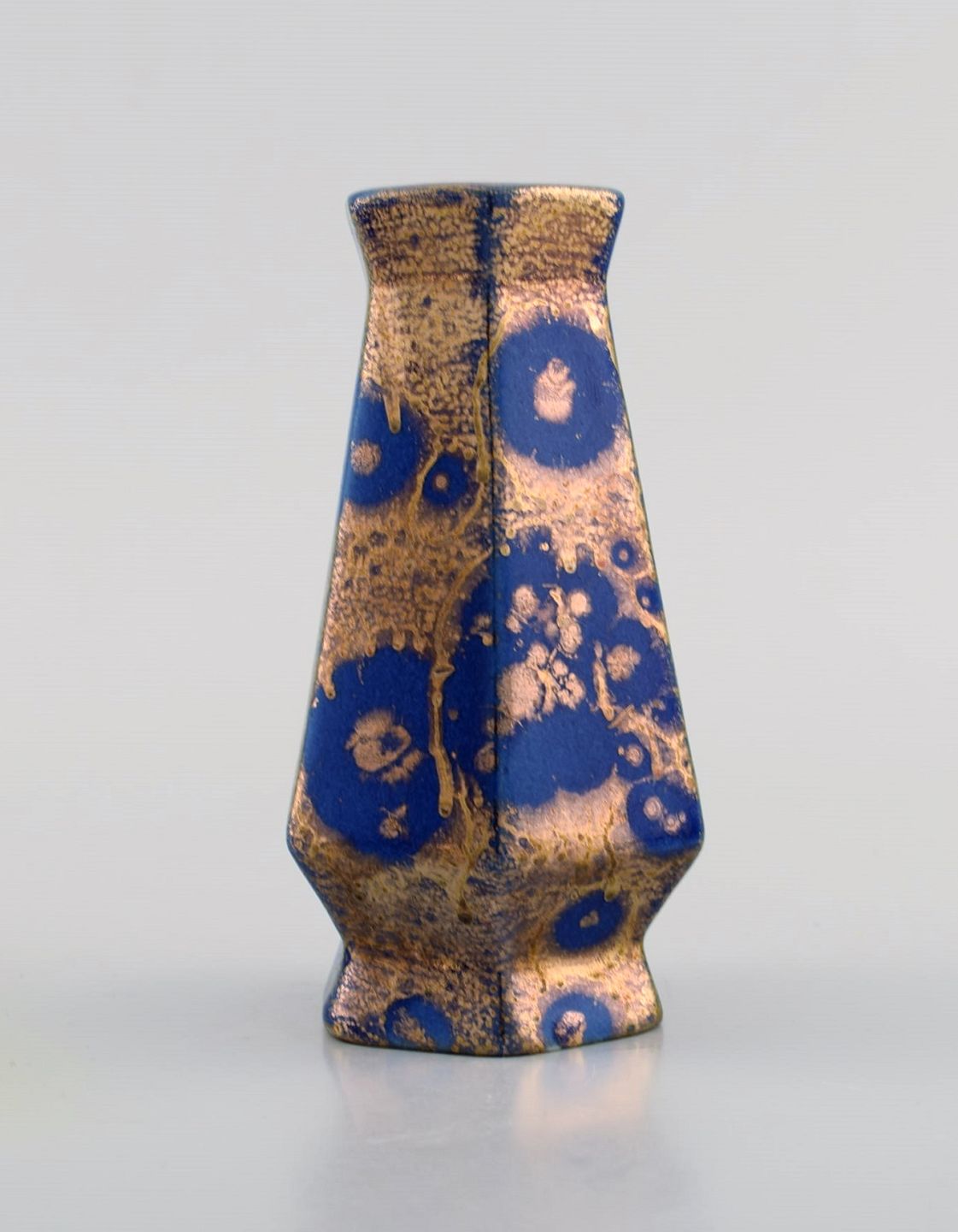 Lucien Brisdoux (1878-1963), Frankrig. Vase i glaseret stentøj. Smuk glasur i guld og blå nuancer. 1930/40'erne.