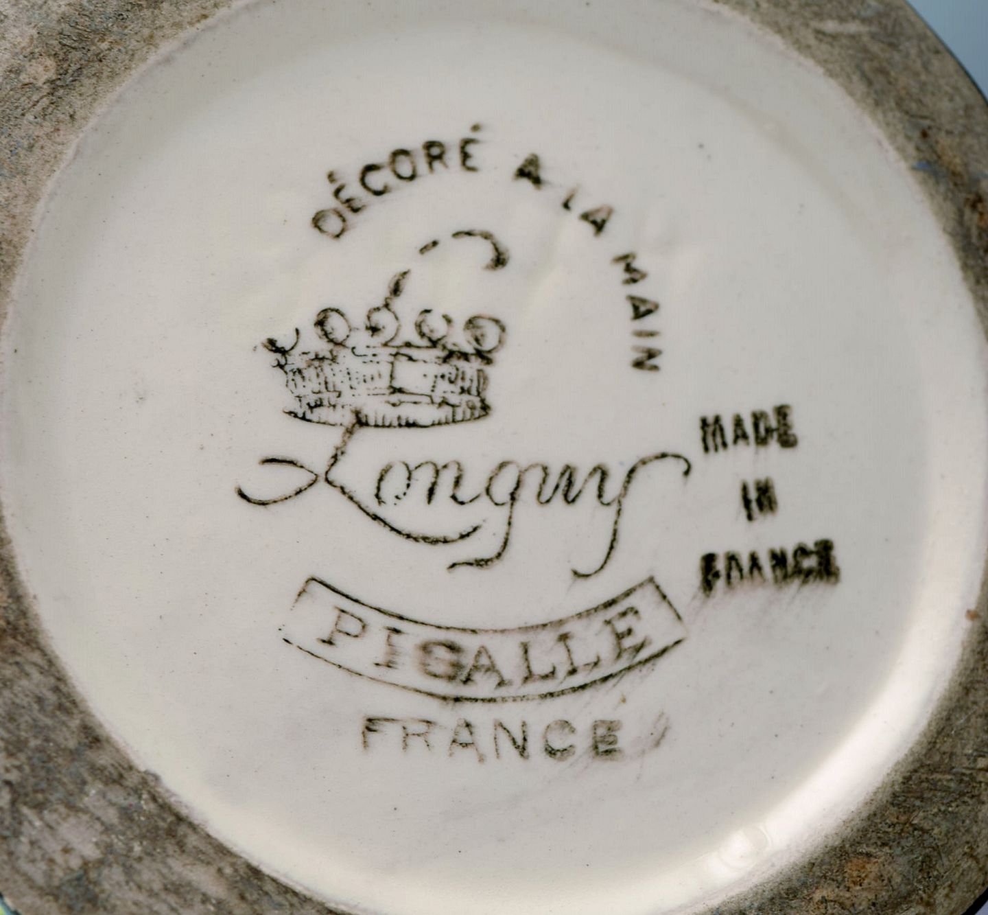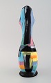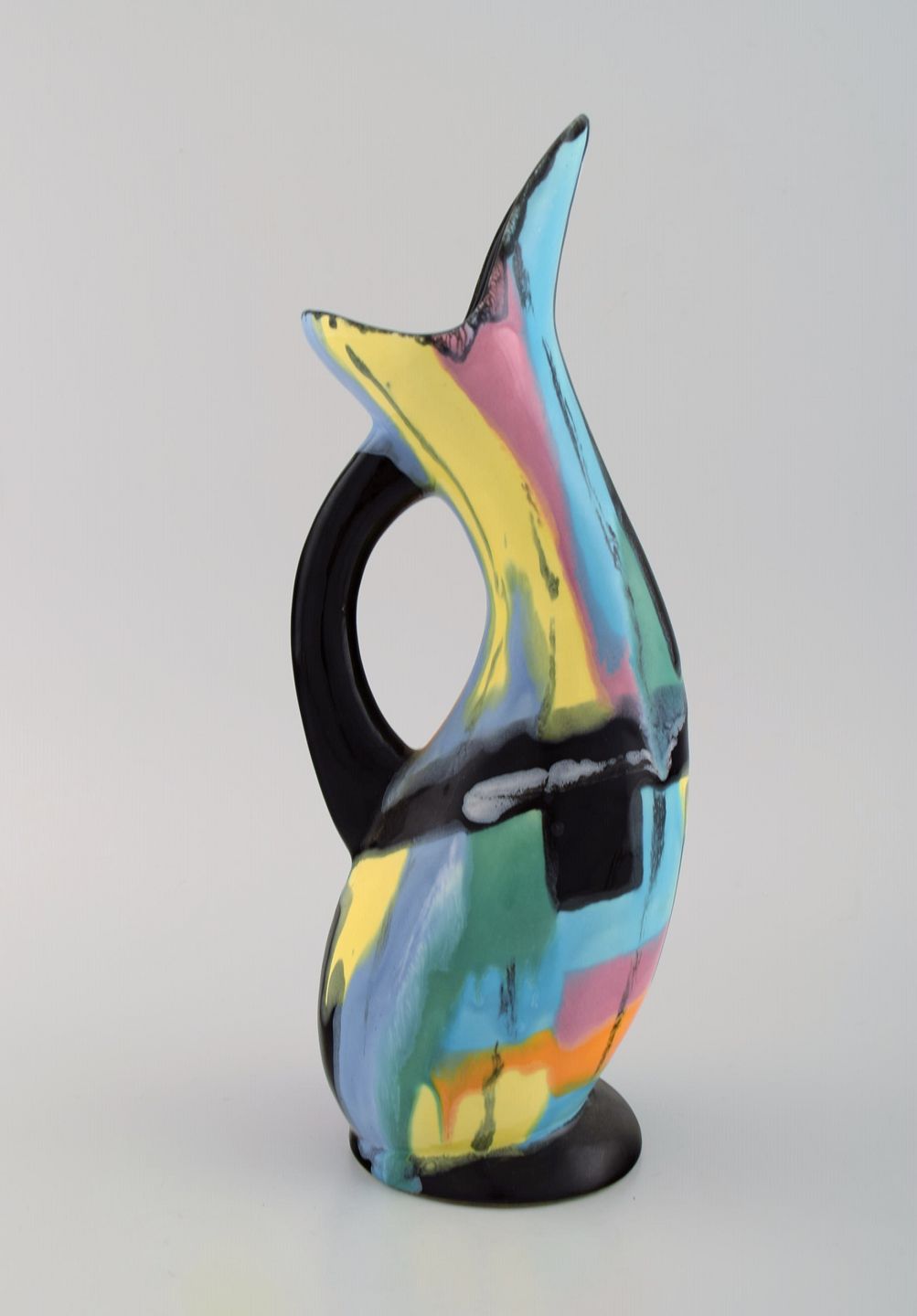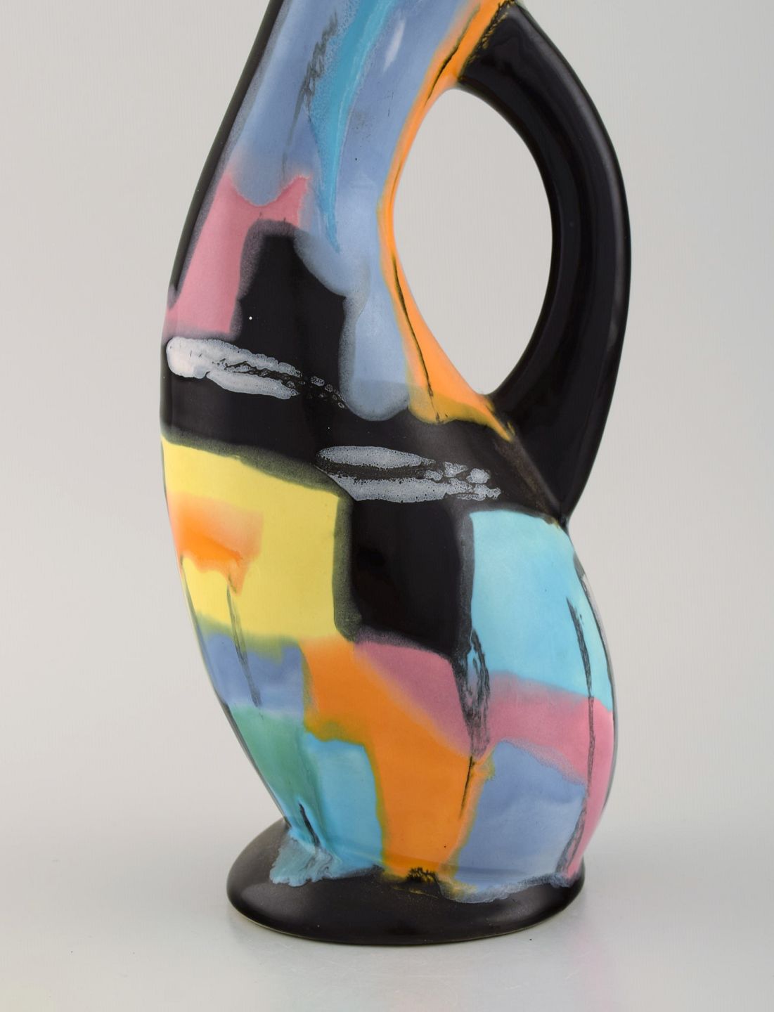 Longwy, France. Pigalle pitcher in hand-painted glazed ceramics. Abstract polychrome decoration. Mid-20th century. Measures: 30 x 11.5 cm. In excellent condition. Stamped.