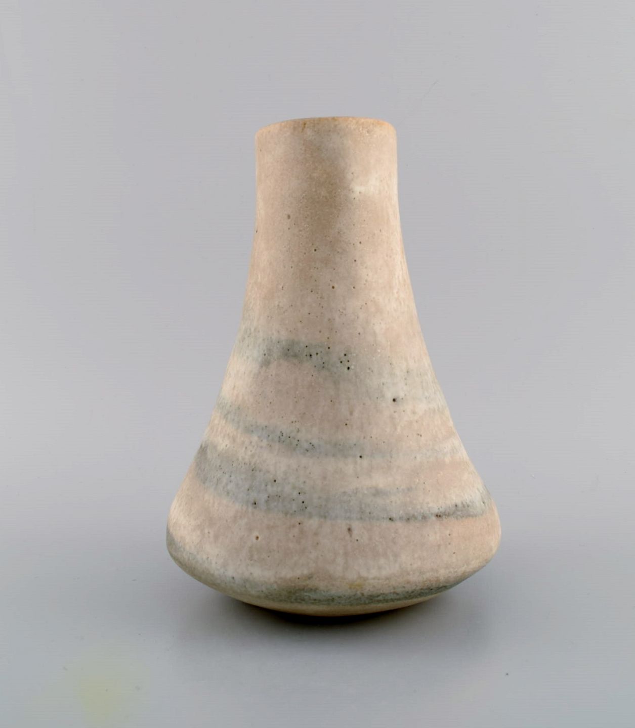Lucie Rie (f. 1902, d. 1995), østrigsk-født britisk keramiker. Stor modernistisk unika vase i glaseret stentøj. Smuk glasur i sand nuancer. Eget værksted, ca. 1970.