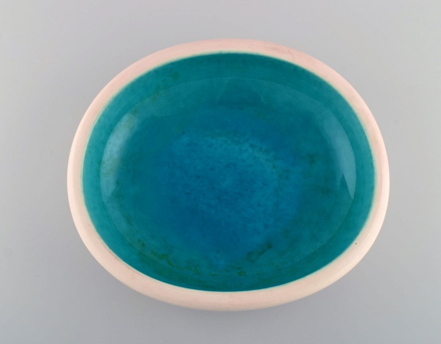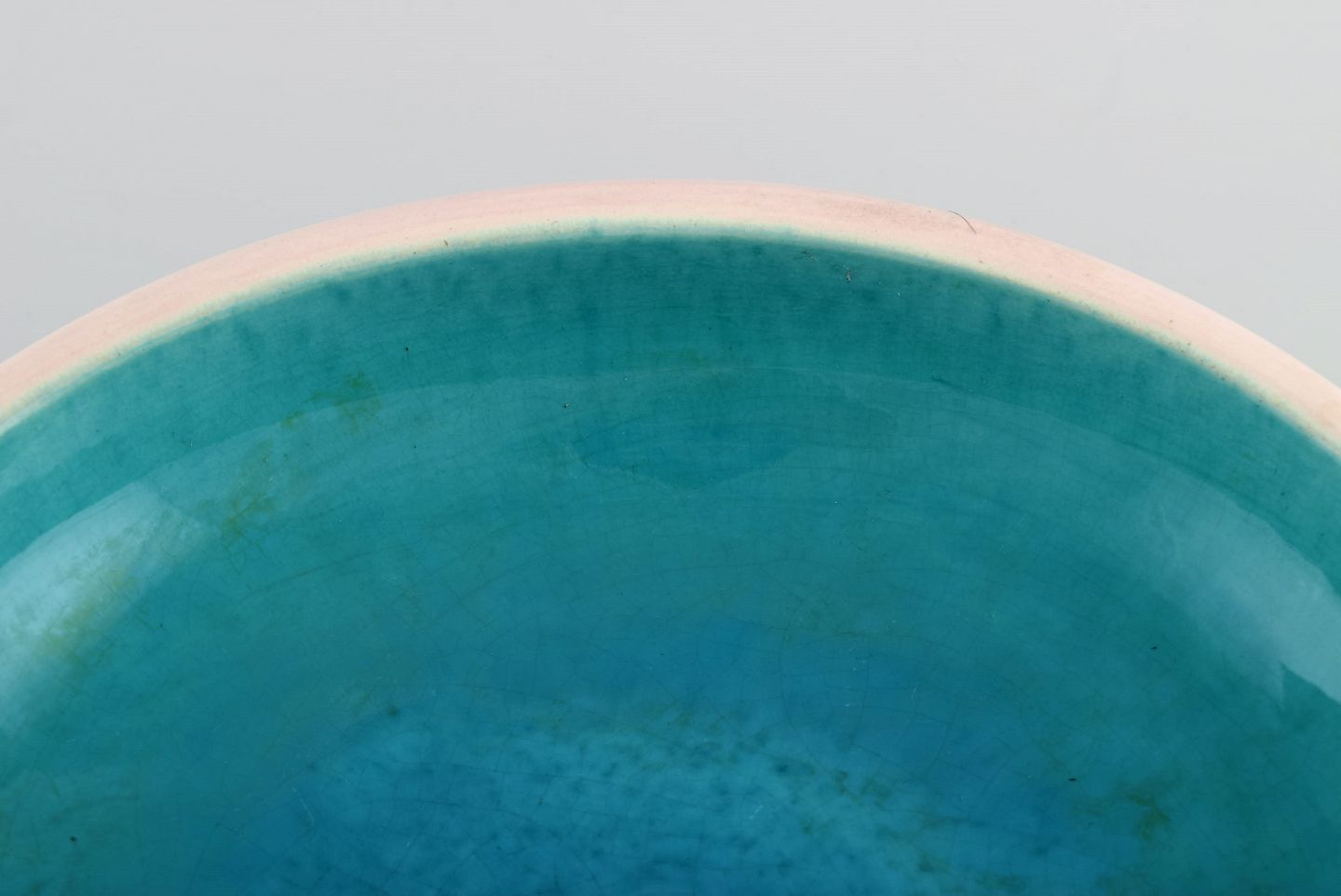 Keramos Sèvres, France. Large bowl in glazed stoneware. Beautiful turquoise glaze. Clean design, mid 20th century. Measures: 30.5 x 26 x 8.5 cm. In excellent condition. Signed.