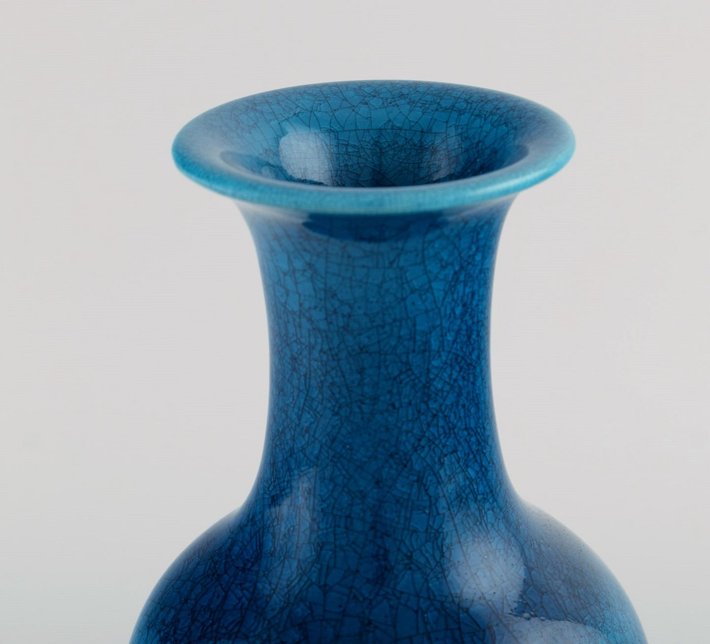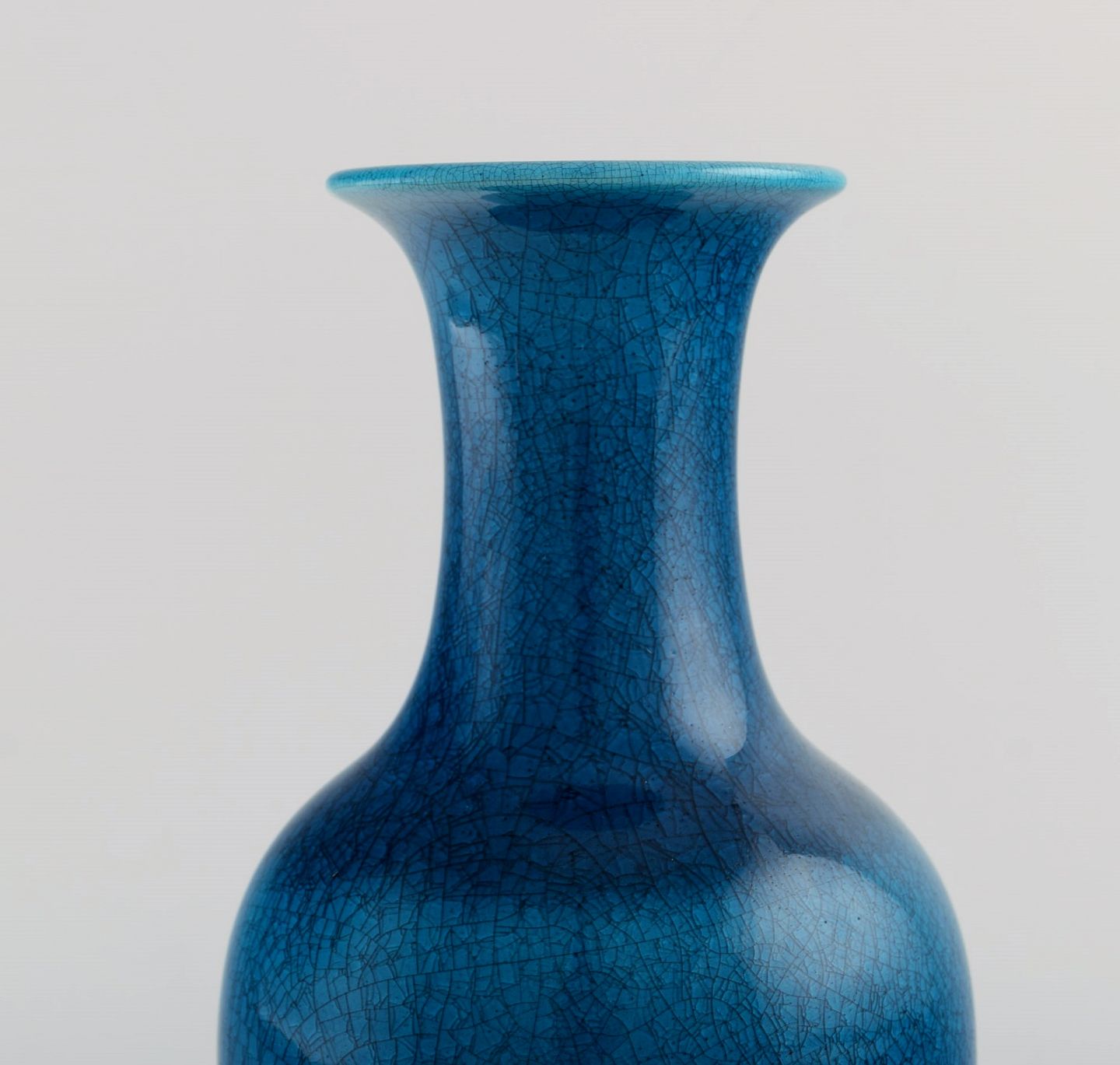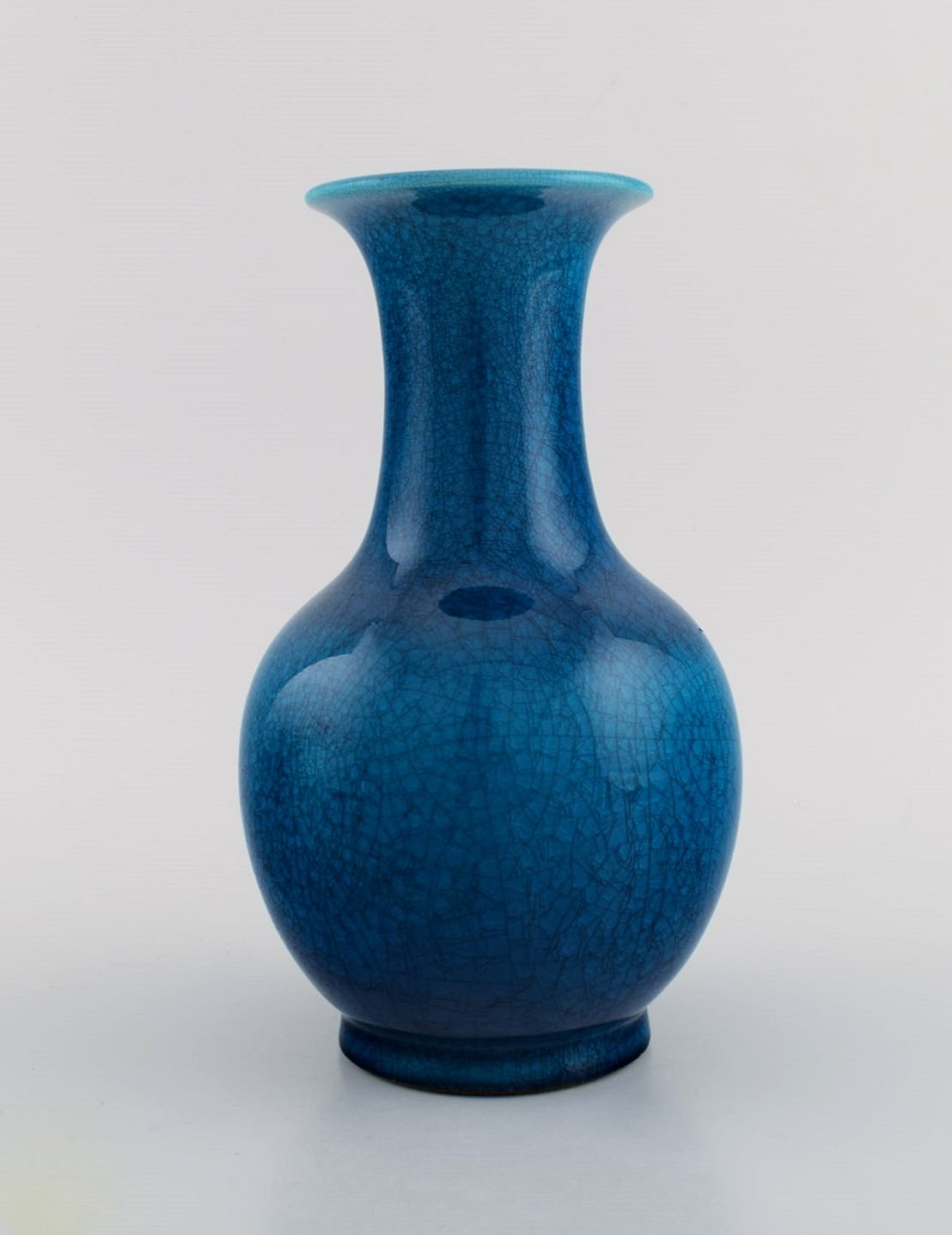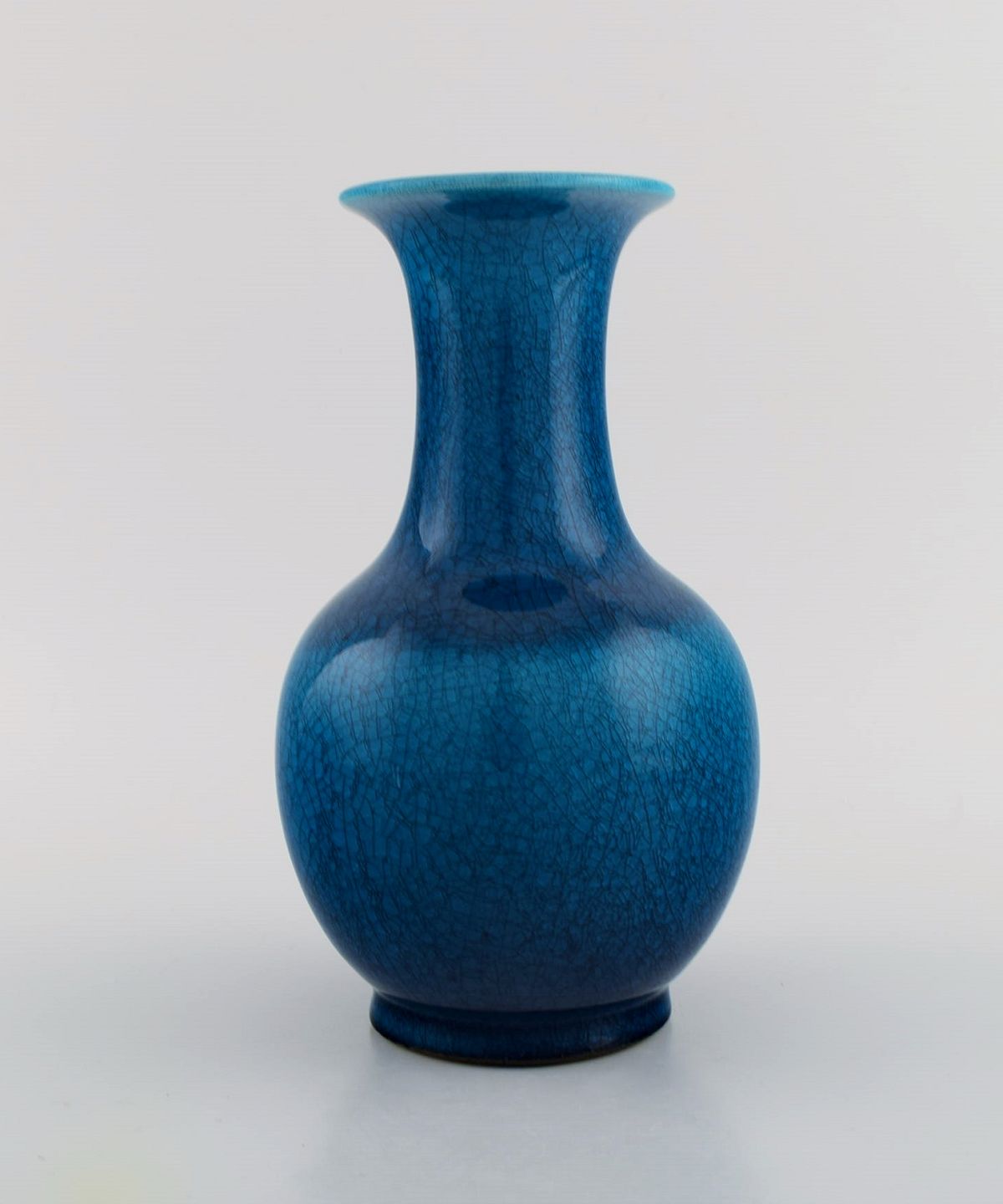 Pol Chambost (1906-1983), Frankrig. To art deco vaser i glaseret keramik. Smuk krakkeleret glasur i lyse blå nuancer. 1940'erne. Måler: 21 x 12,5 cm. I flot stand. Signeret.