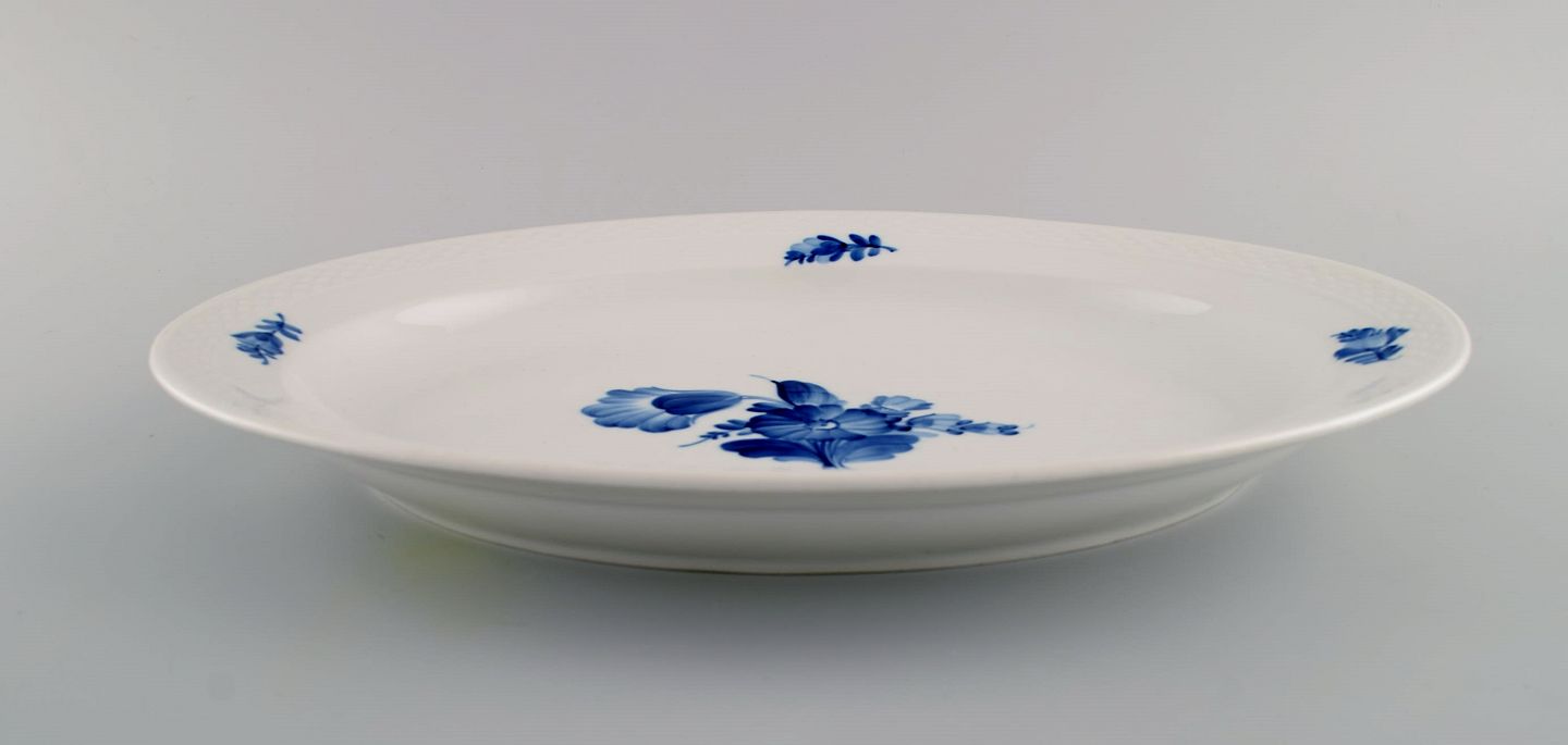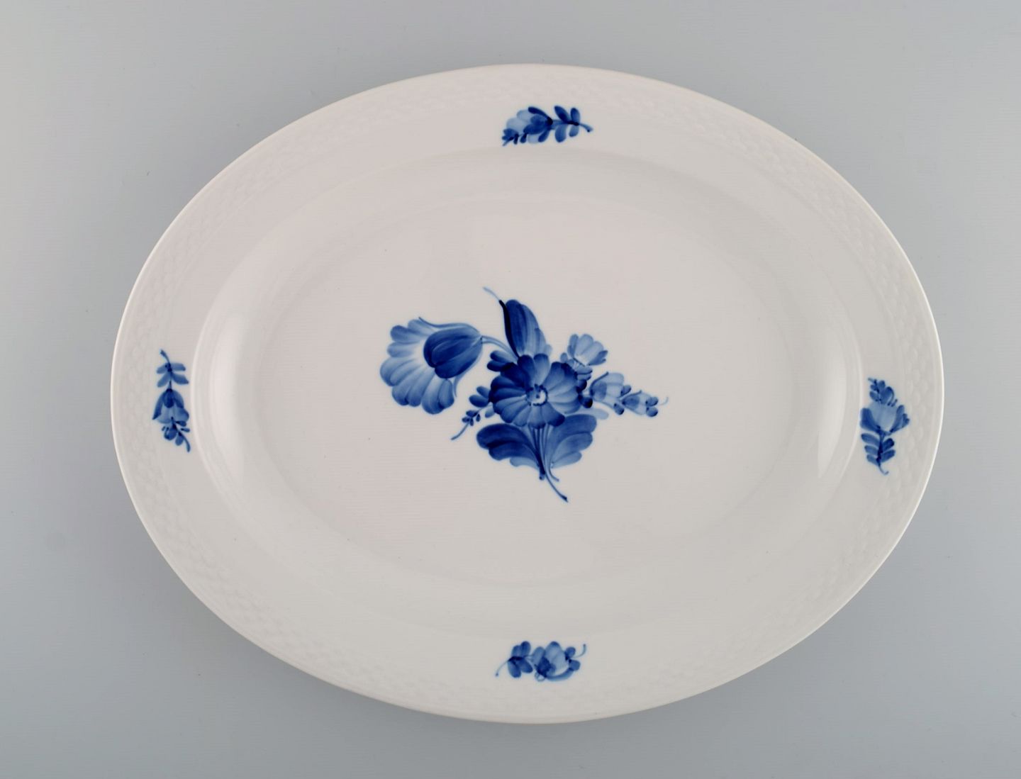 Royal Copenhagen Blå Blomst Flettet ovalt serveringsfad. Modelnummer 10/8017. Dateret 1964. Måler: 37 x 29 x 4,4 cm. I flot stand. Stemplet. 1. Sortering.