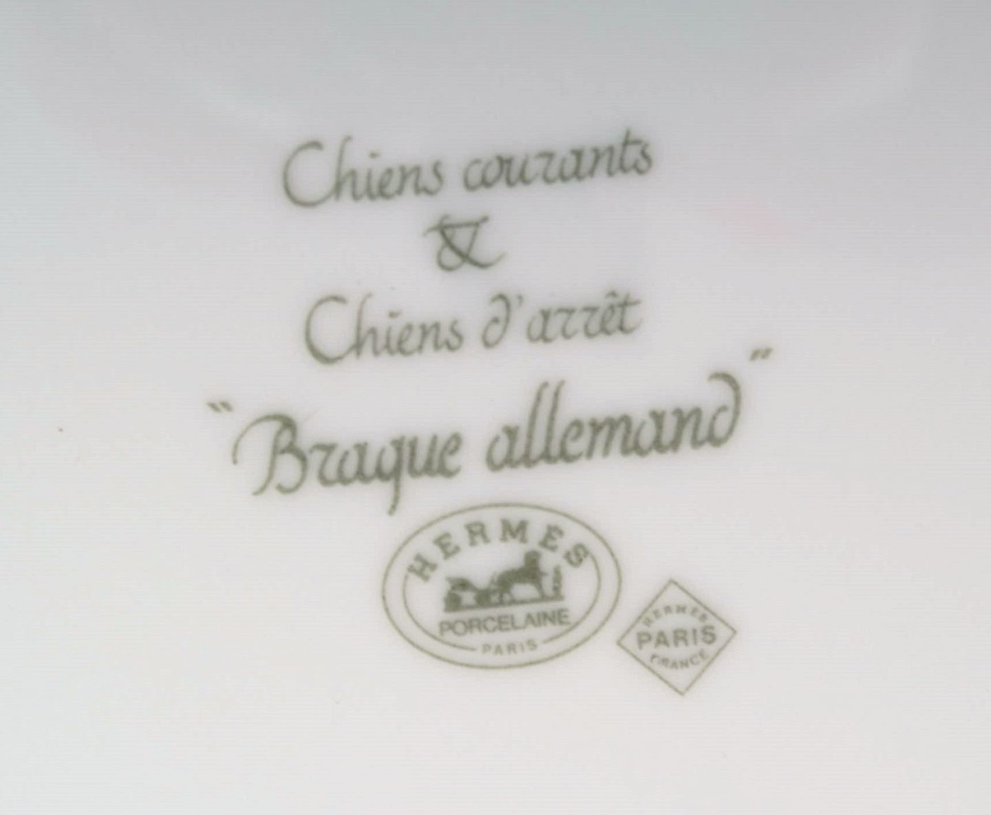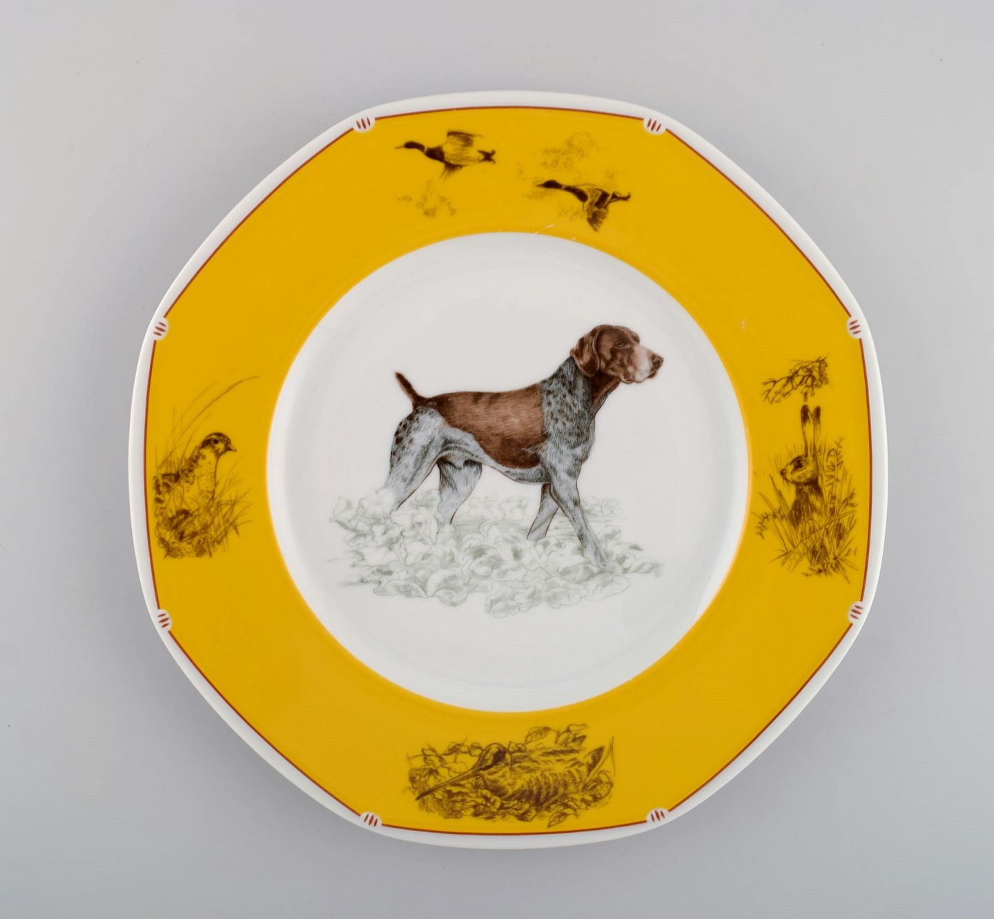 Hermes Chiens Courants & Chiens D'Arret porcelain plate. German shorthaired pointer. Late 20th century. Diameter: 26 cm. In excellent condition. Stamped.