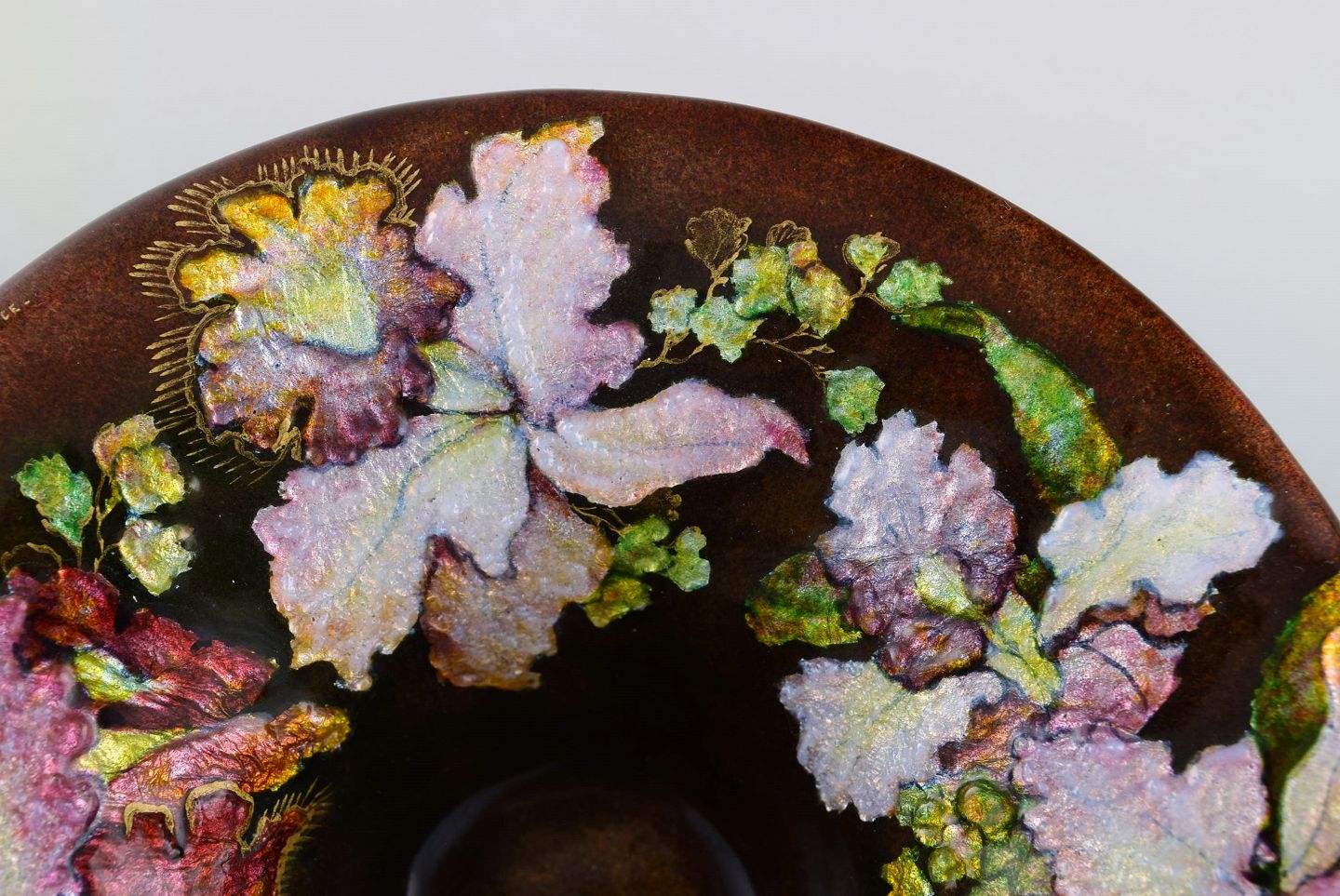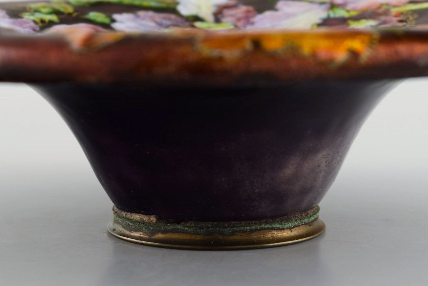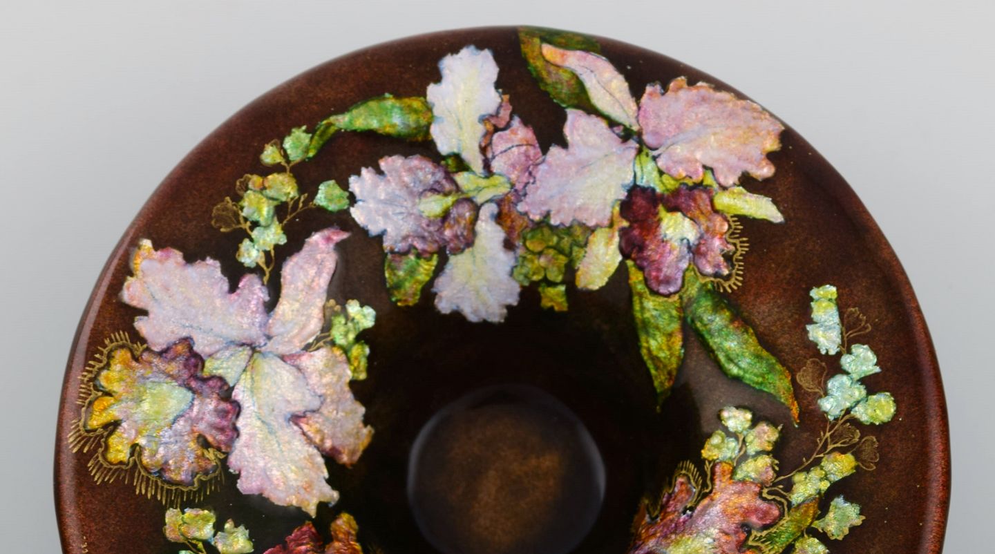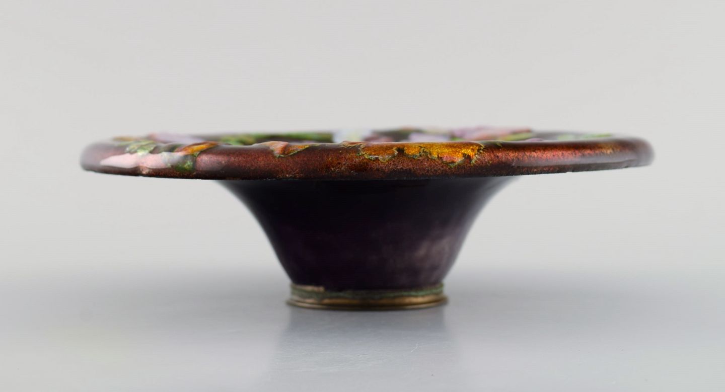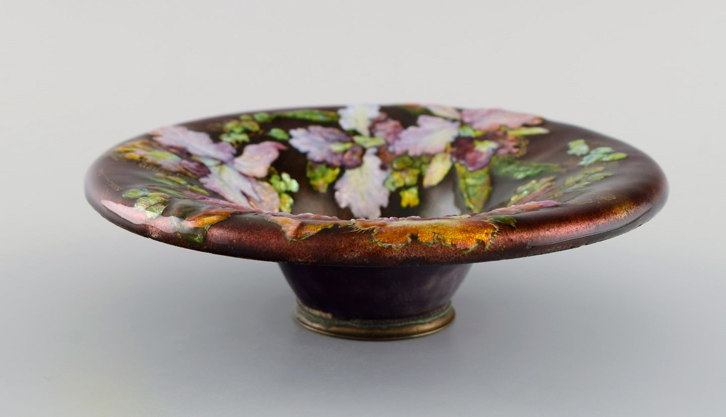 Camille Fauré for Limoges, Frankrig. Art nouveau bronzeskål i emaljearbejde med blomster. Ca. 1910. Måler: 17,7 x 5 cm. I flot stand. Signeret.