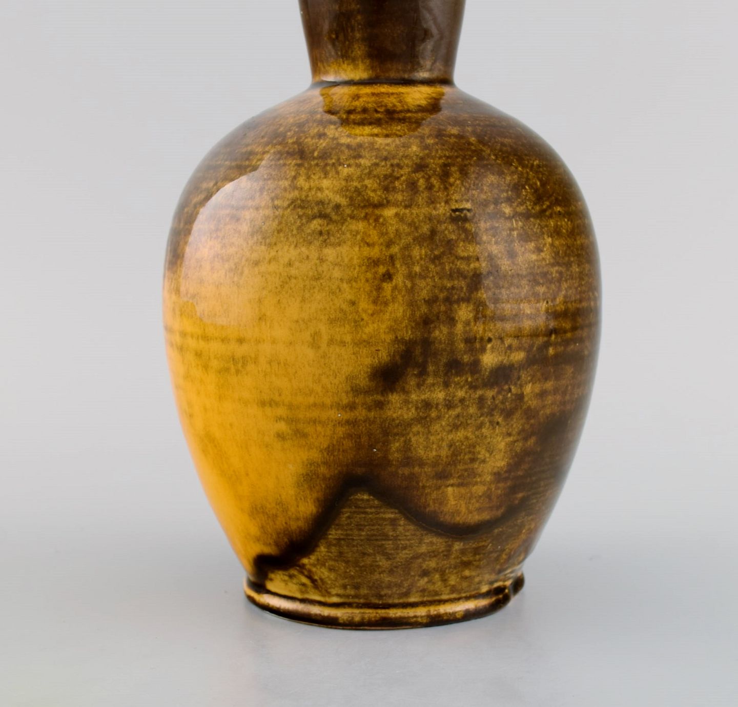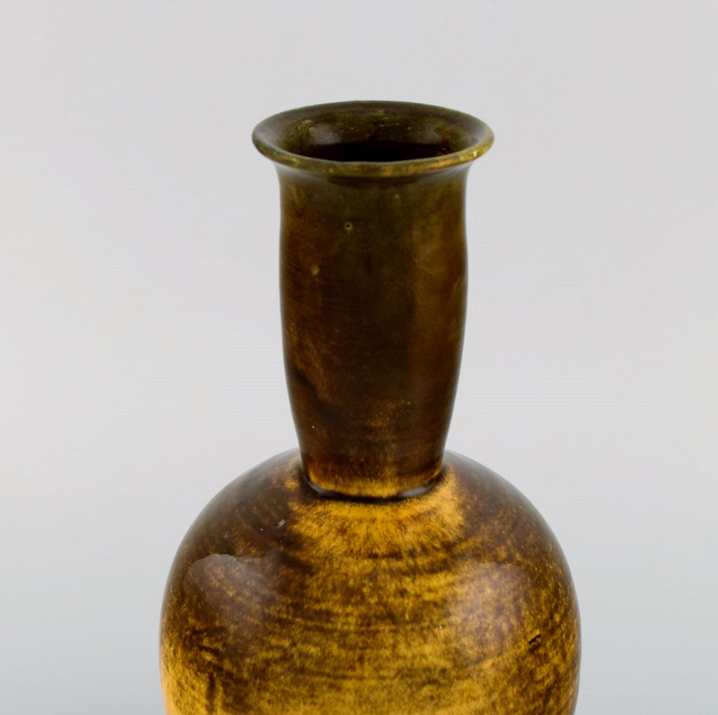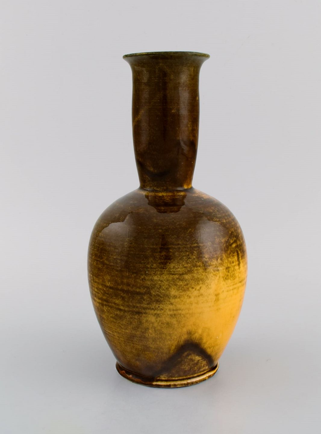 Svend Hammershøi for Kähler, HAK. Narrow neck vase in glazed stoneware. Beautiful yellow uranium glaze. 1930s / 40s. Measures: 23 x 12 cm. Signed. In excellent condition.