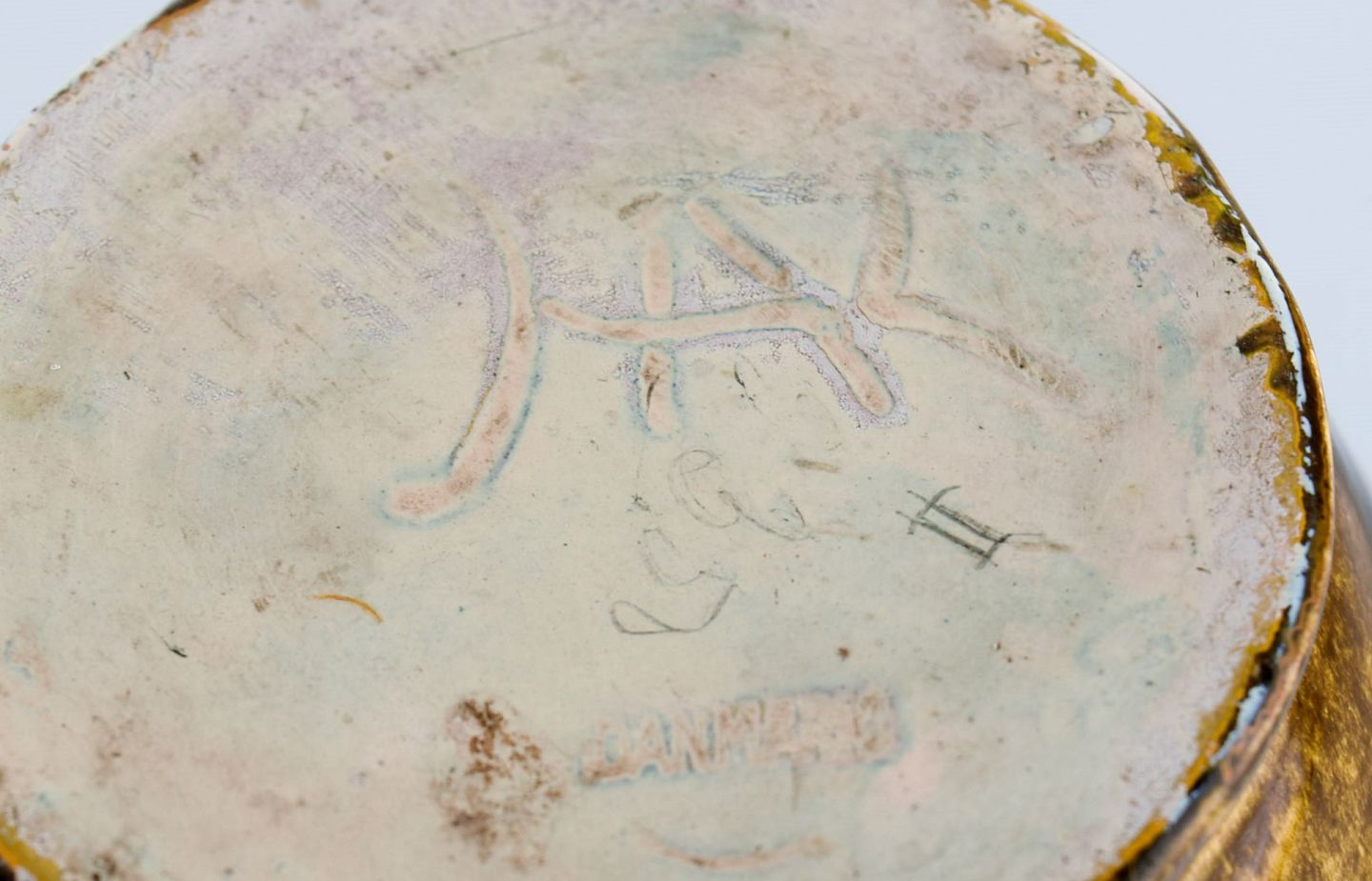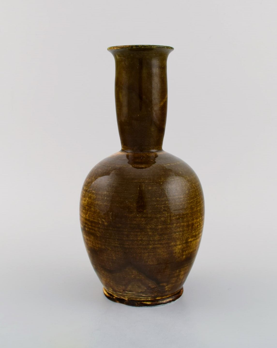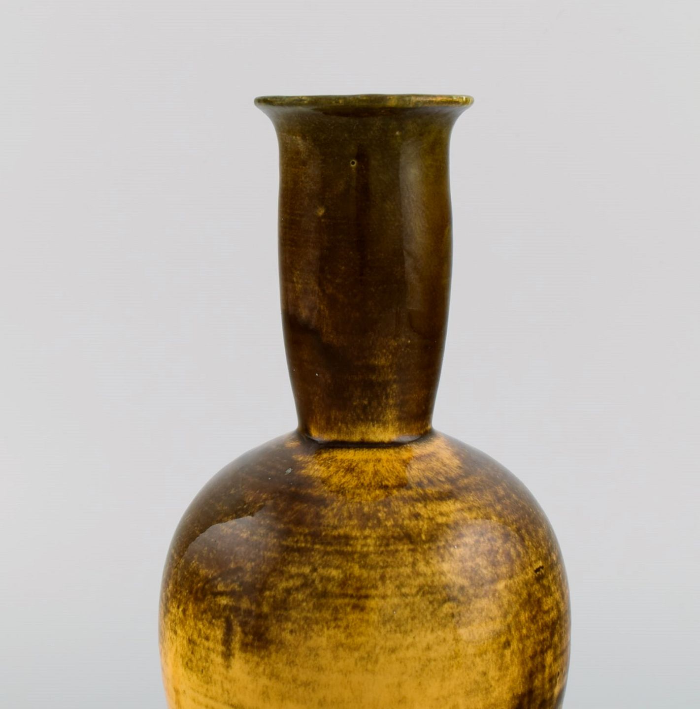 Svend Hammershøi for Kähler, HAK. Narrow neck vase in glazed stoneware. Beautiful yellow uranium glaze. 1930s / 40s. Measures: 23 x 12 cm. Signed. In excellent condition.
