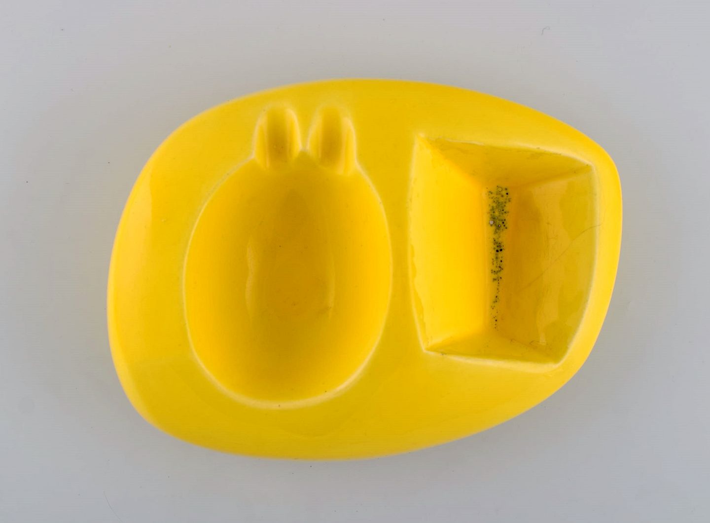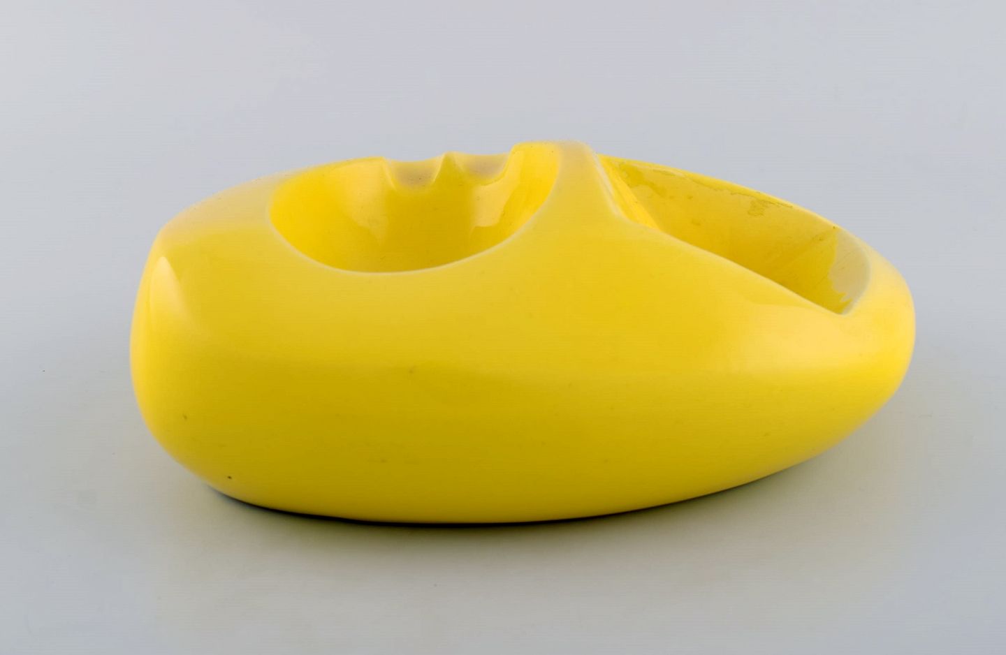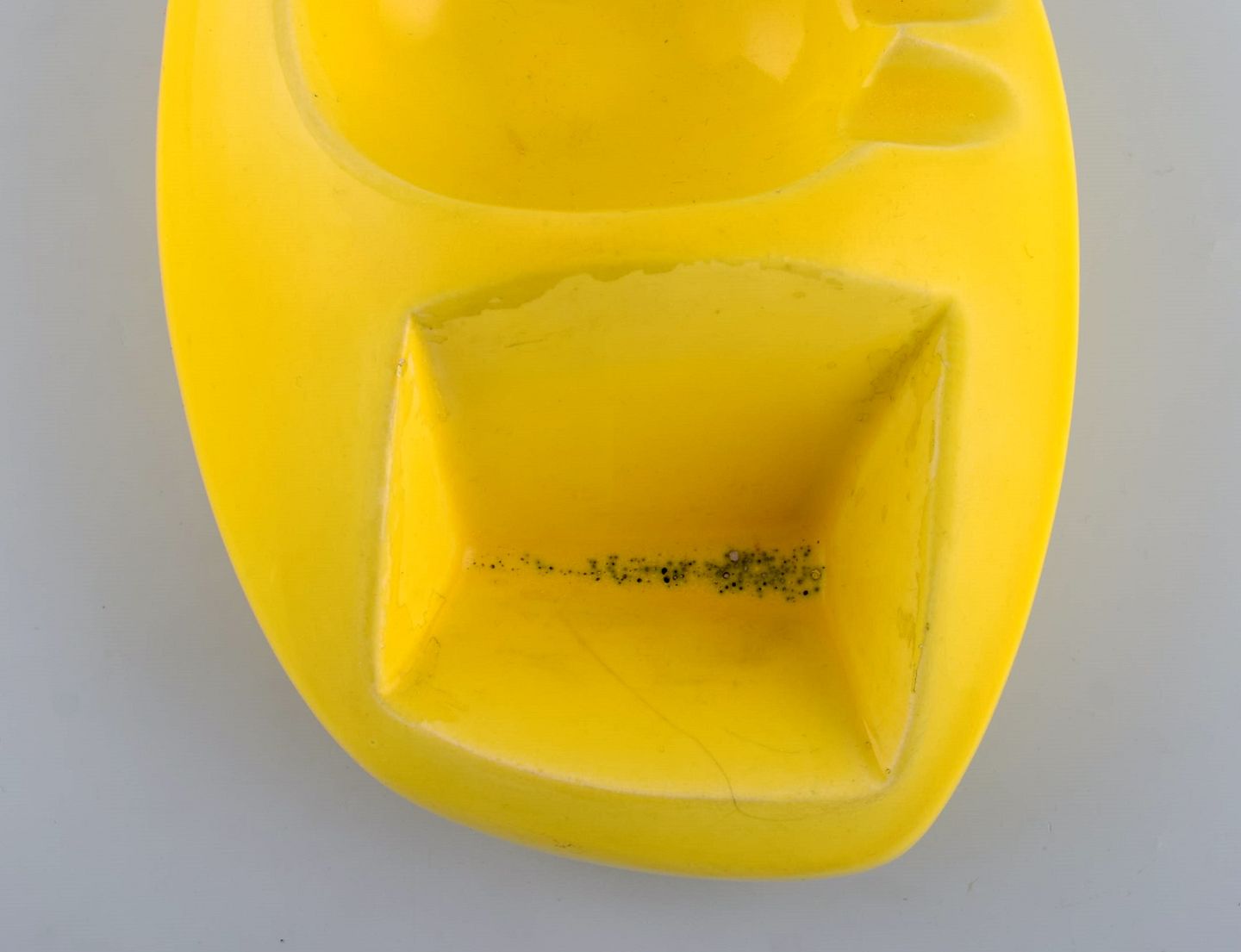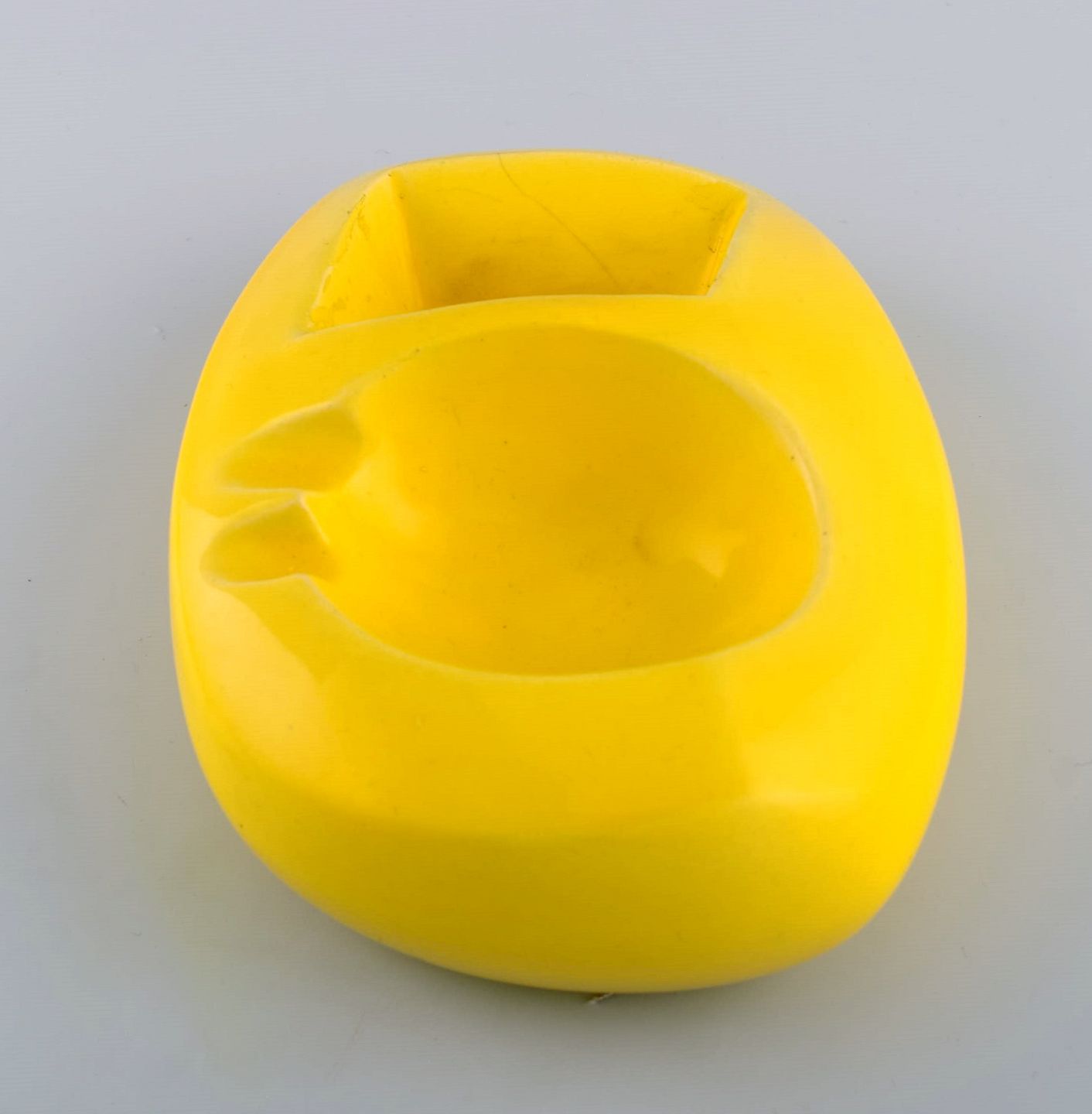 Georges Jouve (1910-1964), France. Sculptural unique bowl in glazed stoneware. Shiny yellow glaze. Mid-20th century.