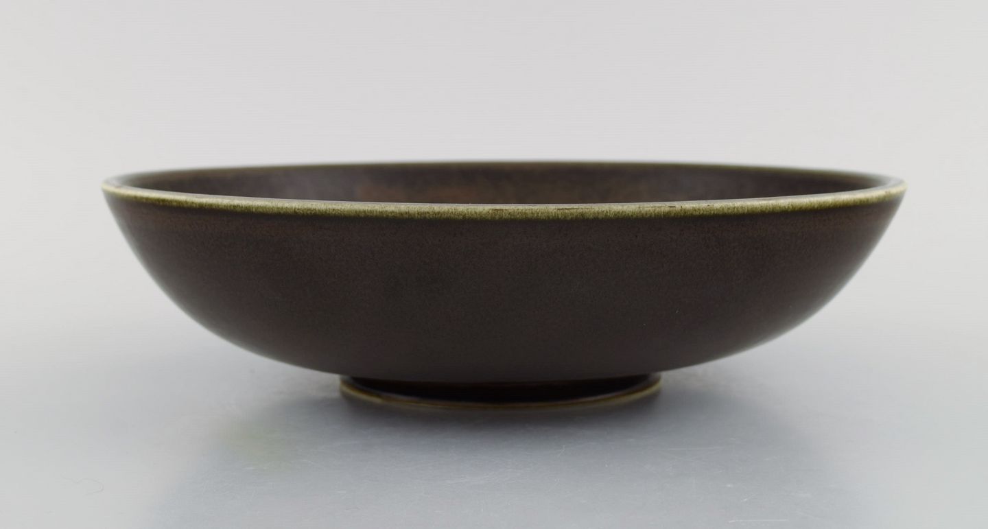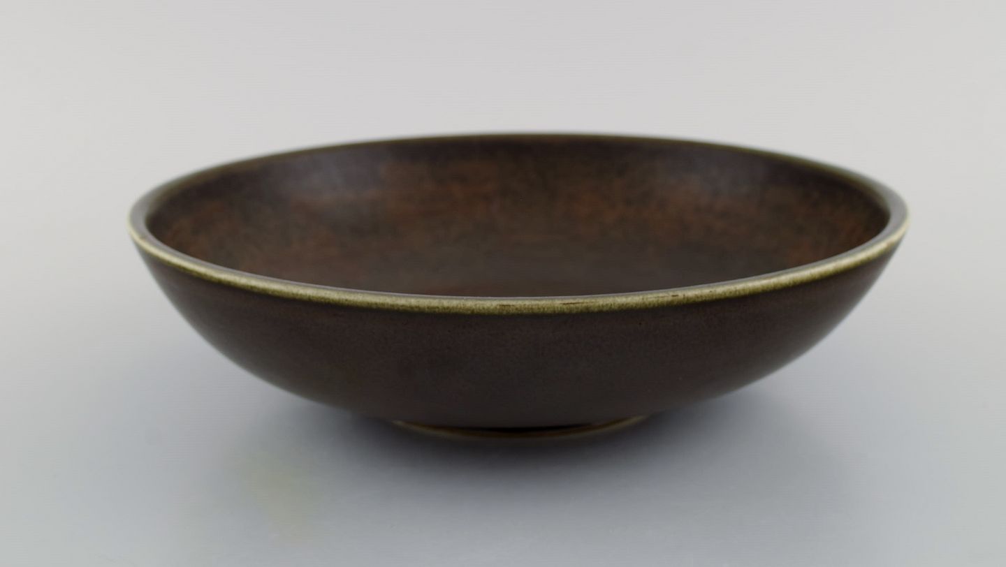 Rund Rörstrand skål i glaseret keramik. Smuk glasur i brune nuancer. Midt 1900-tallet.