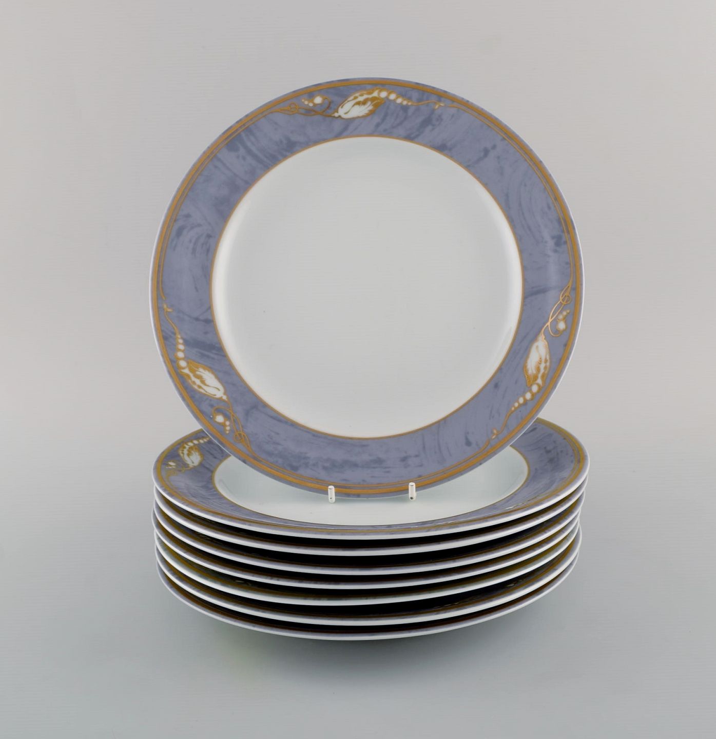 Otte Royal Copenhagen Grå Magnolia middagstallerkener i porcelæn. Sent 1900-tallet.