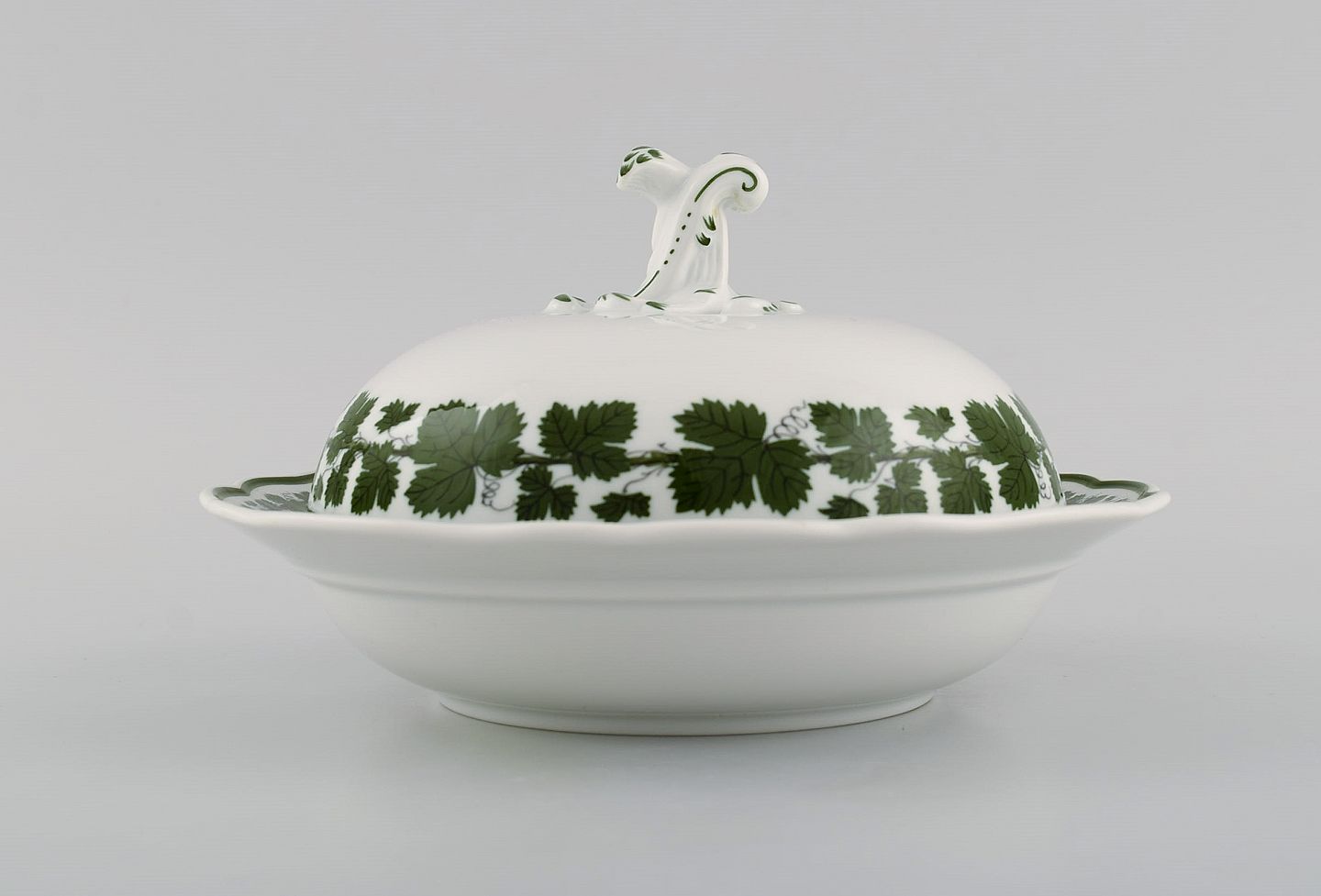Meissen Green Ivy Vine Leaf lågterrin i håndmalet porcelæn. 1900-tallet. Måler: 18,5 x 10,5 cm. I flot stand. Stemplet. 1. Sortering.