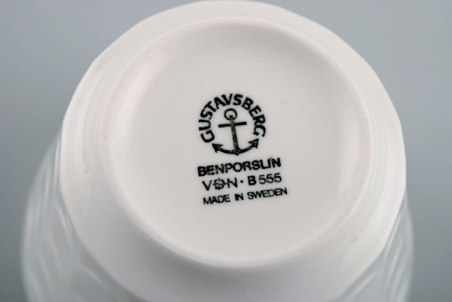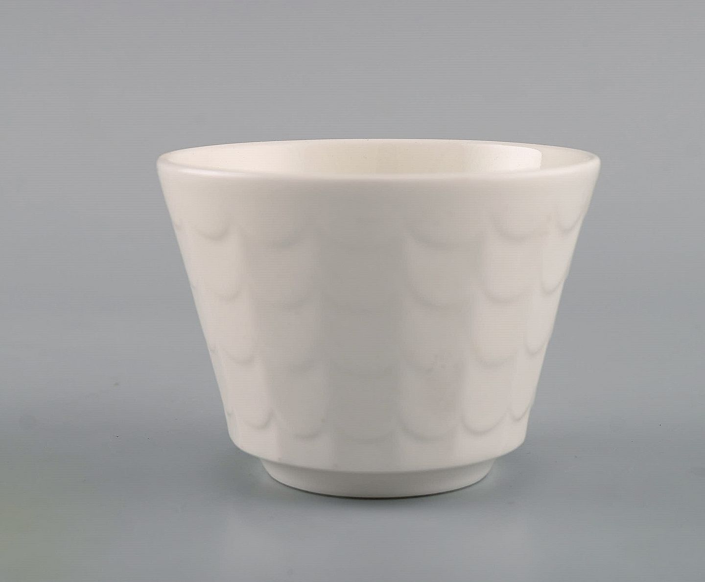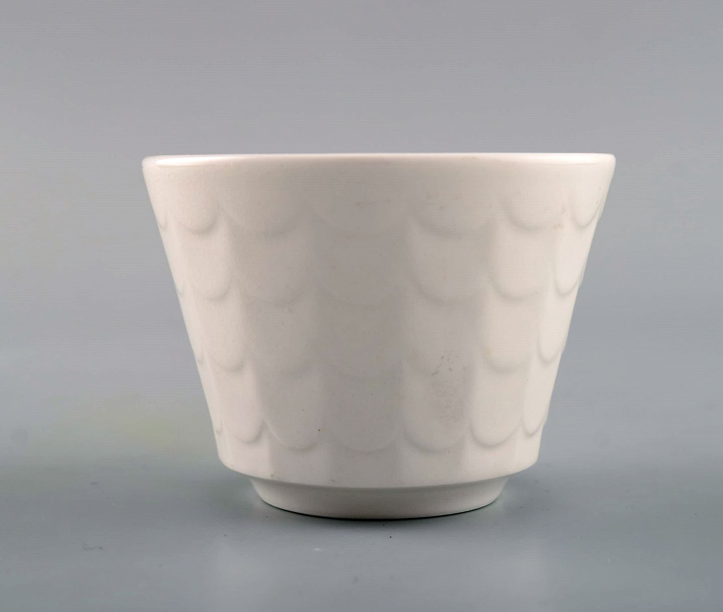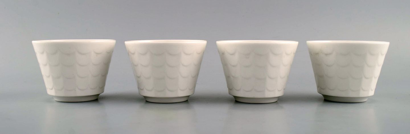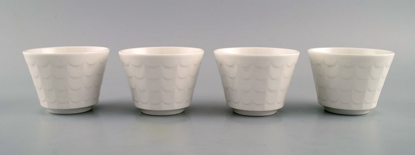 Wilhelm Kåge for Gustavsberg. Fire urtepotteskjulere i porcelæn. Svensk design, 1960'erne. Måler: 8,3 x 6,3 cm. I flot stand. Stemplet.