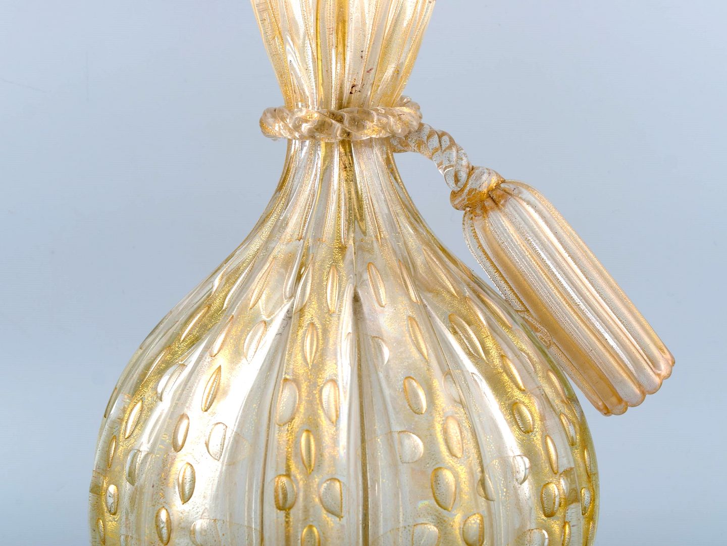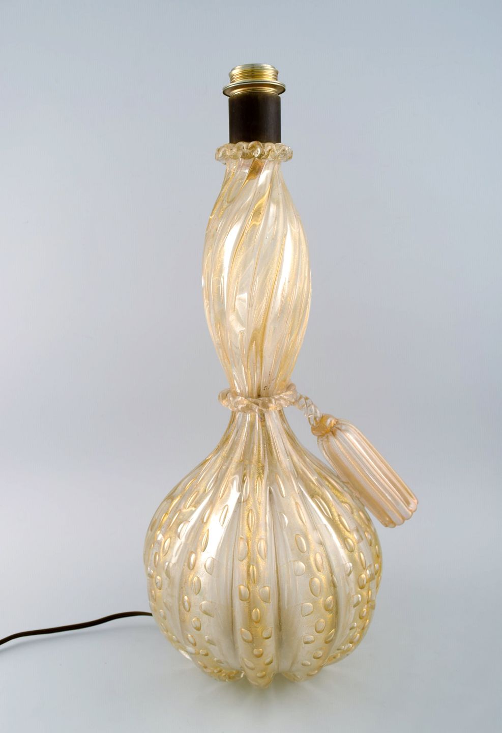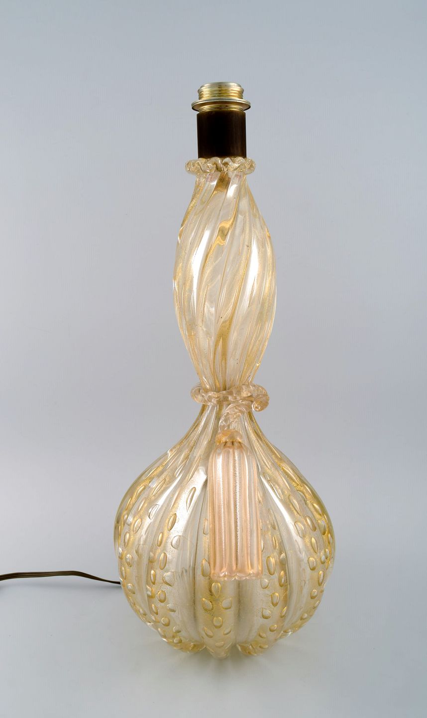 Barovier and Toso, Venice. Giant table lamp in mouth-blown art glass with inlaid air bubbles and gold decoration. Mid-20th century. Measures: 48 x 27 cm (ex socket) In excellent condition.