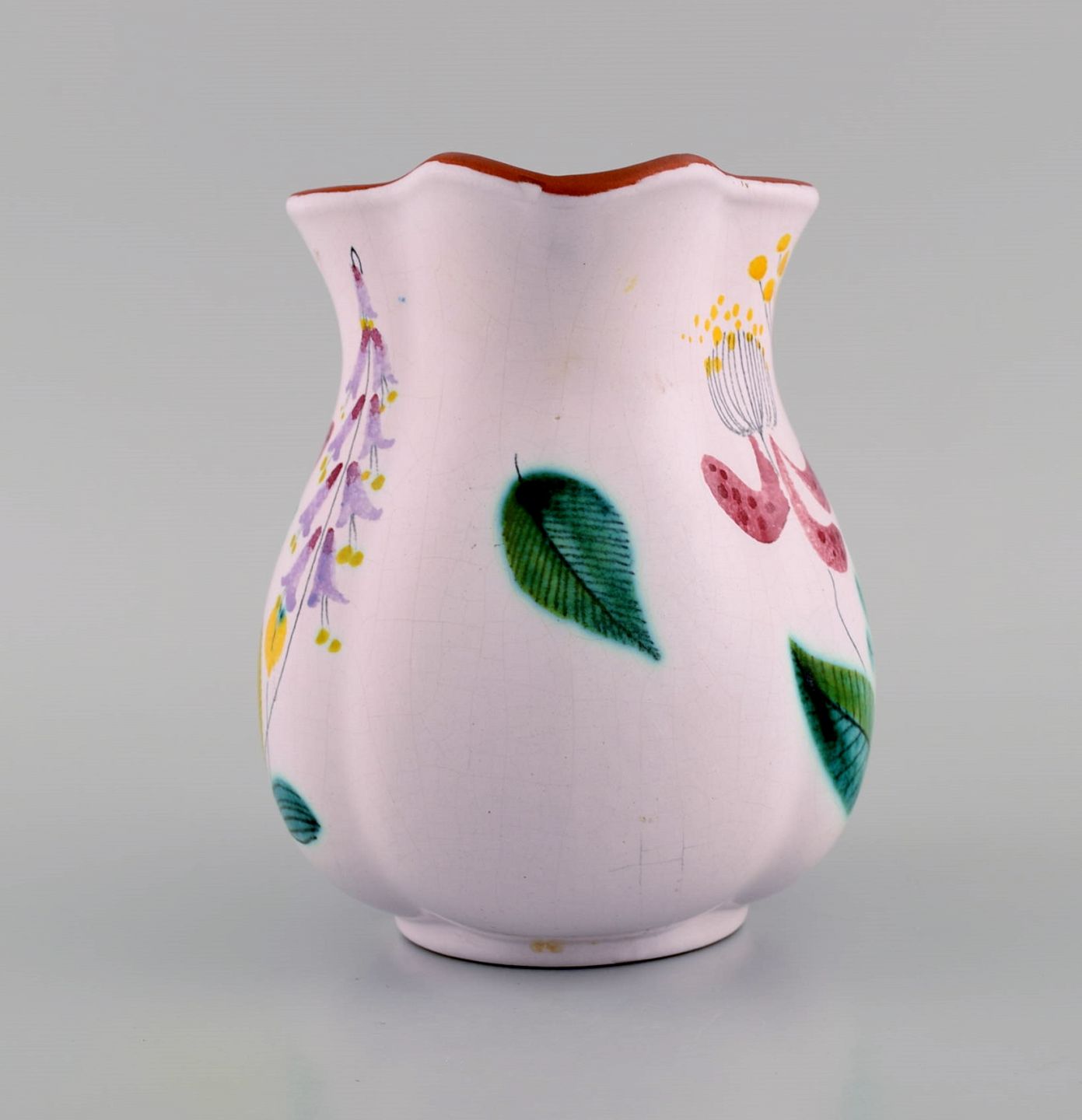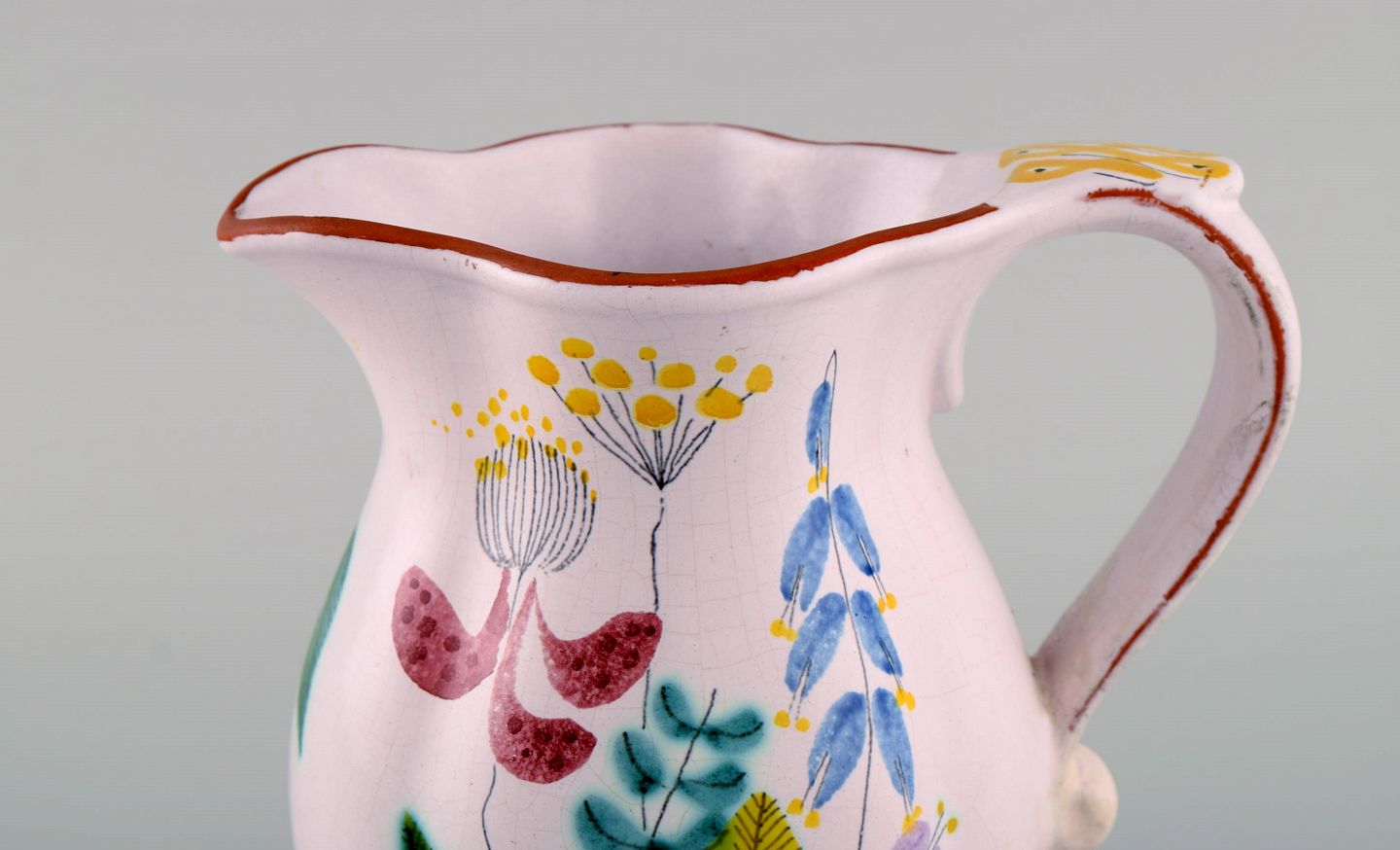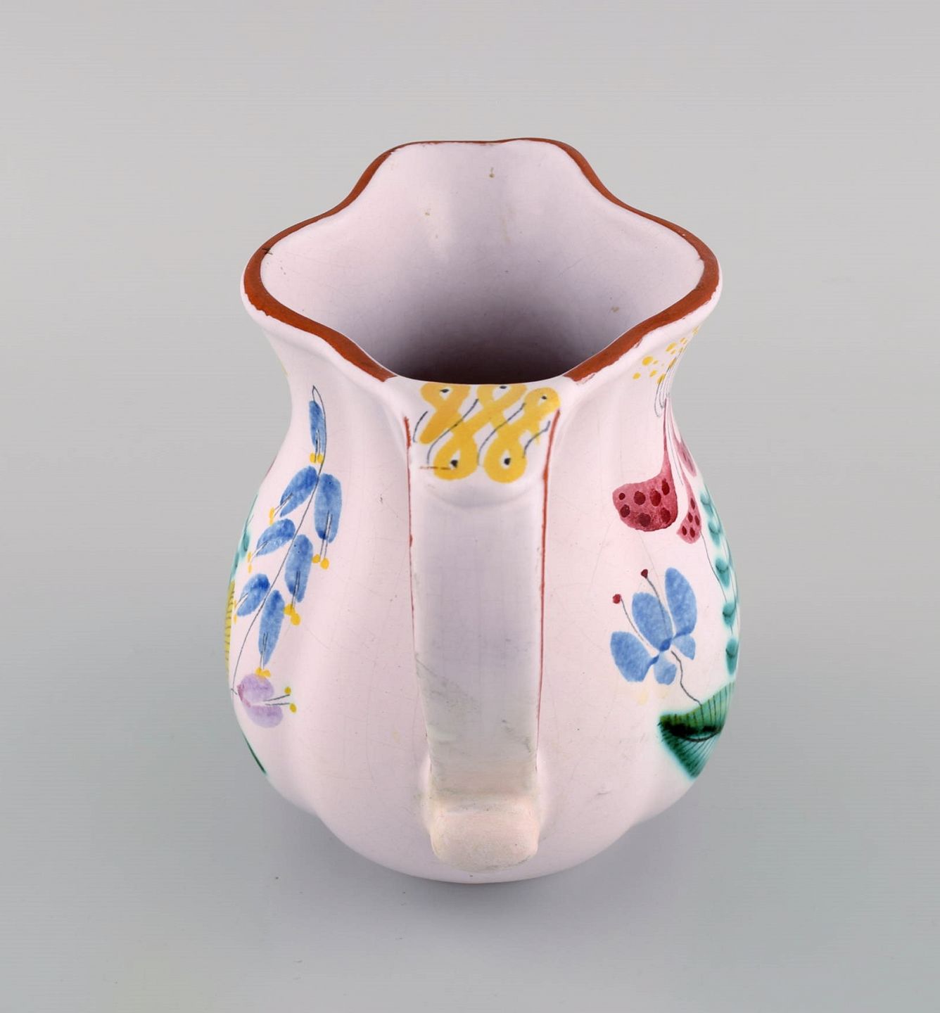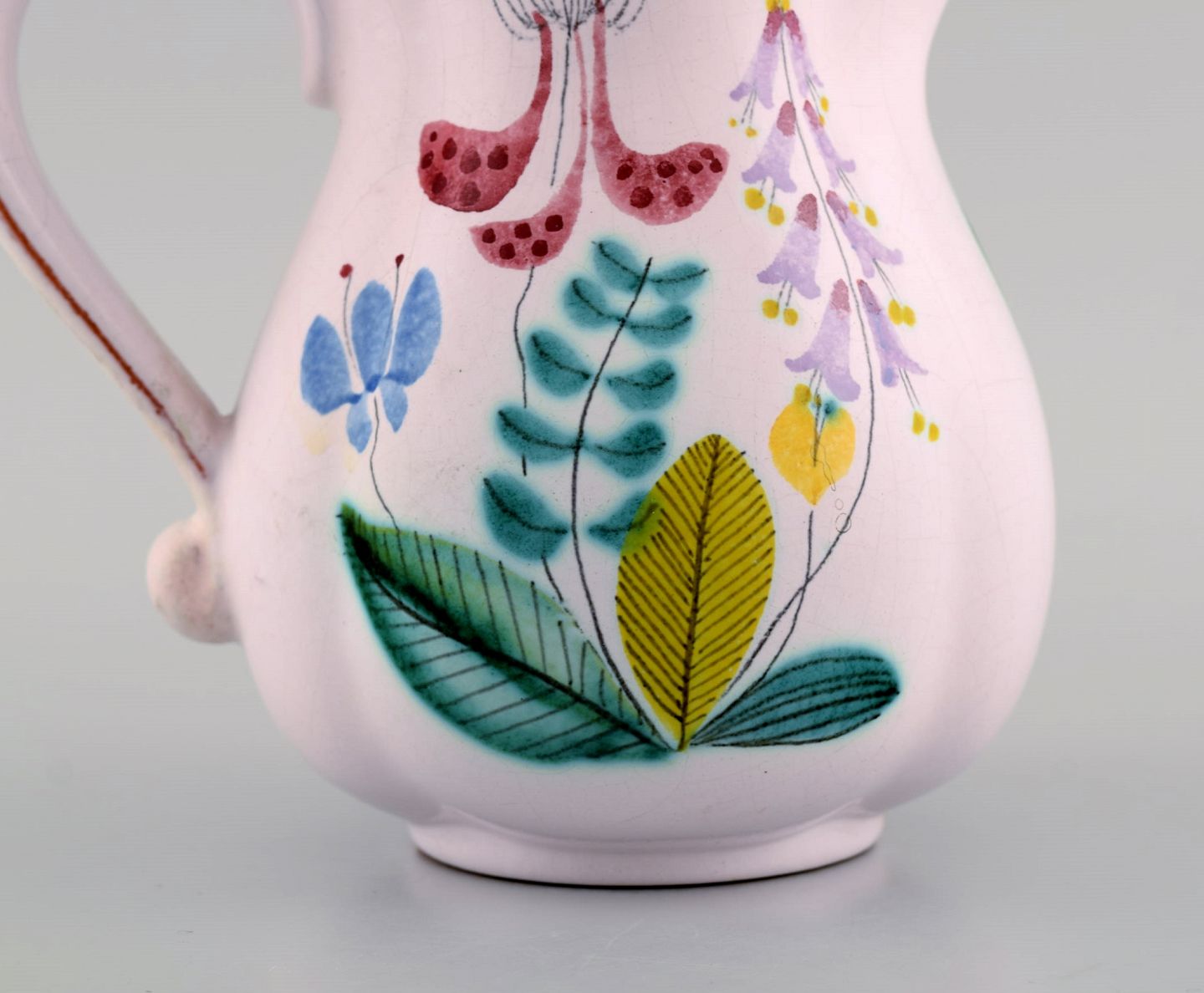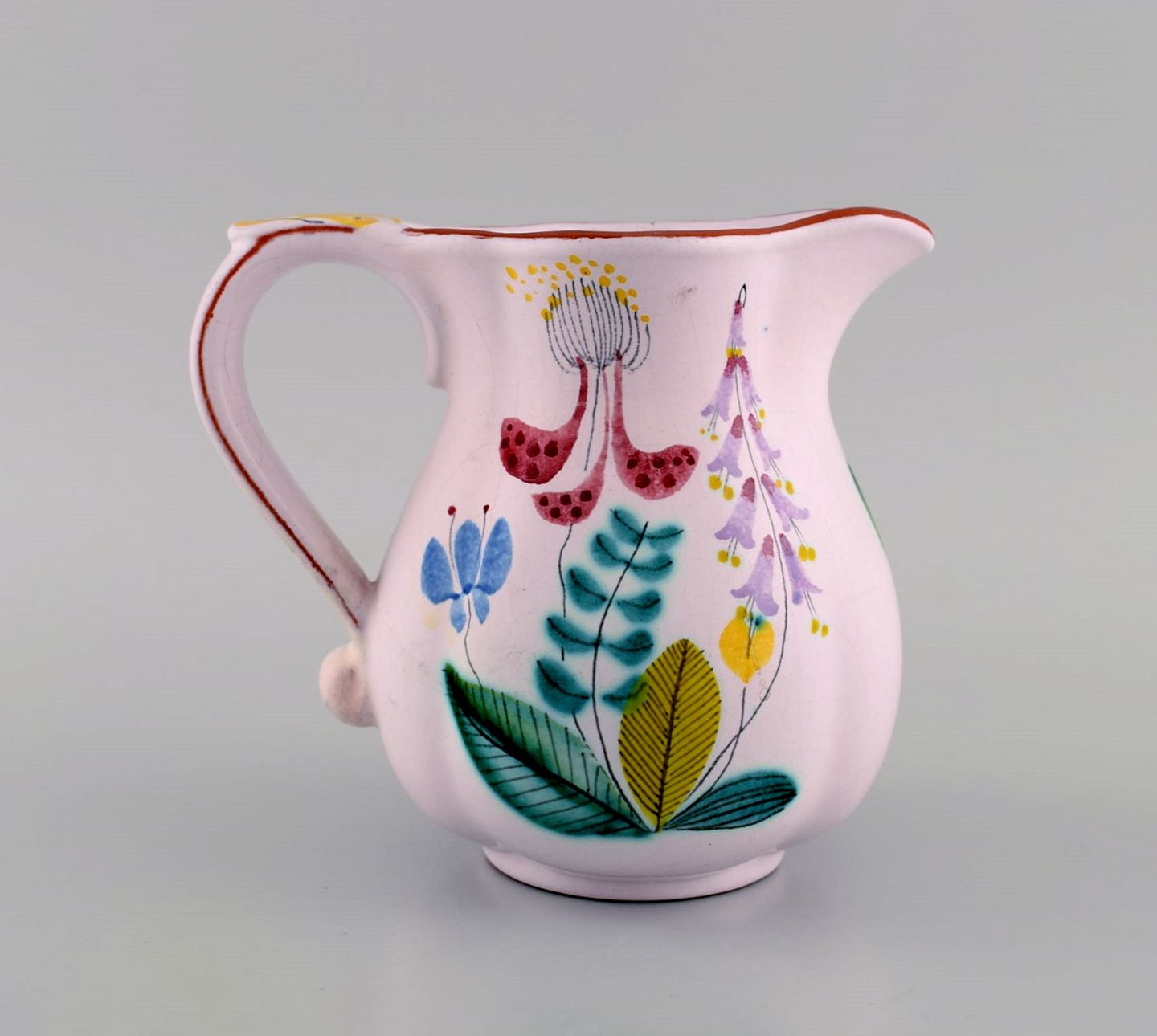 Stig Lindberg for Gustavsberg Studio Hand. Kande i glaseret fajance med håndmalede blomster. 1940'erne. Måler: 16,5 x 15 cm. I flot stand. Signeret.