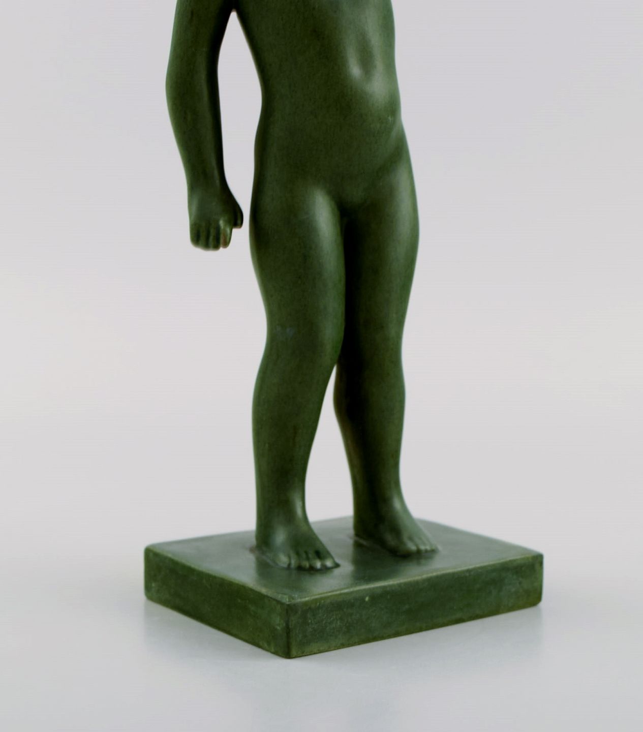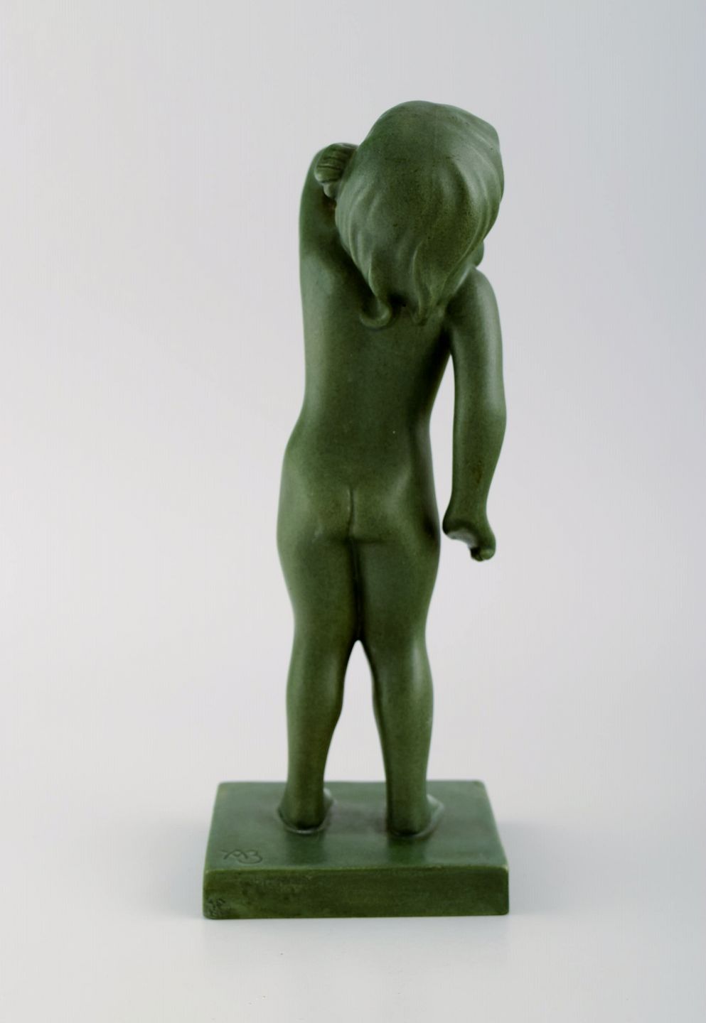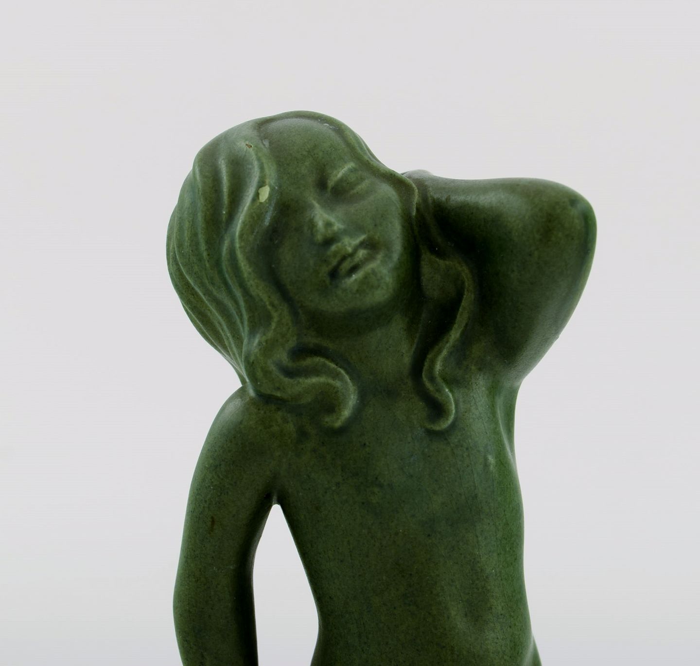Arne Bang for Ipsen's, Denmark. Rare figure in jade green glazed ceramics. Naked girl. Model 916. 1920s / 30s. Measures: 21.5 x 8.5 cm. In excellent condition. Stamped.