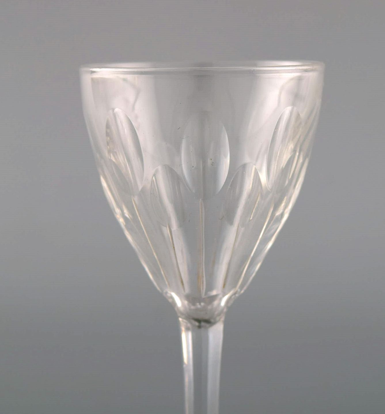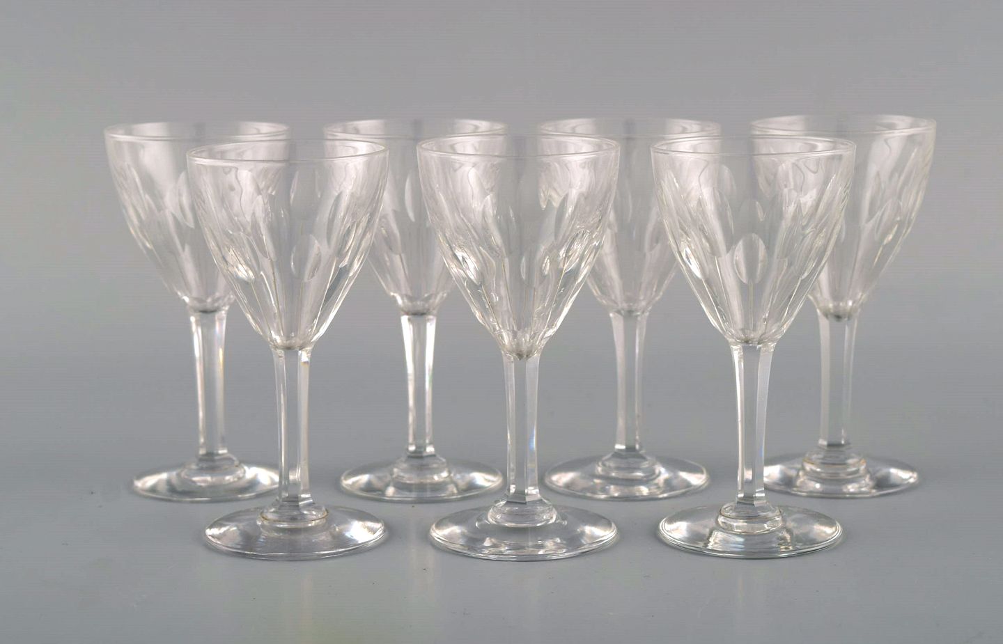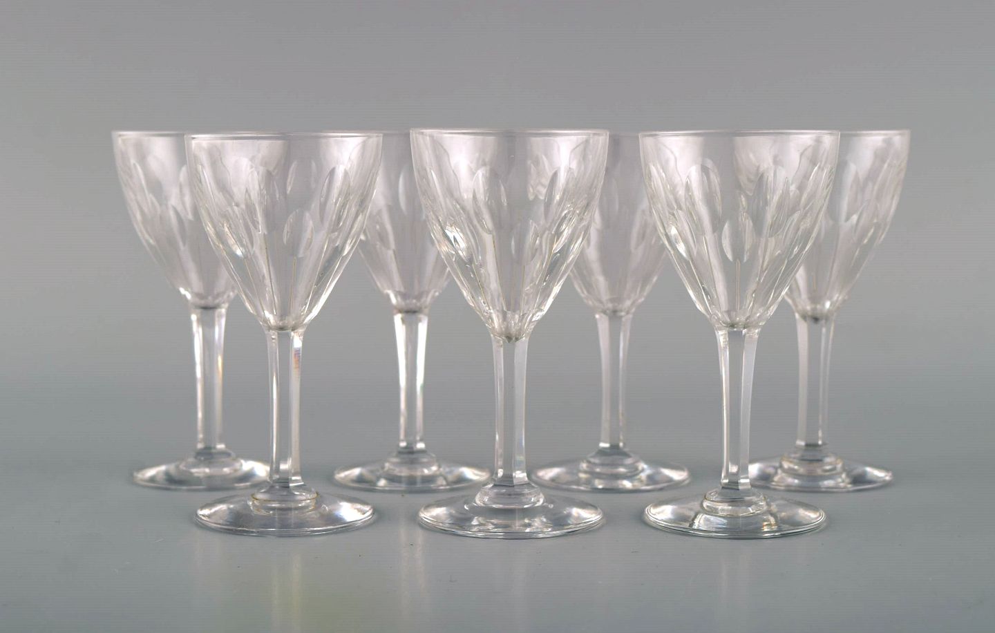 Baccarat, Frankrig. Syv glas i klart mundblæst krystalglas. Midt 1900-tallet.