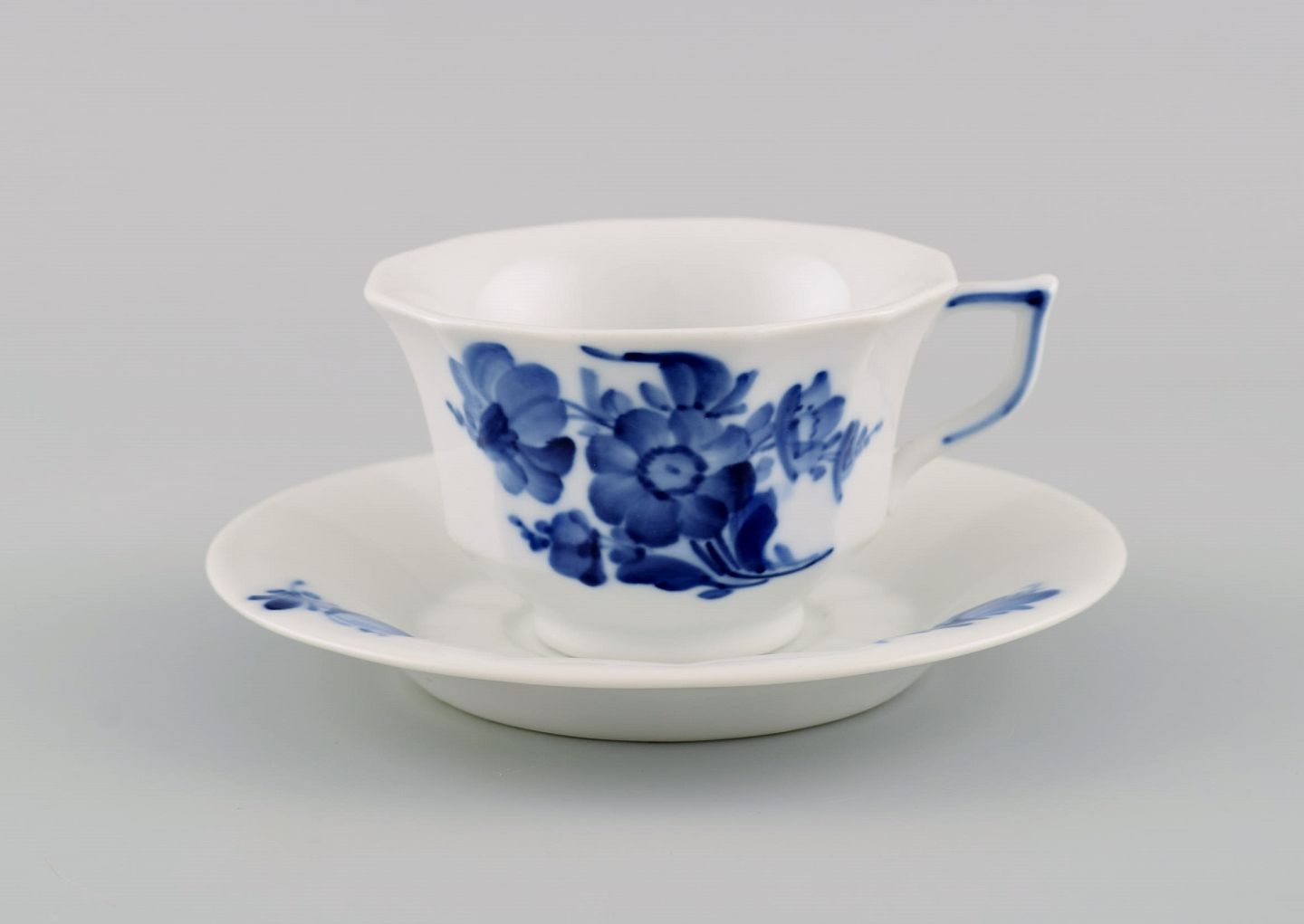 Royal Copenhagen Blå Blomst Kantet. 10 kaffekopper med underkopper og 10 tallerkener. Modelnummer 10/8608 og 10/8553.
