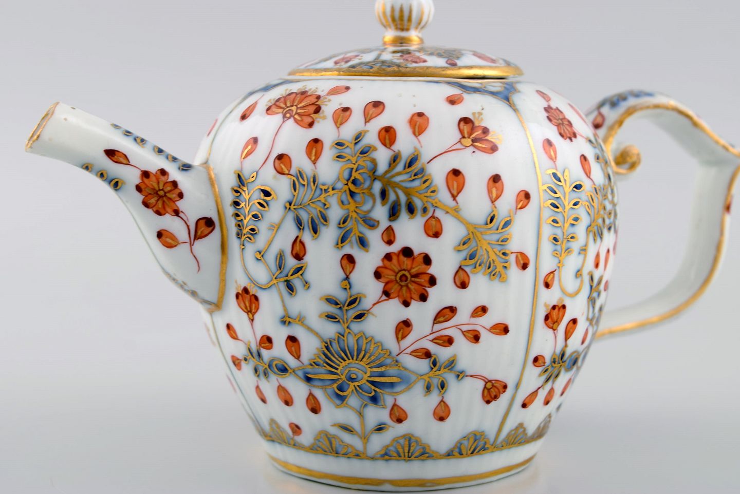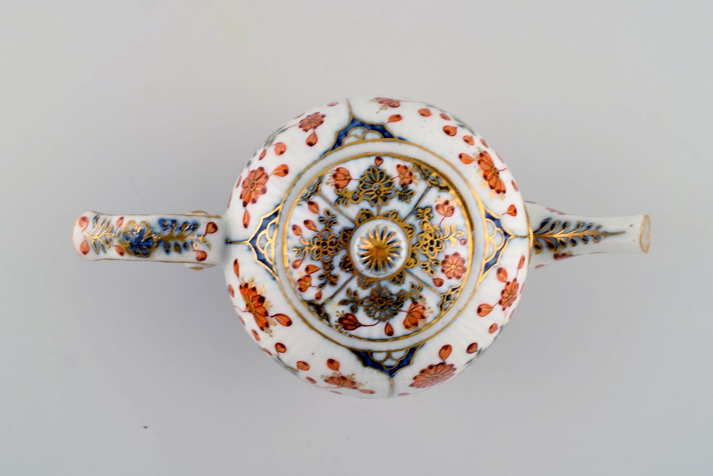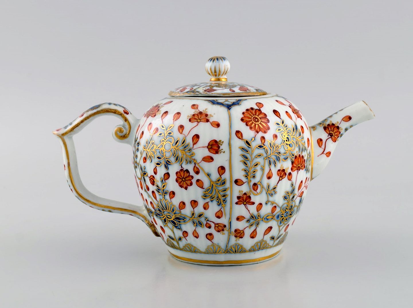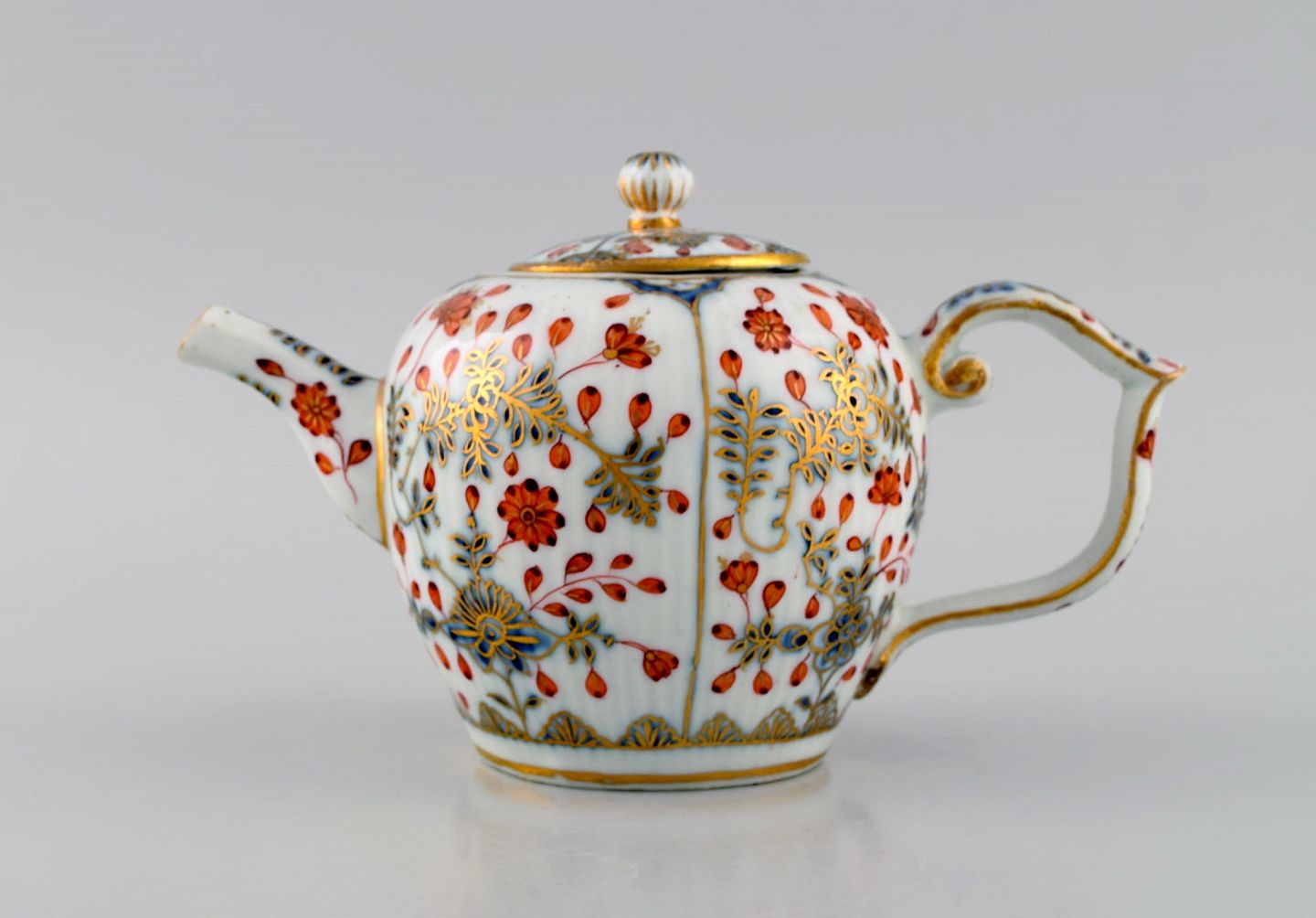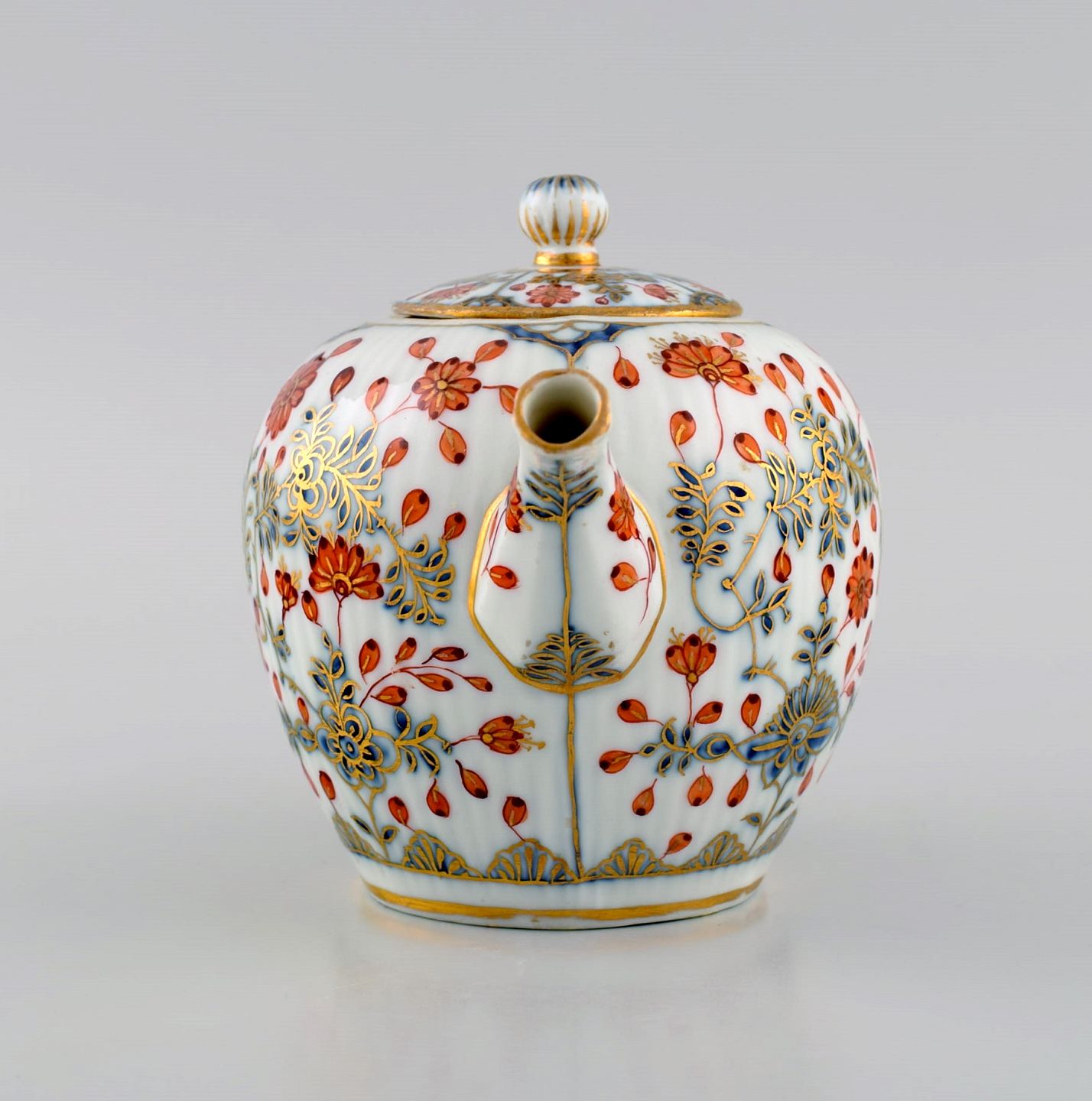 Antique Meissen teapot in hand-painted porcelain with red flowers and gold decoration. 19th century. Museum quality. Measures: 19.5 x 11.5 cm. In excellent condition. Stamped. 1st factory quality.