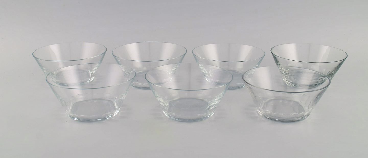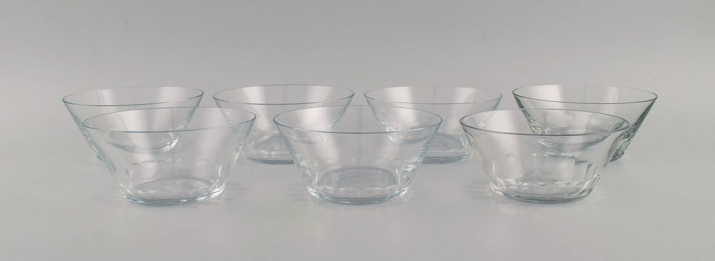 Baccarat, Frankrig. Syv skylleskåle i klart mundblæst krystalglas. Midt 1900-tallet. Måler: 12,5 x 5,3 cm. I flot stand. Stemplet.