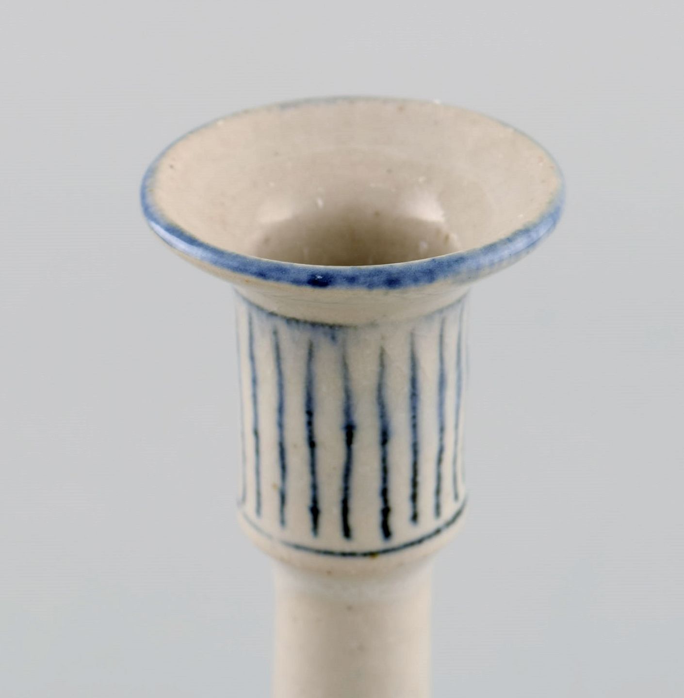 Bent Wiborg ( f. 1941), dansk keramiker. Et par unika lysestager i glaseret stentøj. Sent 1900-tallet. Måler: 17,3 x 8 cm. I flot stand. Signeret.