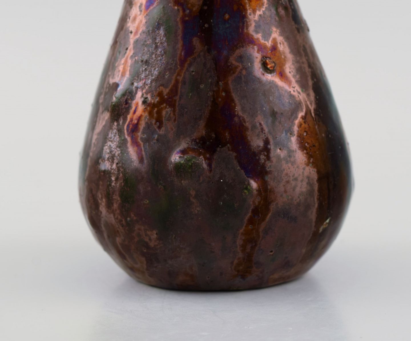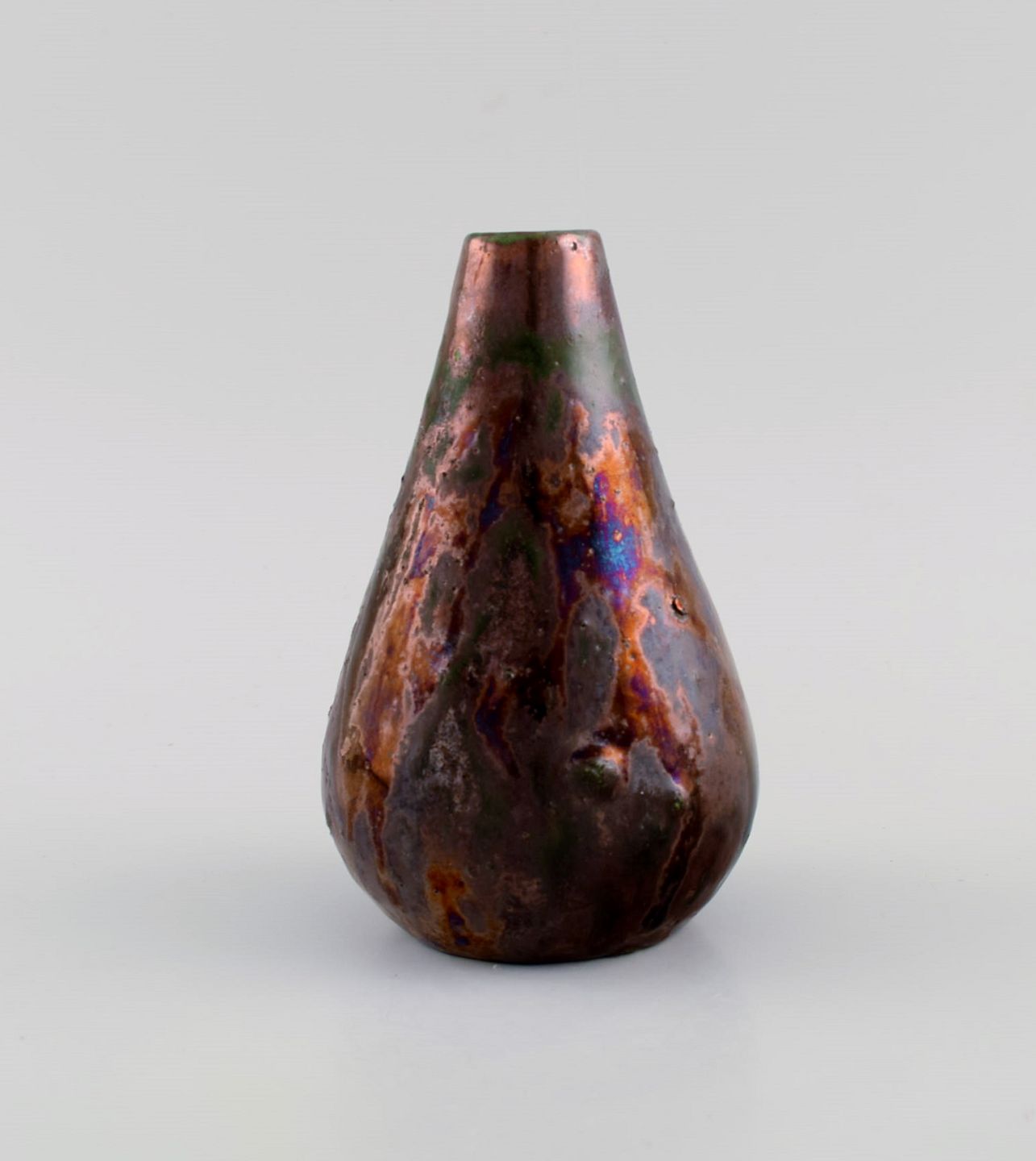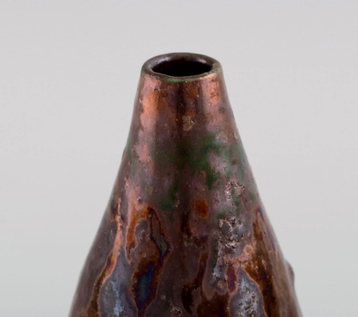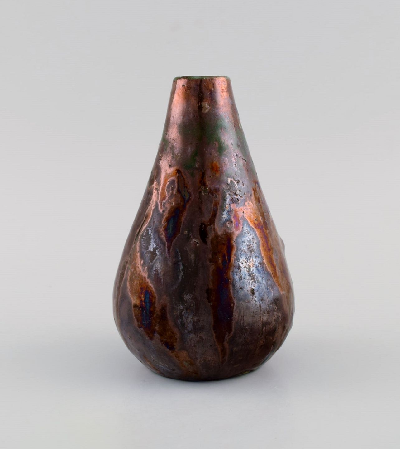 Søren Kongstrand (1872-1951), Denmark. Vase in glazed stoneware. Beautiful metallic luster glaze in shades of red. 1920s. Measures: 14 x 9 cm. In excellent condition. Signed in monogram.
