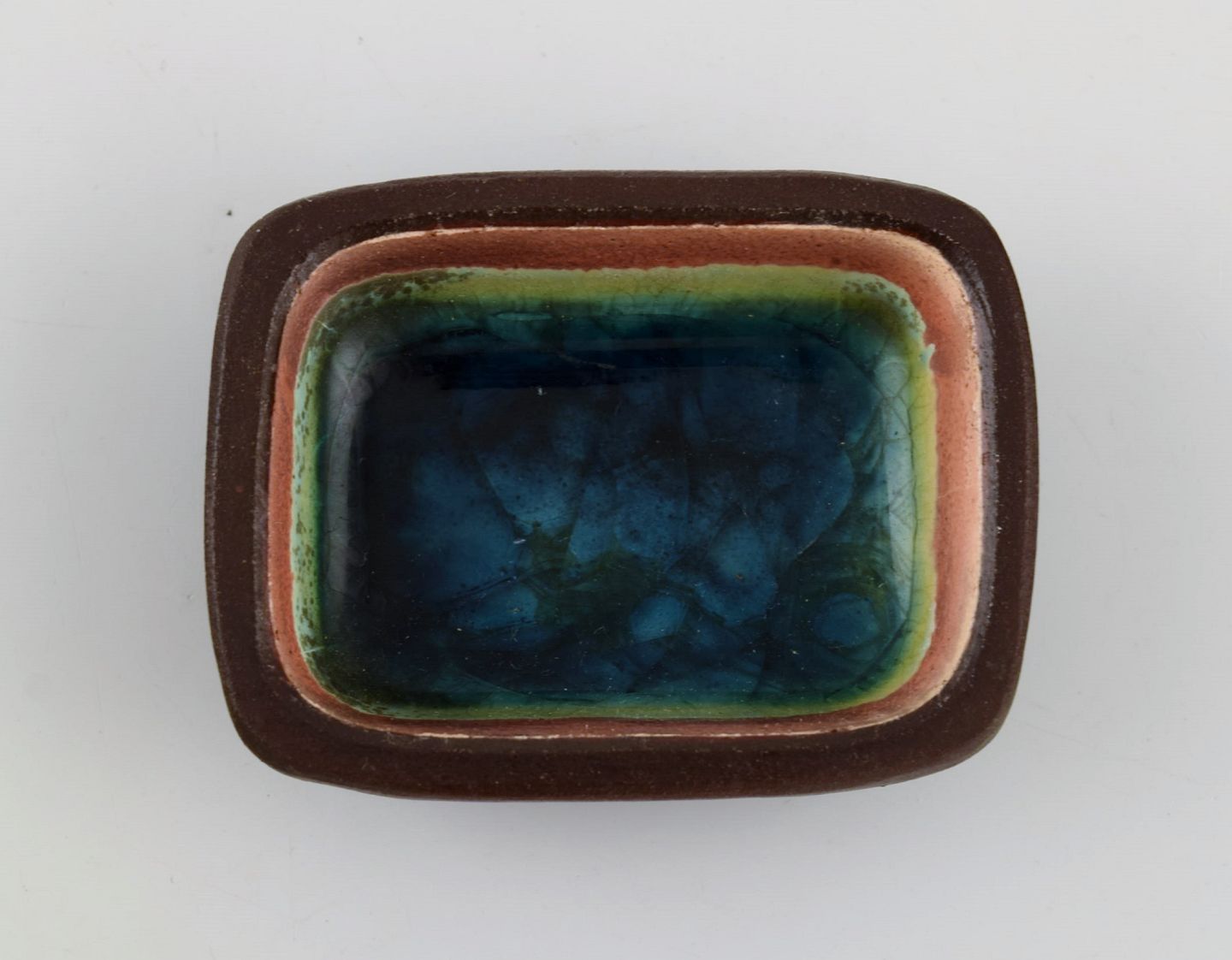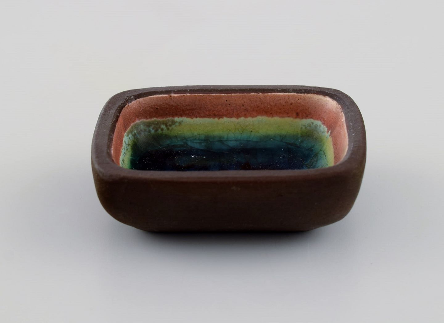 Knut Paul. Seven small bowls in glazed stoneware. Beautiful polychrome glaze. Mid-20th century.