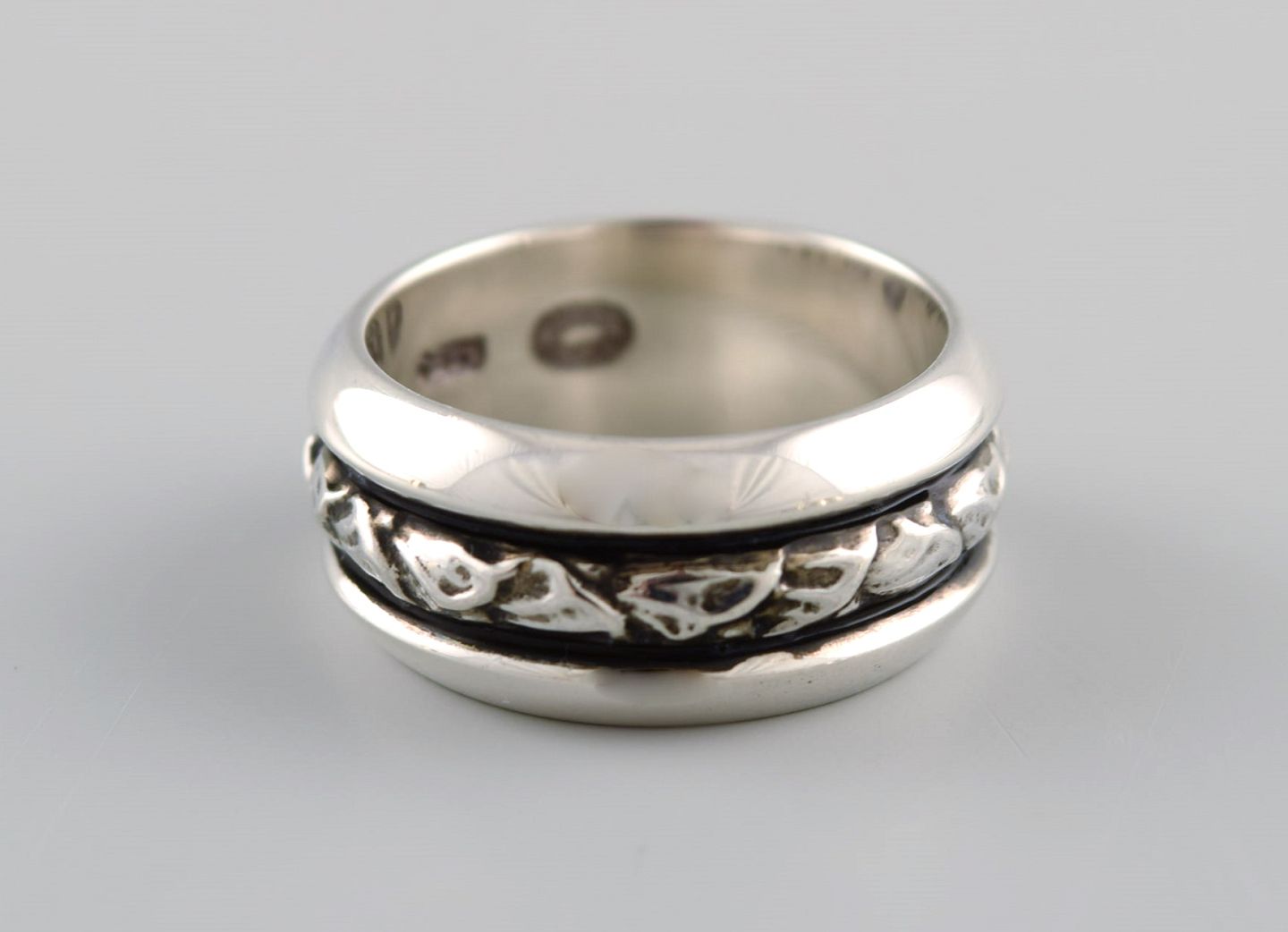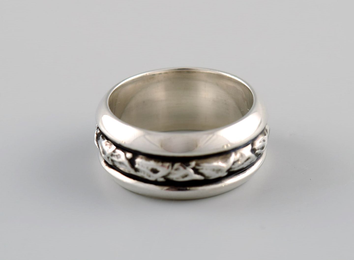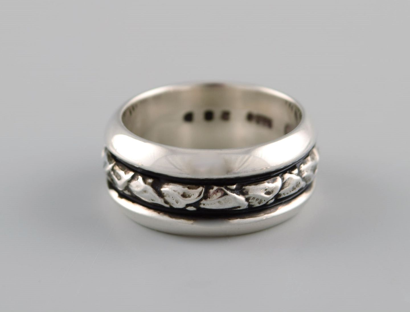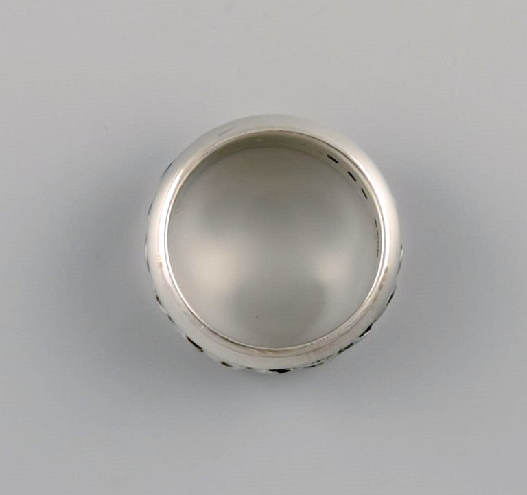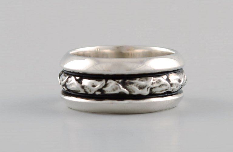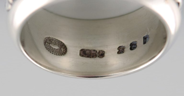 Georg Jensen ring i sterlingsølv. Model 28D. Sent 1900-tallet. Bredde: 10 mm. Diameter: 18 mm. I flot stand. Stemplet. I de fleste tilfælde kan vi mod et gebyr (kr. 300) pr ring, få ændret størrelsen.