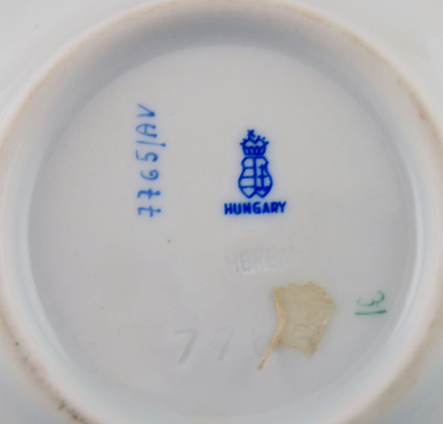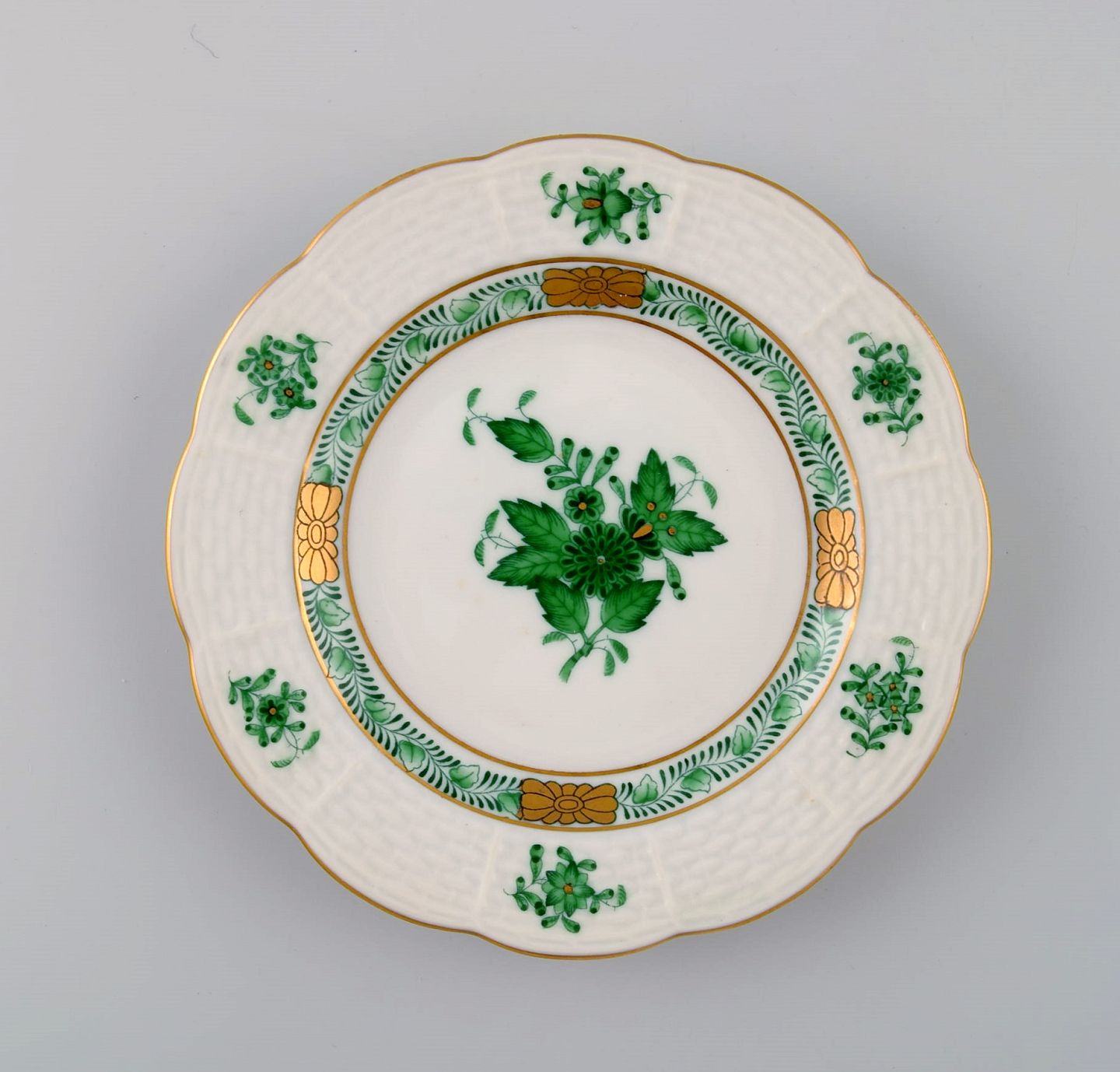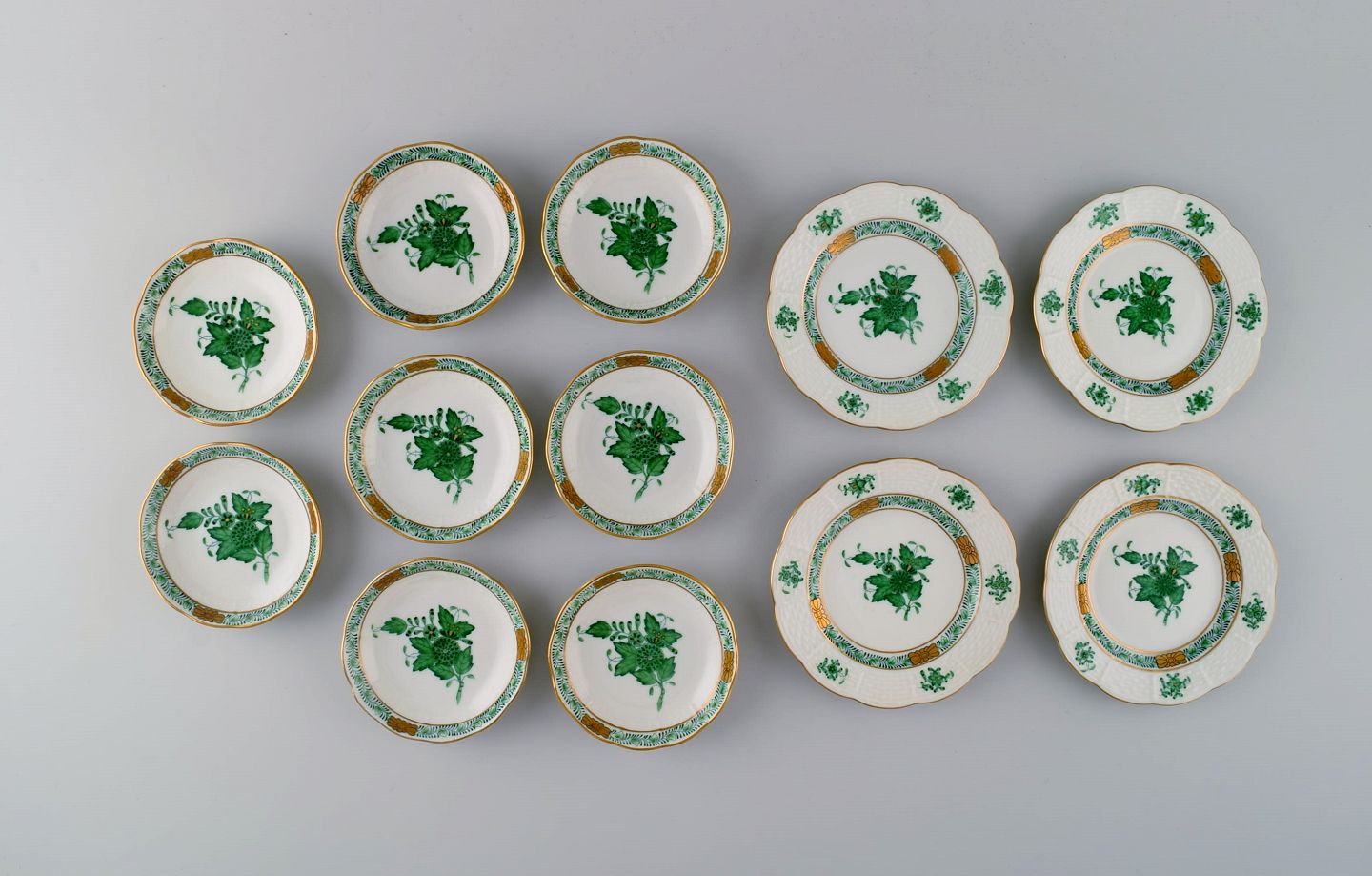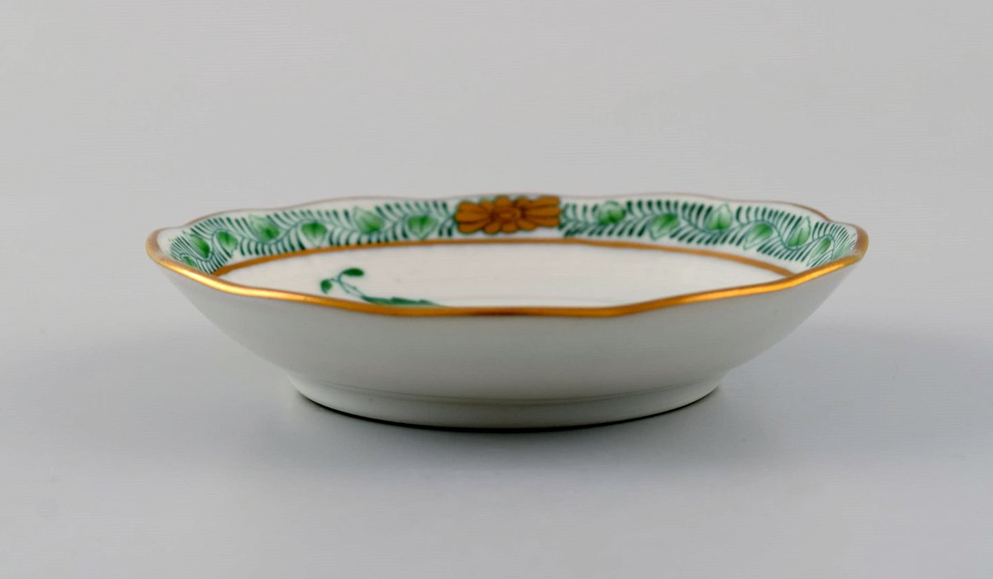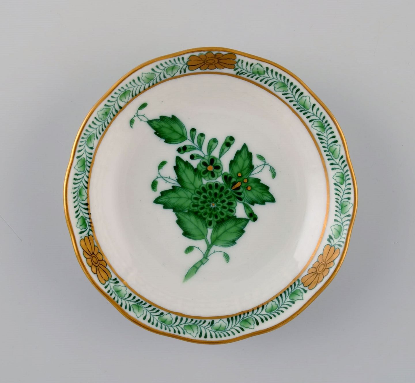 Herend Green Chinese Bouquet. Eight small bowls and four plates in hand-painted porcelain. Mid-20th century. Plate diameter: 12.5 cm. The bowls measure: 9.5 x 2 cm. In excellent condition. Stamped.