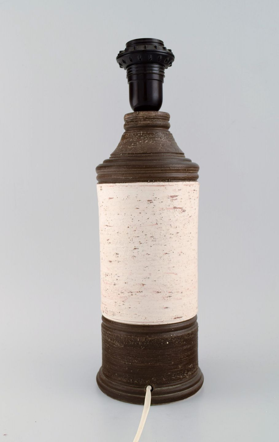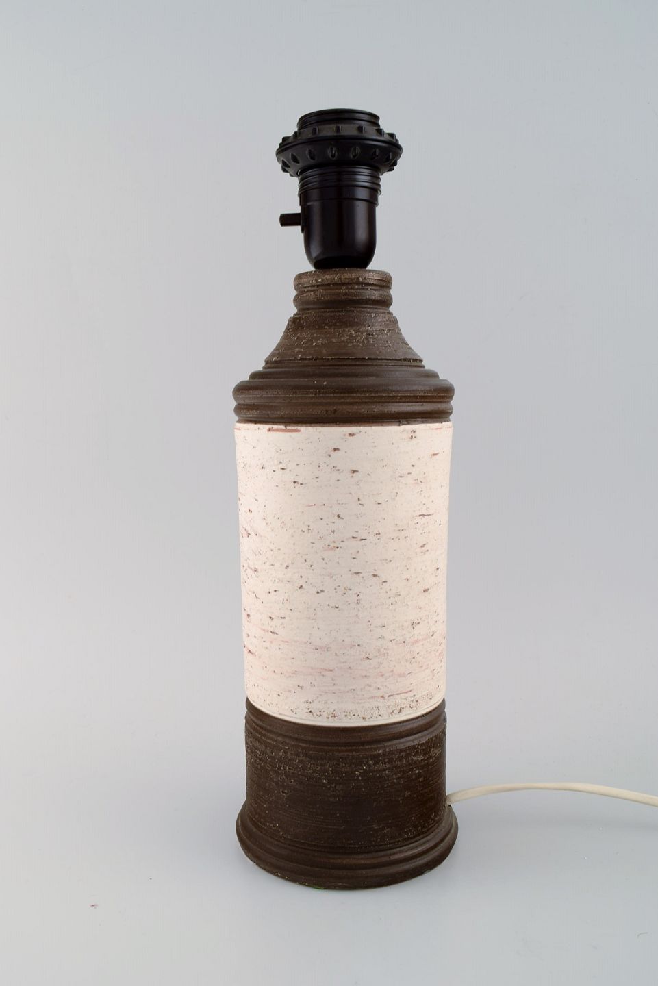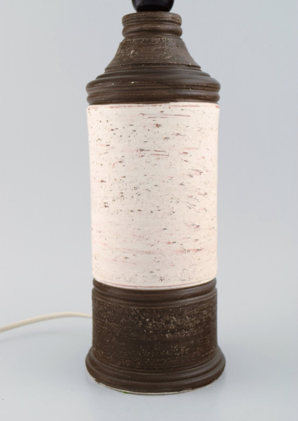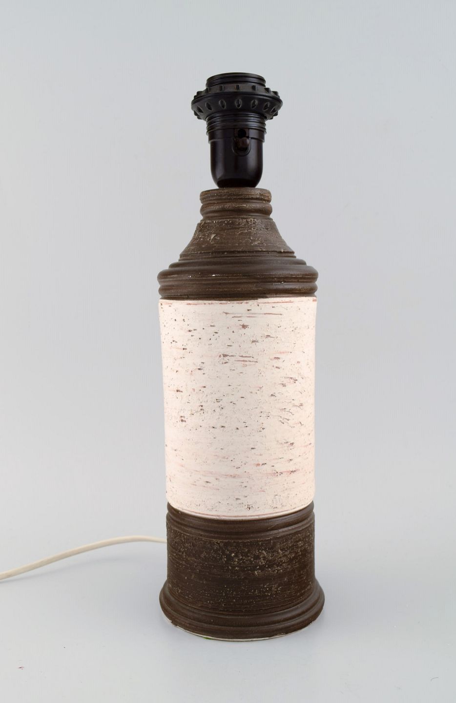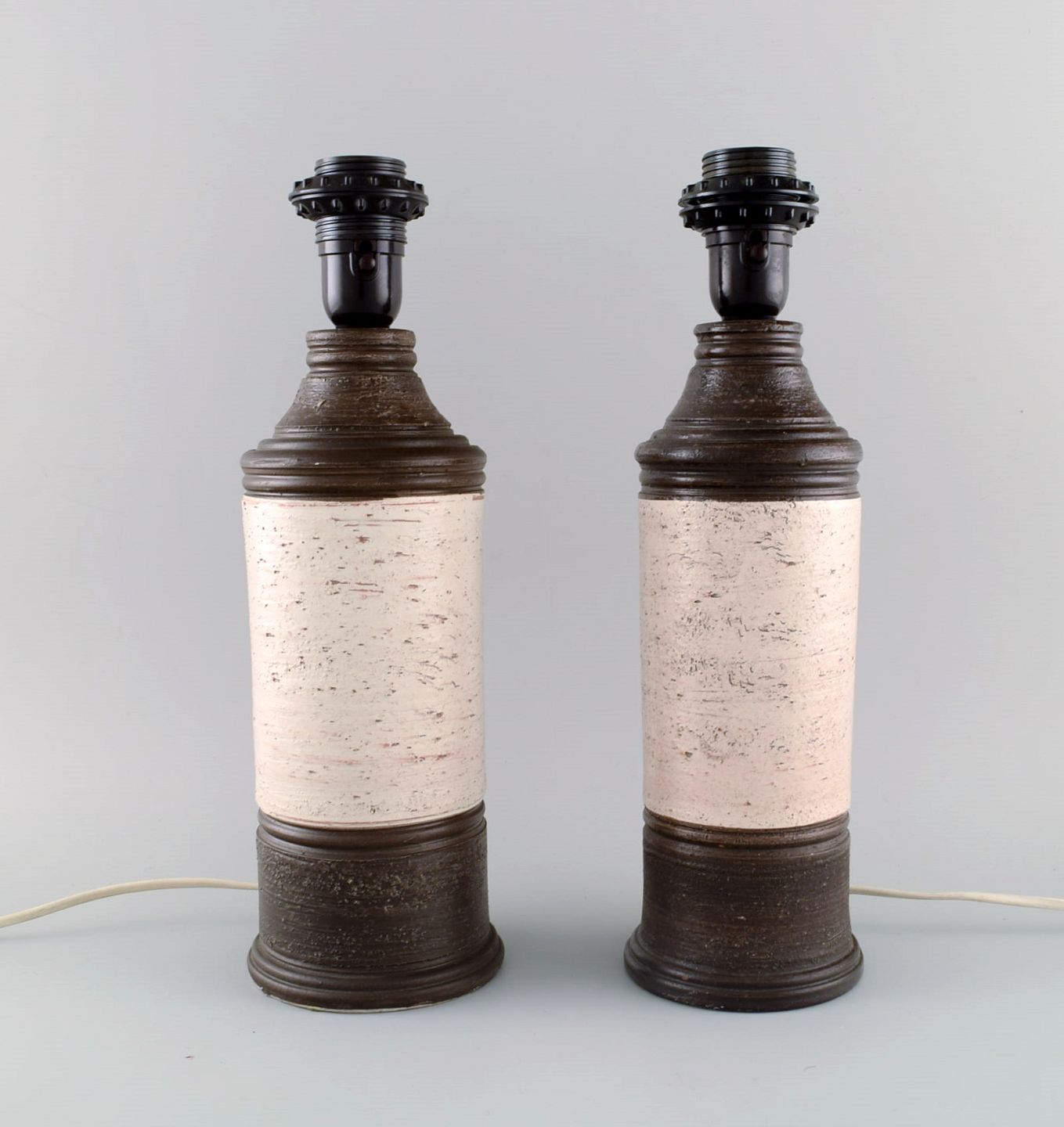 Bitossi for Bergboms, Sweden. Two table lamps in glazed stoneware. Beautiful glaze in sand and brown shades. 1960s.