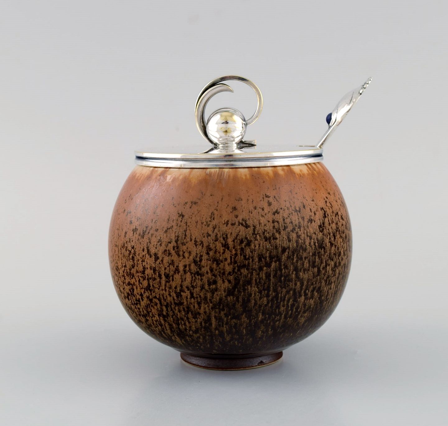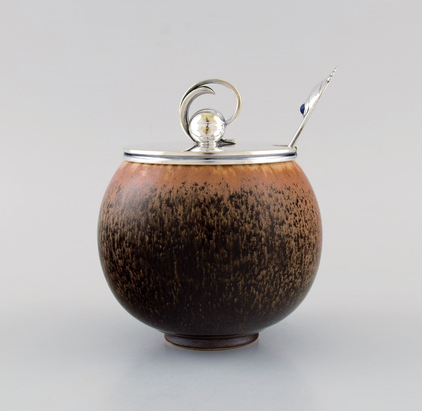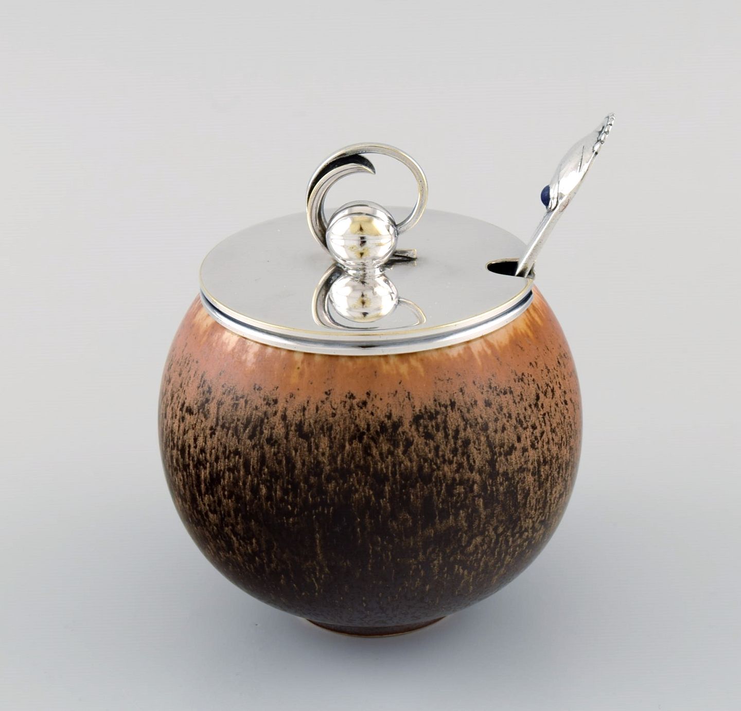 Hugo Grön lid in plated silver and Evald Nielsen number 10 silver spoon (830).