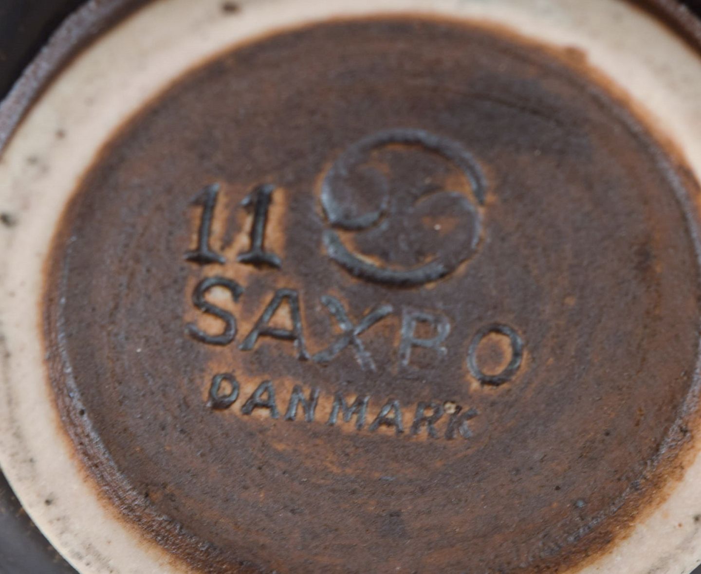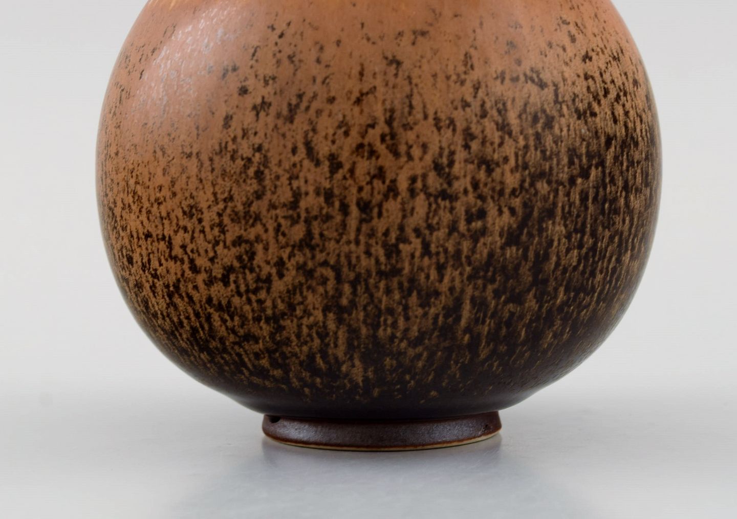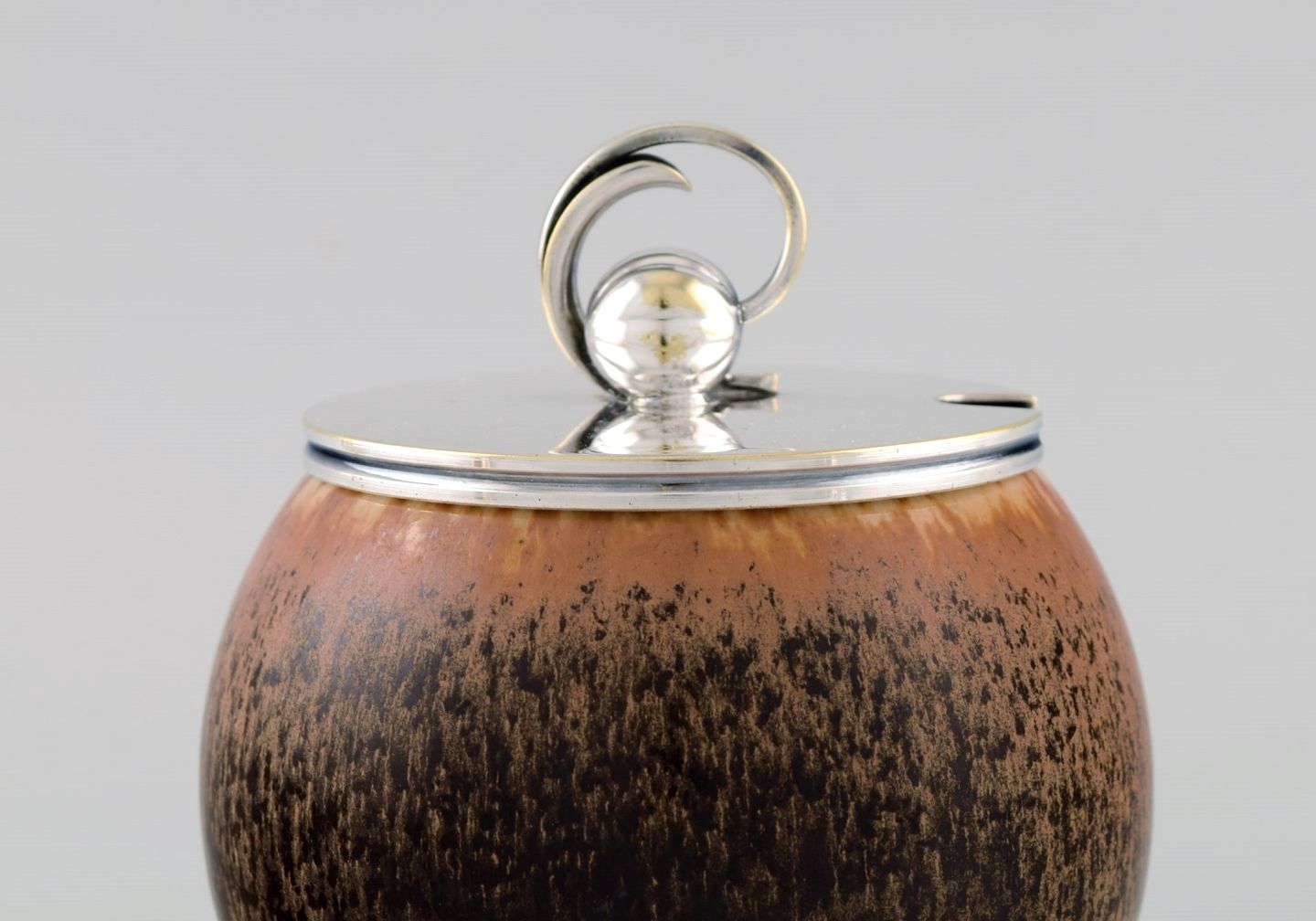 Saxbo lidded jar in glazed stoneware. Beautiful speckled glaze in light brown shades. 1940s.