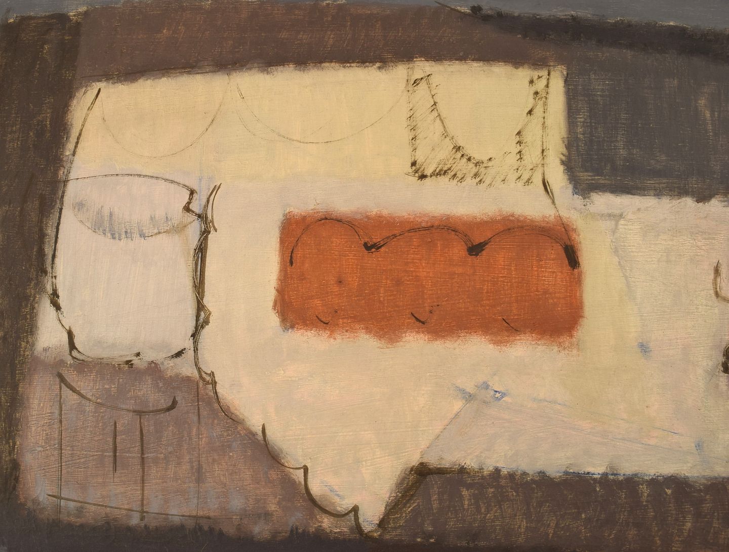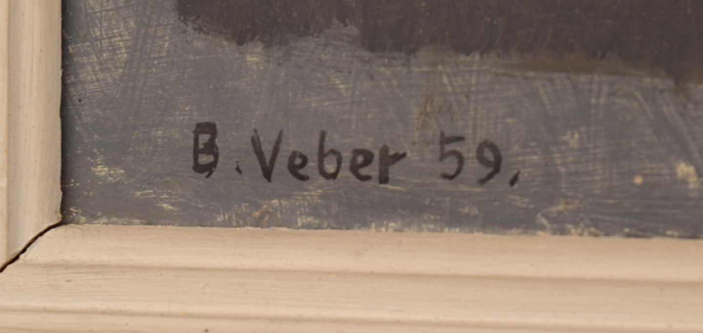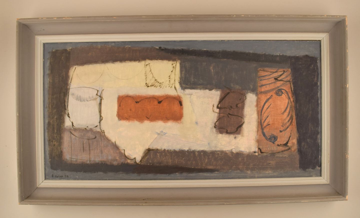 Bendt Veber (1925-1995), Denmark. Oil on canvas. Abstract still life. Dated 1958. The canvas measures: 81 x 39 cm. The frame measures: 6.5 cm. In excellent condition. Signed and dated.