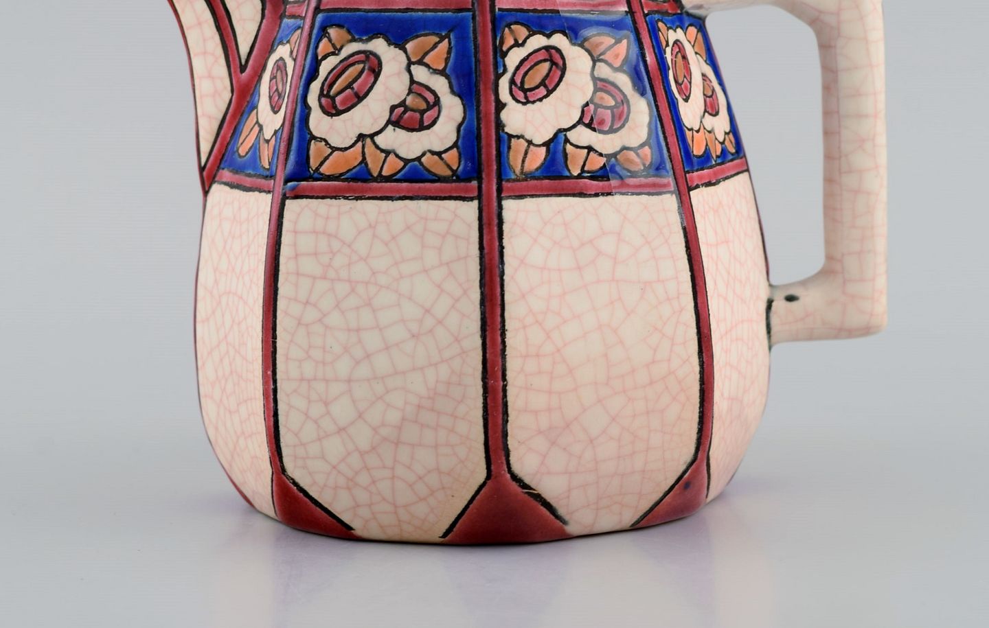 Longwy, Frankrig. Art deco tekande i glaseret stentøj med håndmalet blomsterdekoration. 1920/30'erne. Måler: 15 x 14 cm. I flot stand. Stemplet.