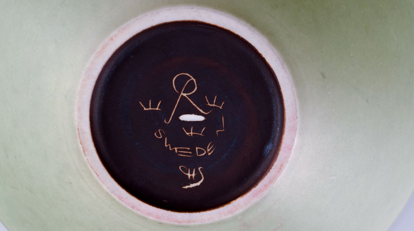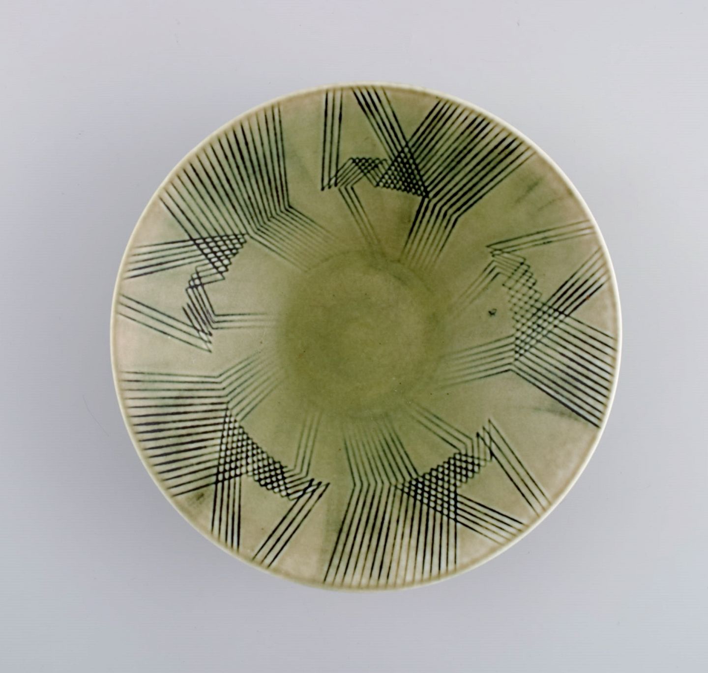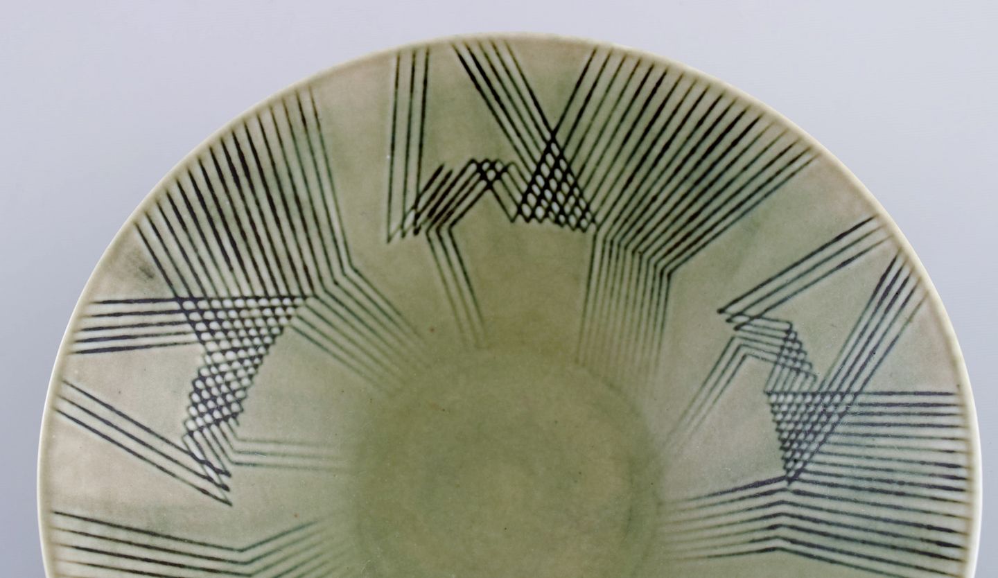 Carl Harry Stålhane (1920-1990) for Rörstrand. Skål i glaseret keramik med kubistisk dekoration. Midt 1900-tallet. Måler: 19,3 x 5,5 cm. I flot stand. Stemplet. 1. Sortering.