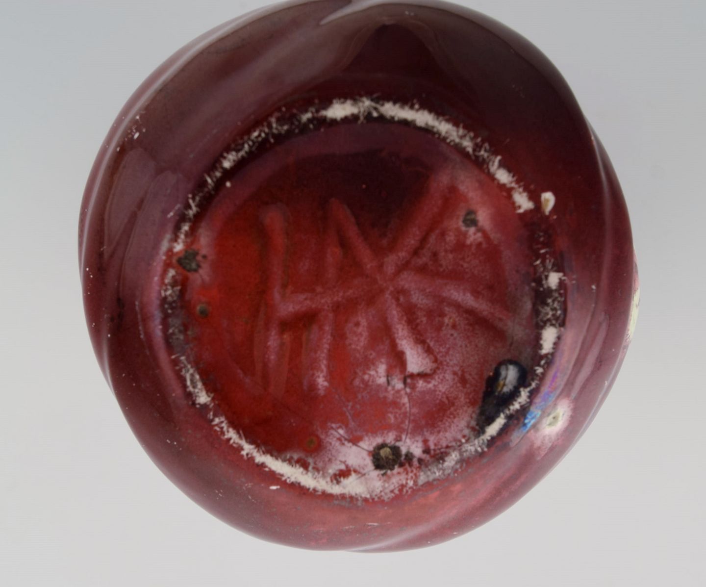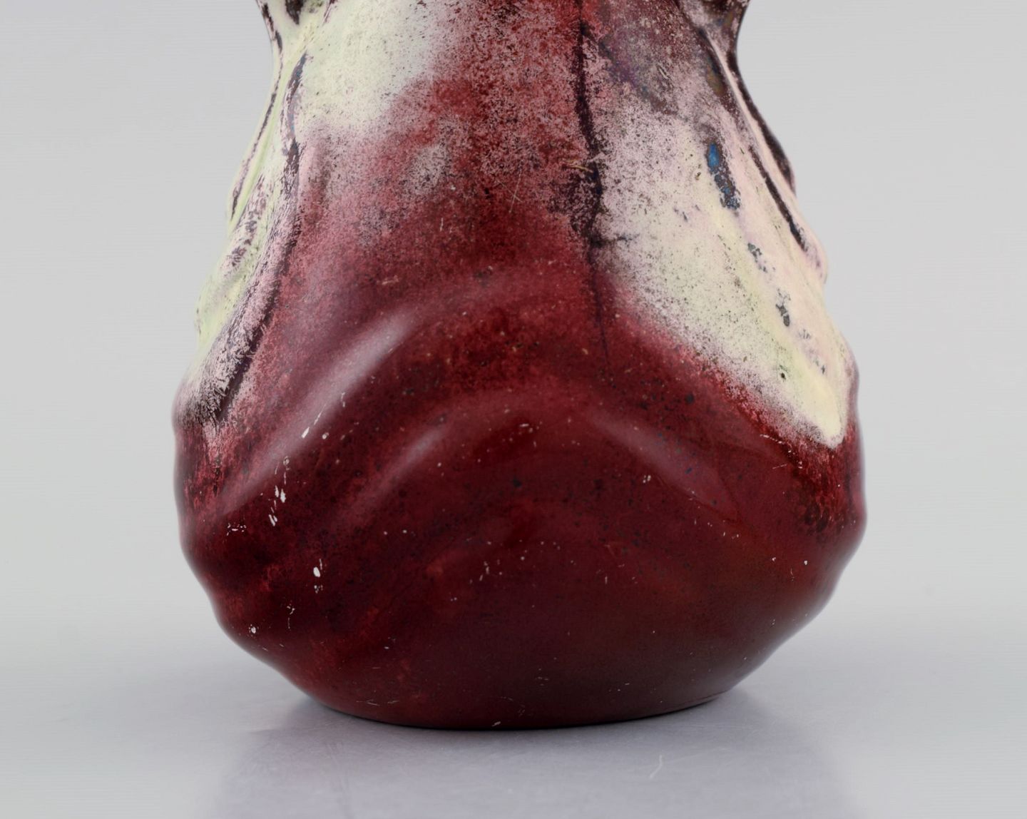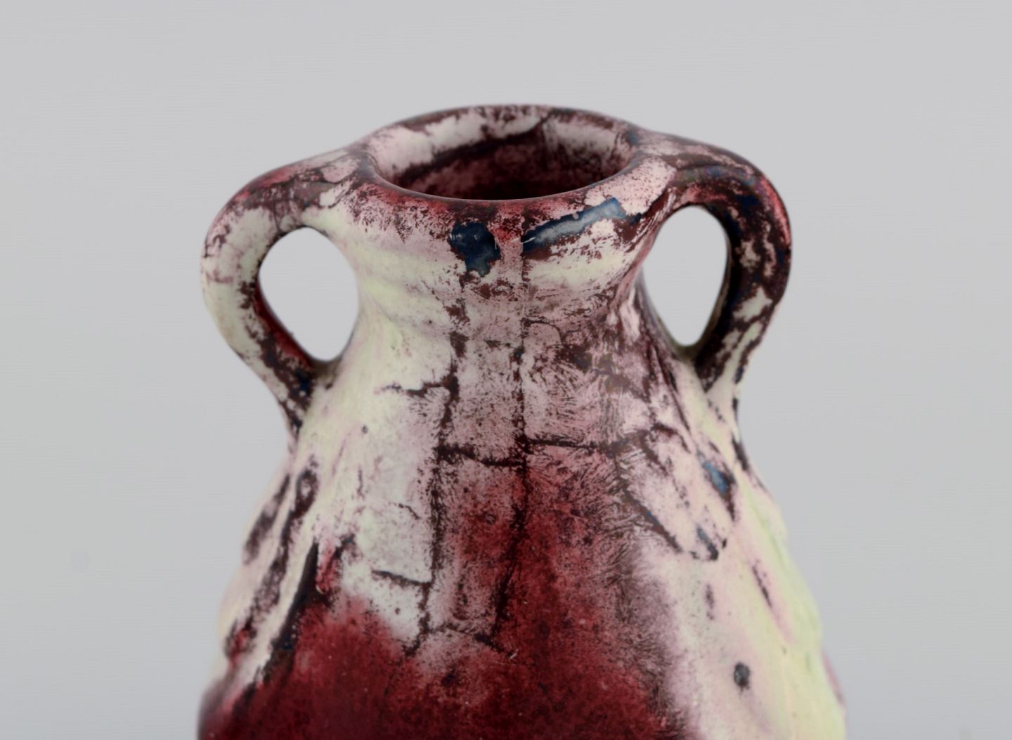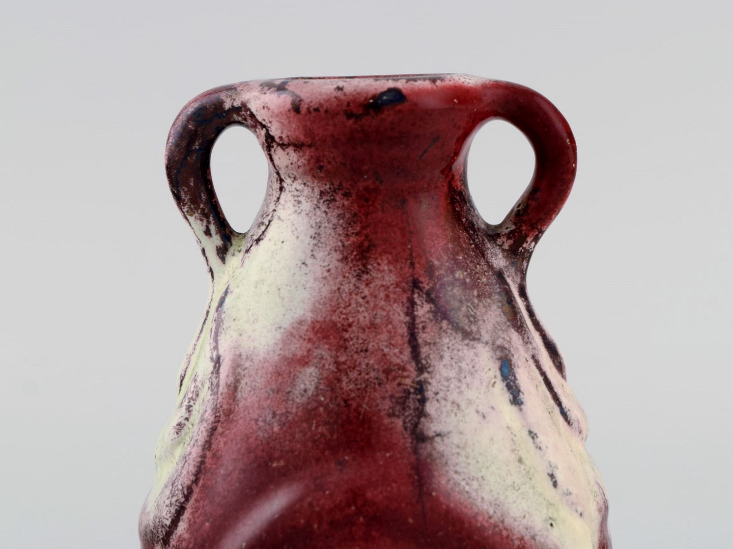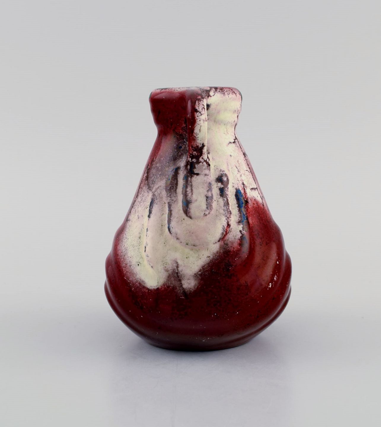 Karl Hansen Reistrup for Kähler. Antik vase med hanke i glaseret keramik. Smuk lustre glasur. 1890'erne. Måler: 12 x 9,2 cm. I flot stand med brugspræg. Signeret.