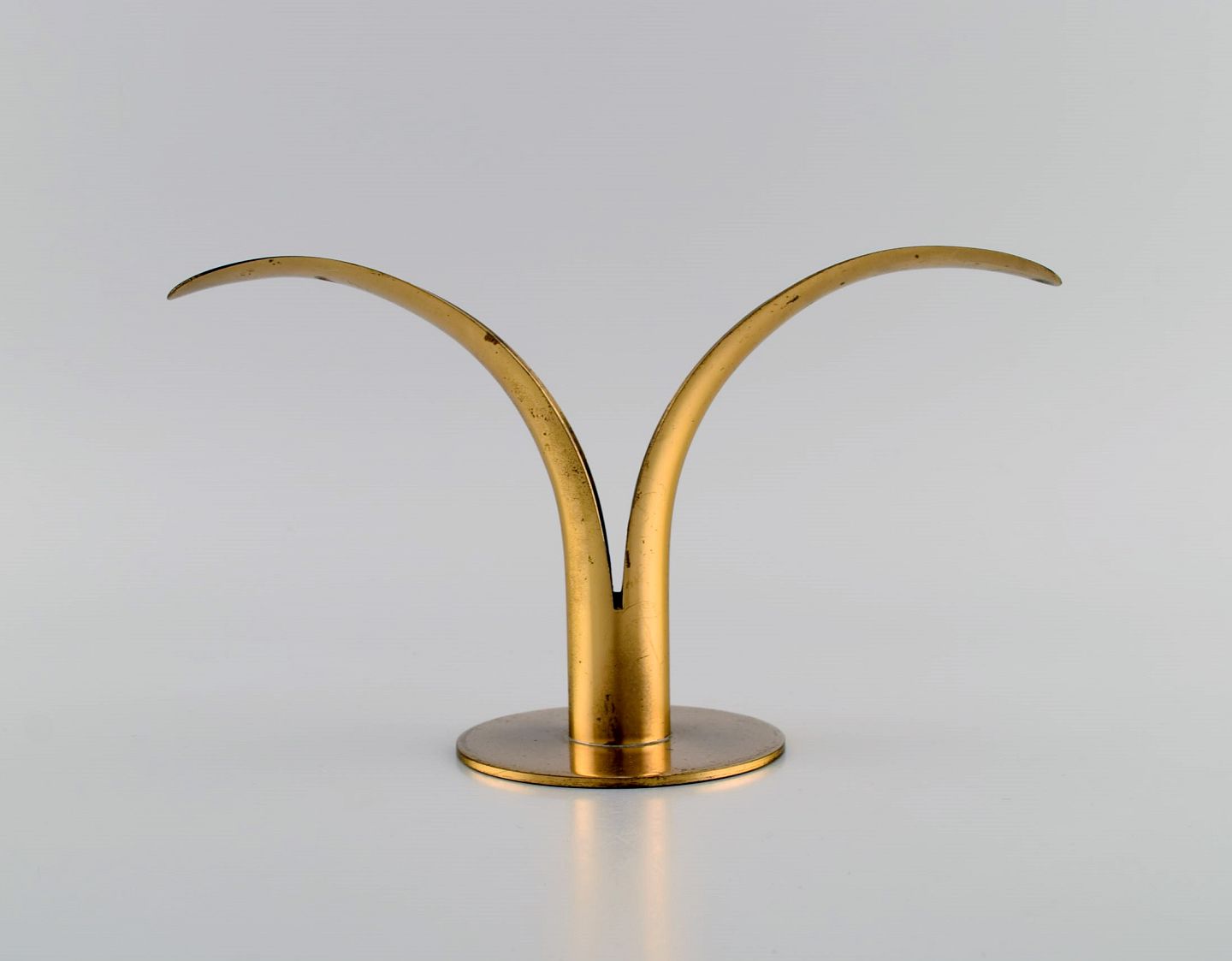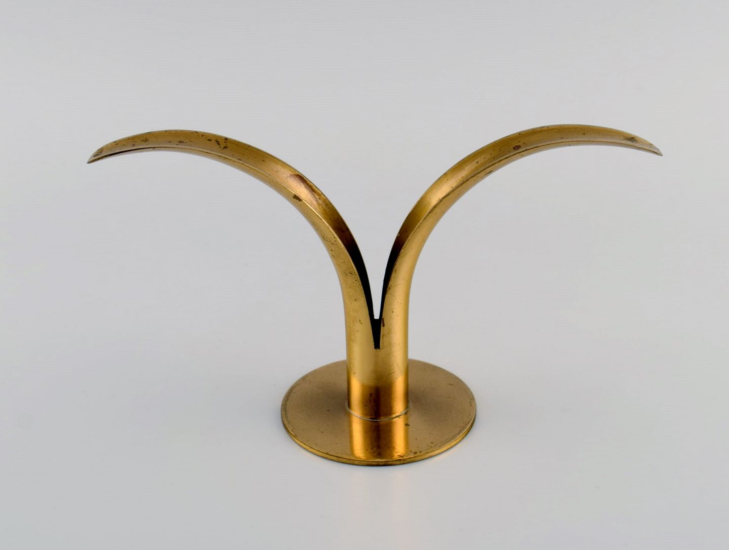Ivar Ålenius Björk for Ystad metal. Liljan brass candlestick. Swedish design, mid 20th century. Measures: 22 x 12 cm. In excellent condition with minor wear. Stamped.