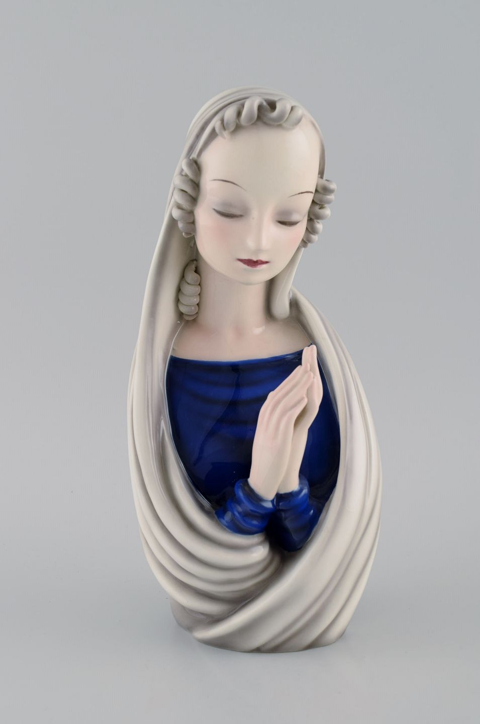 Rudolf Knörlein (1902-1982) for Goldscheider. Art deco figure in glazed ceramics. Praying Madonna. 1940s. Measures: 26.5 x 13 cm. In excellent condition. Stamped.
