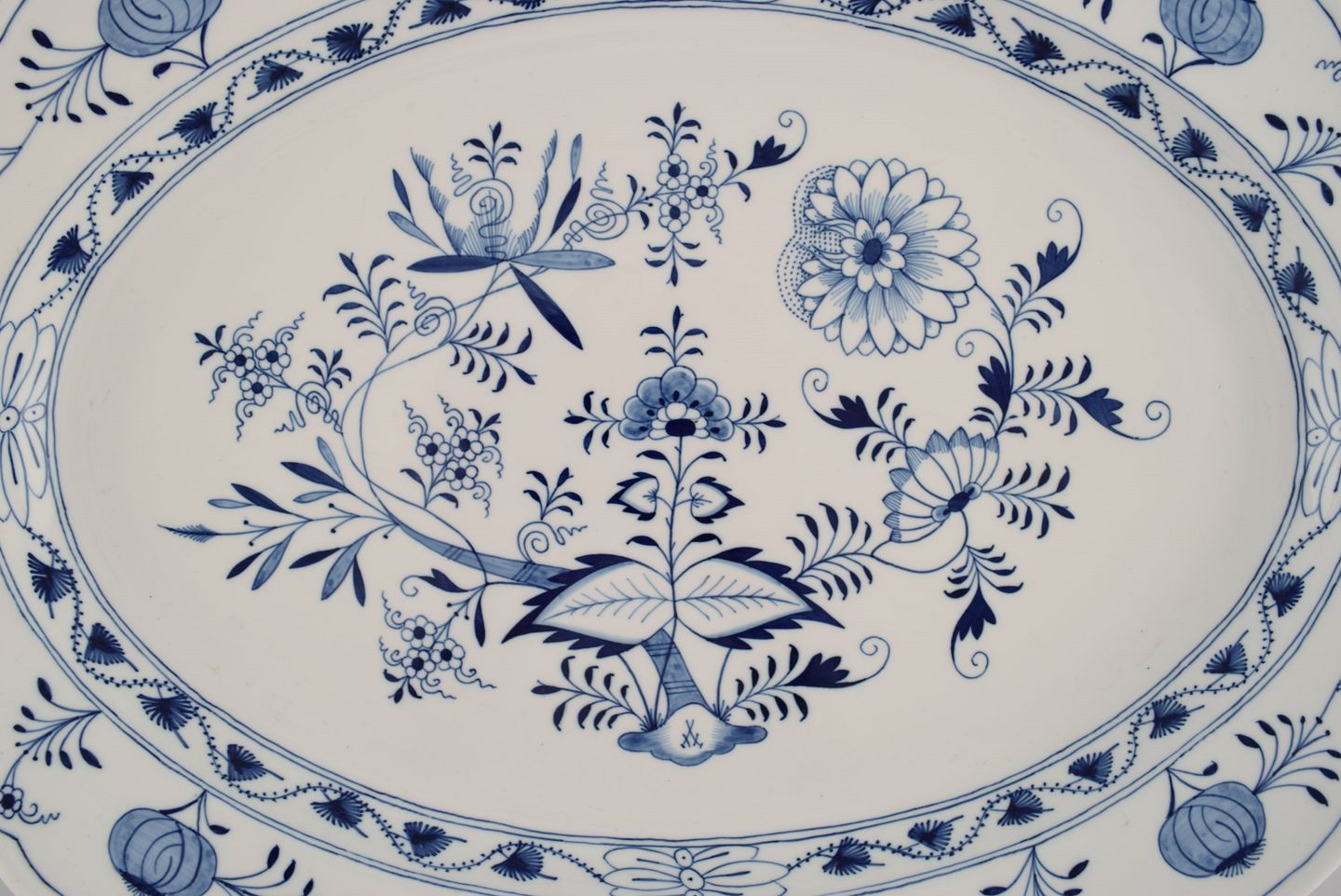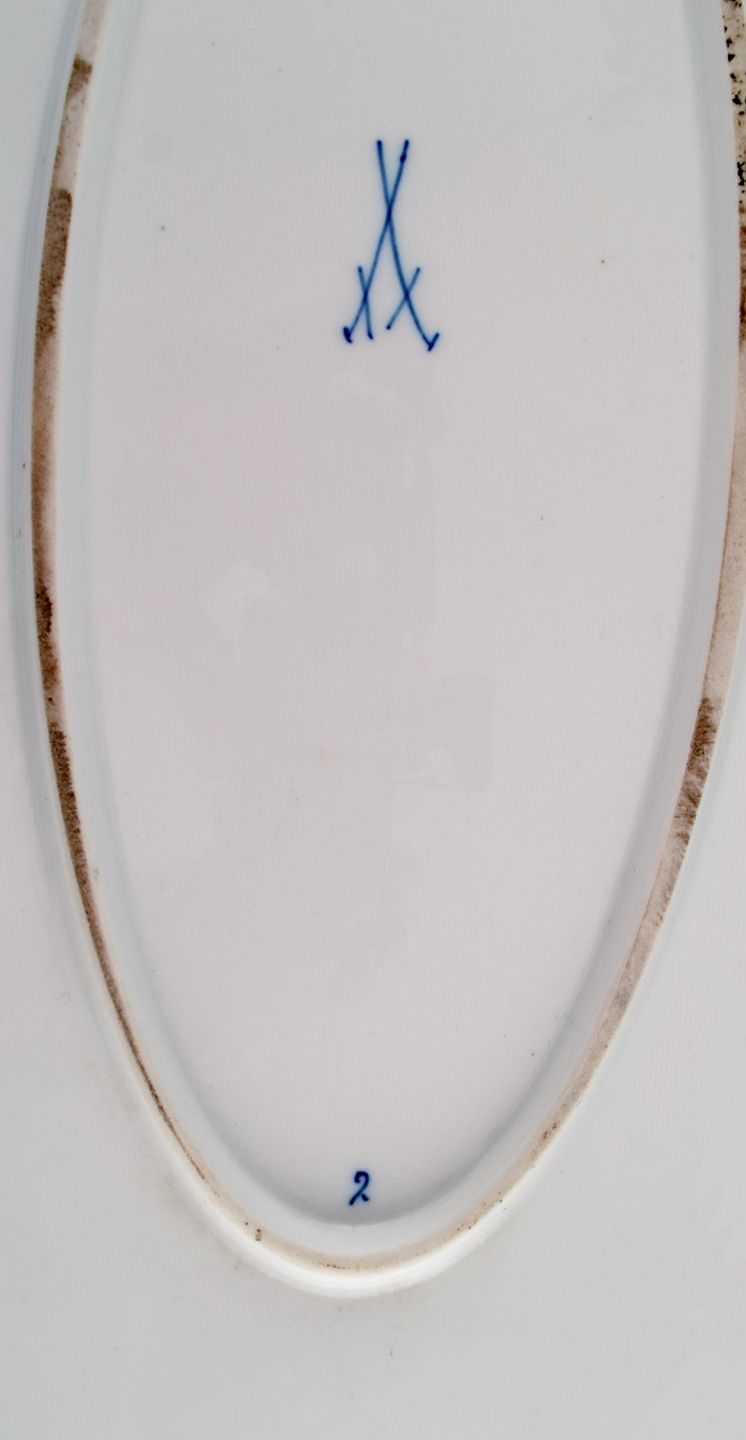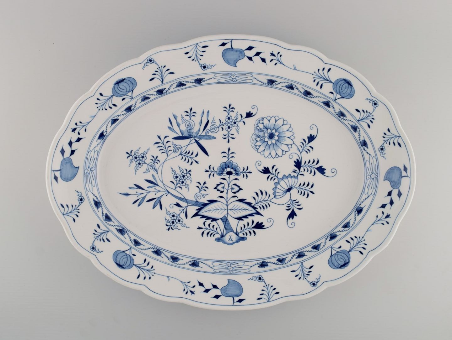 Giant antique Meissen Blue Onion serving dish in hand-painted porcelain. Late 19th century. Measures: 55 x 42 x 6.5 cm. In excellent condition. Stamped. 1st factory quality.