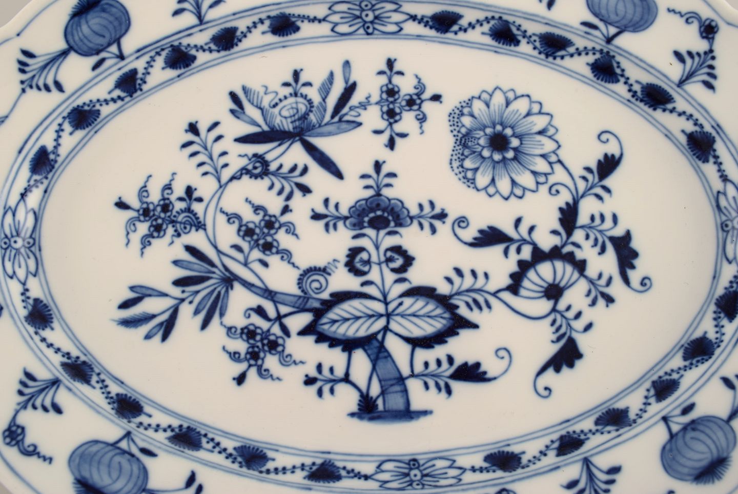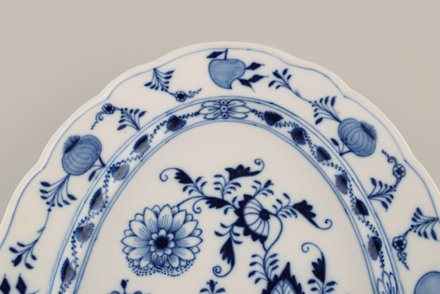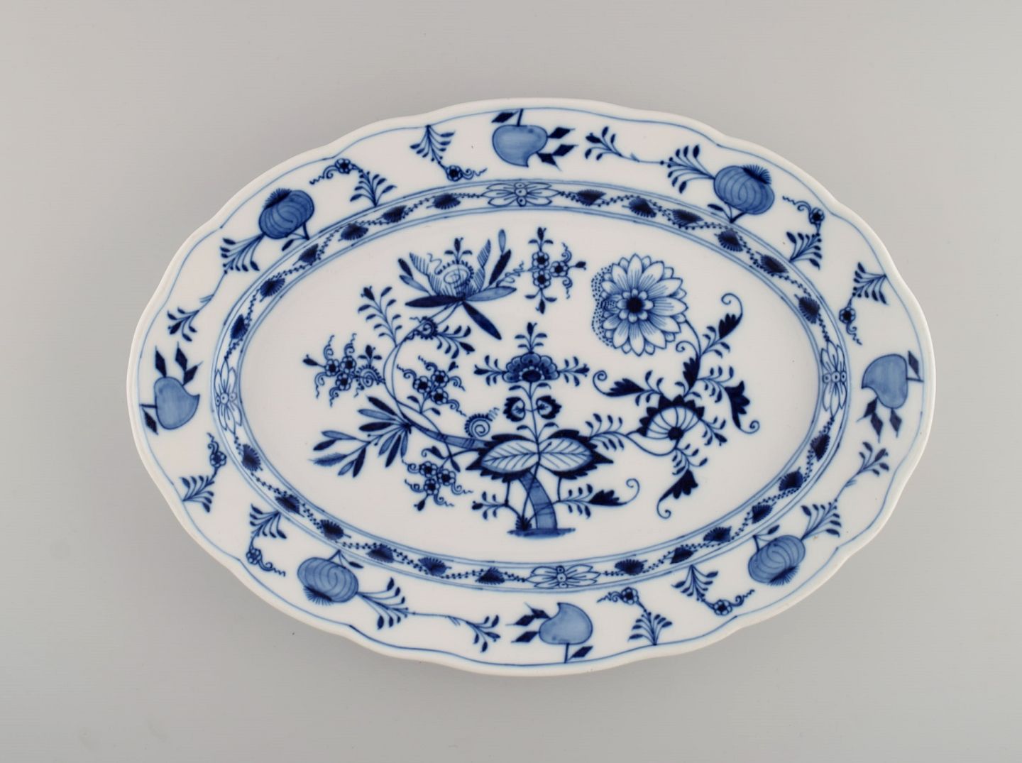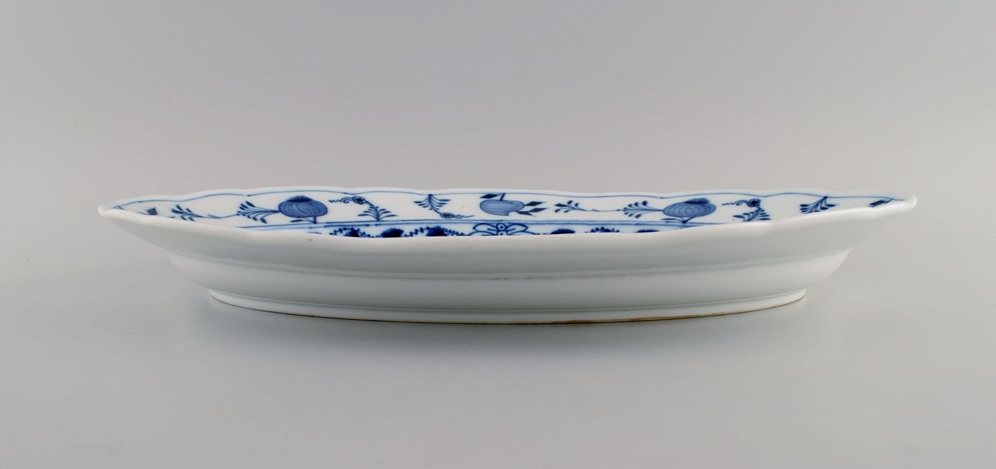 Large antique Meissen Blue Onion serving dish in hand-painted porcelain. Late 19th century. Measures: 40.5 x 29 x 4 cm. In excellent condition. Stamped. 3rd factory quality.