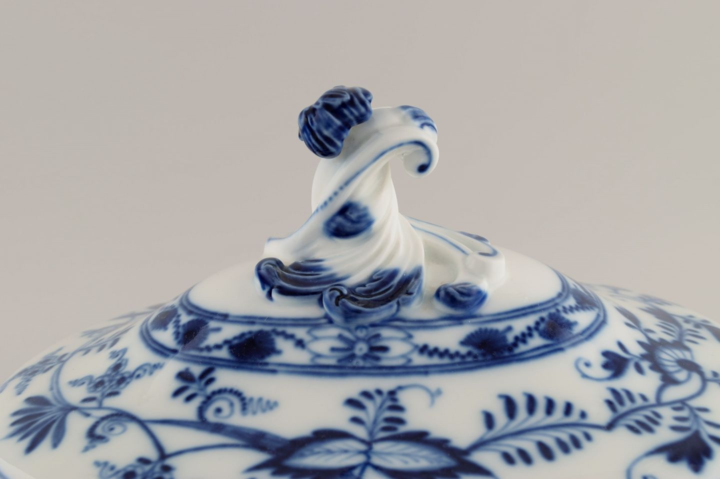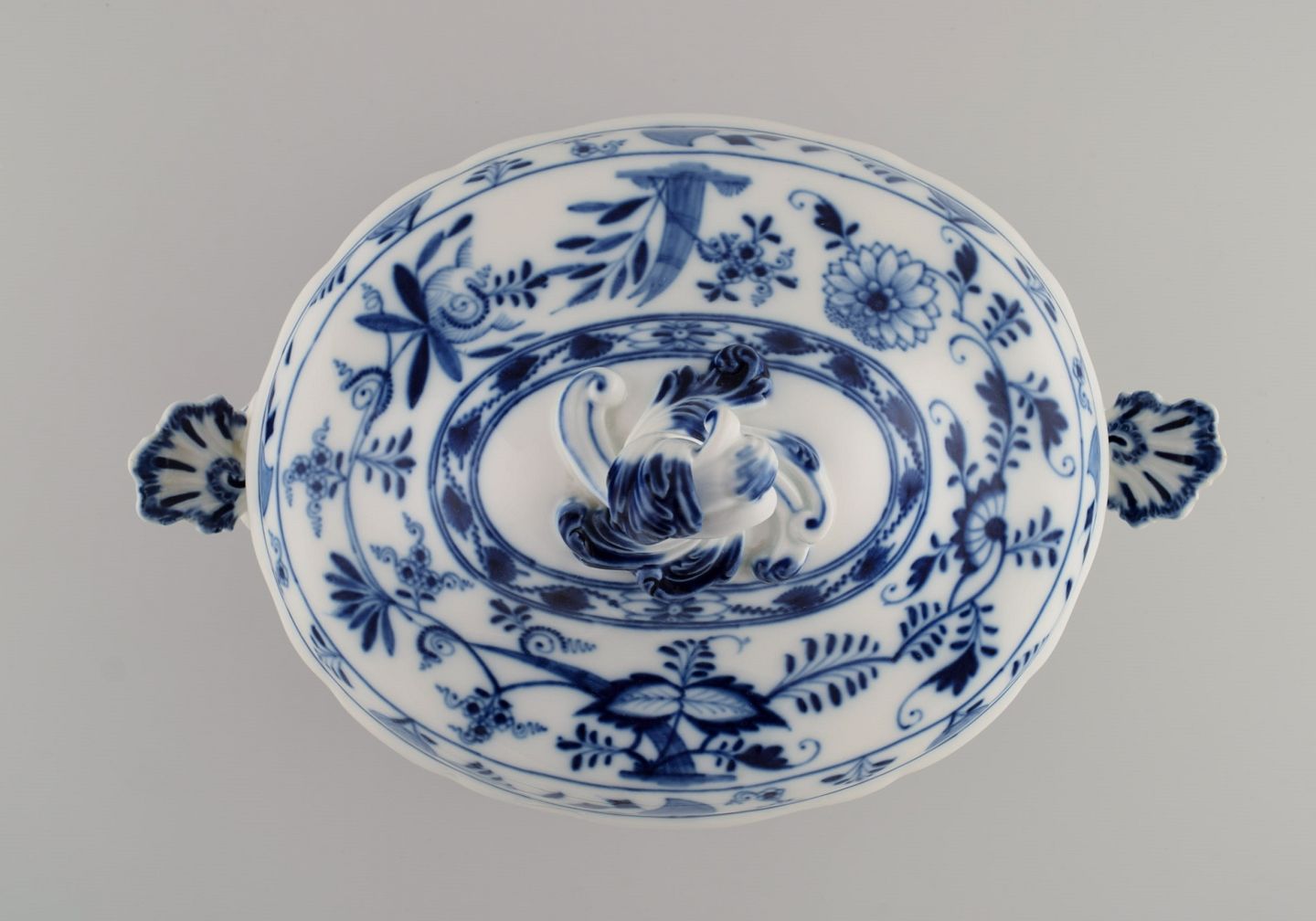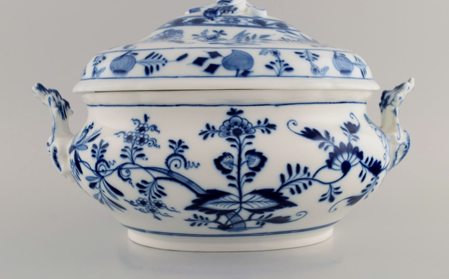 Large antique Meissen Blue Onion soup tureen in hand-painted porcelain. Late 19th century.