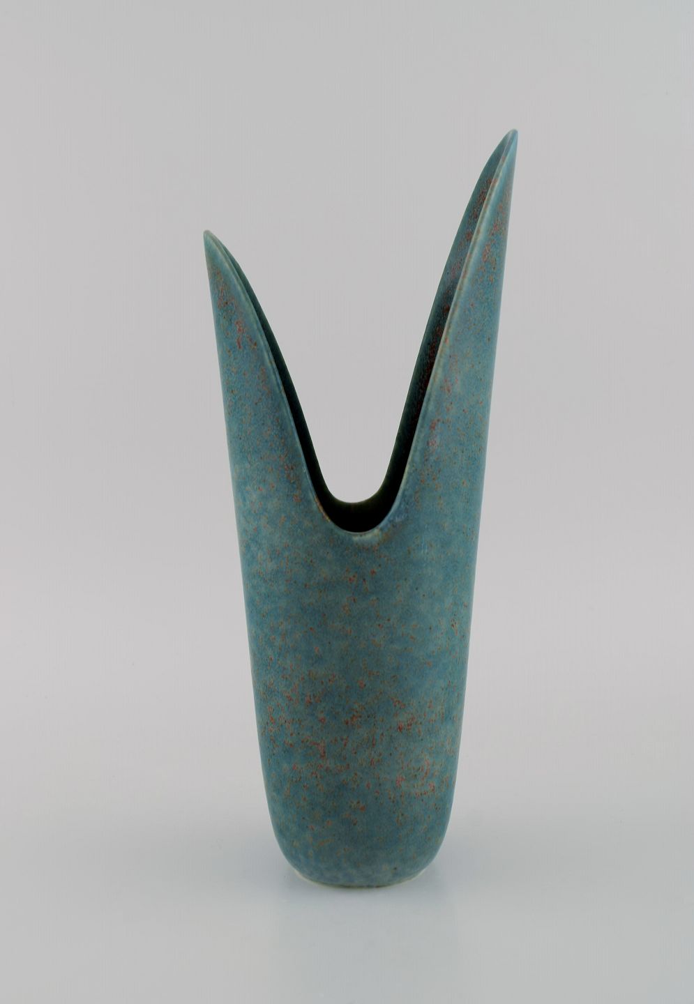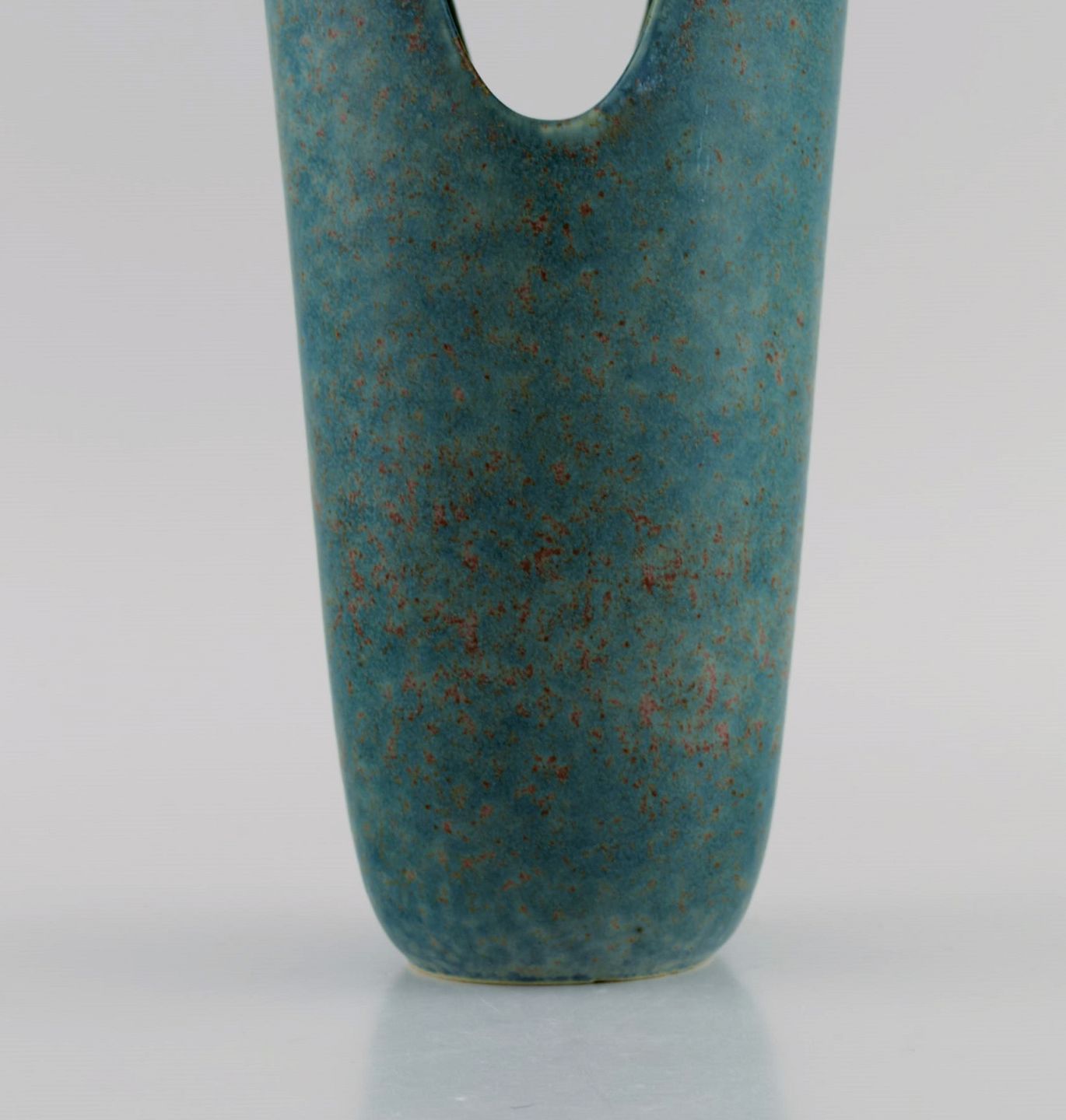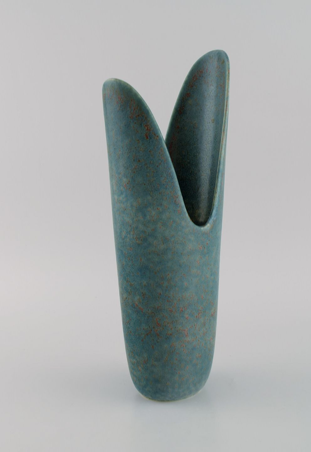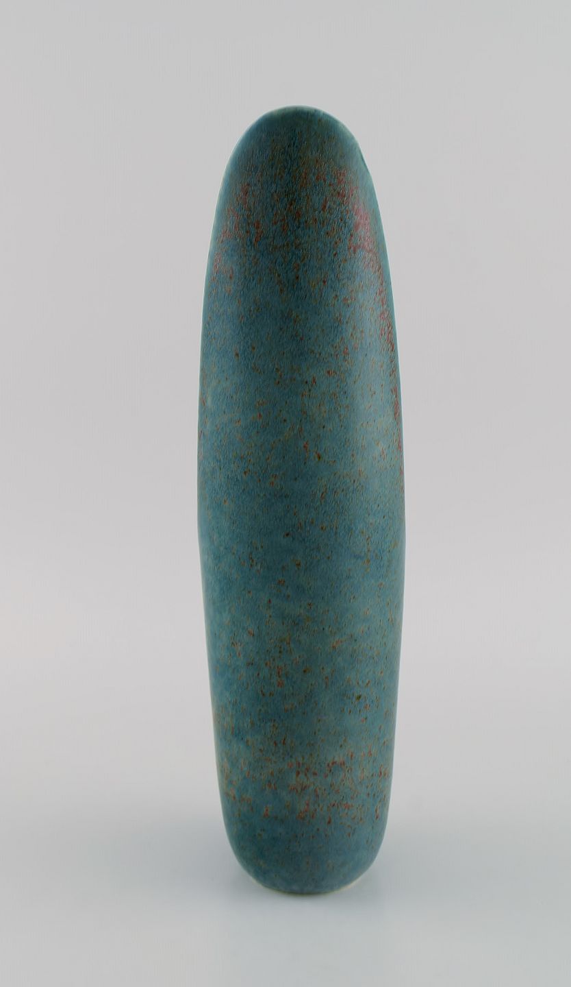 Gunnar Nylund for Rörstrand. Sjælden vase i glaseret keramik. Smuk glasur i blågrønne nuancer. Midt 1900-tallet. Måler: 30,5 x 13 cm. I flot stand. Signeret. 2. Sortering.