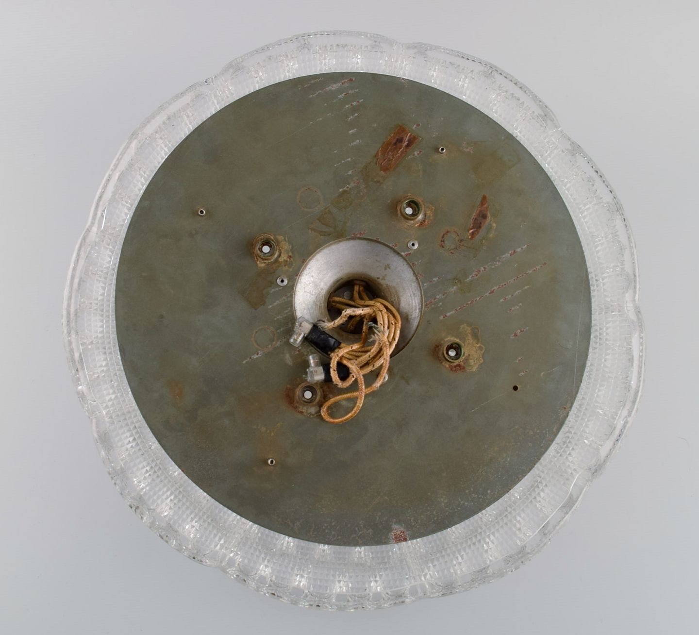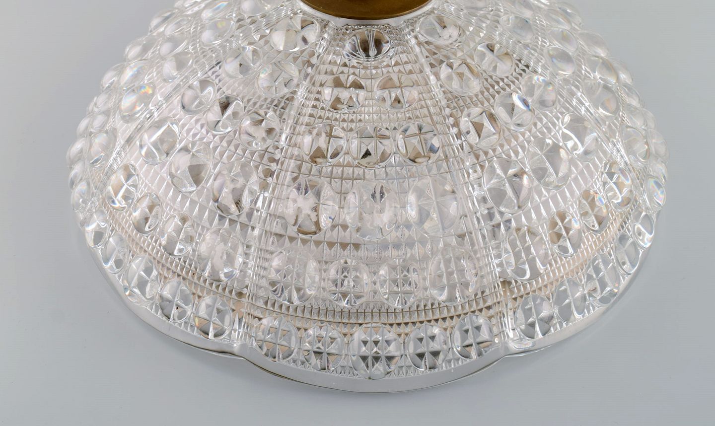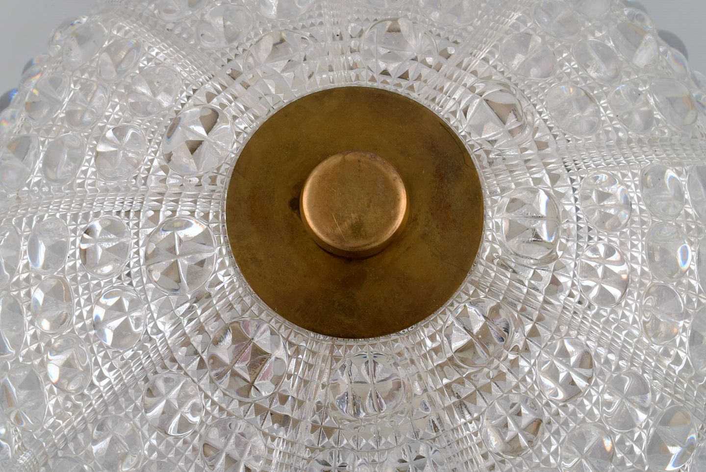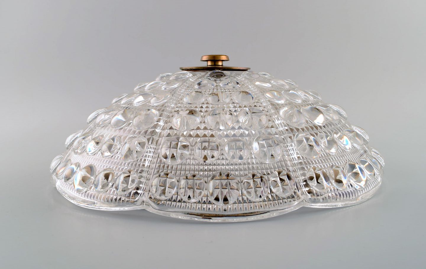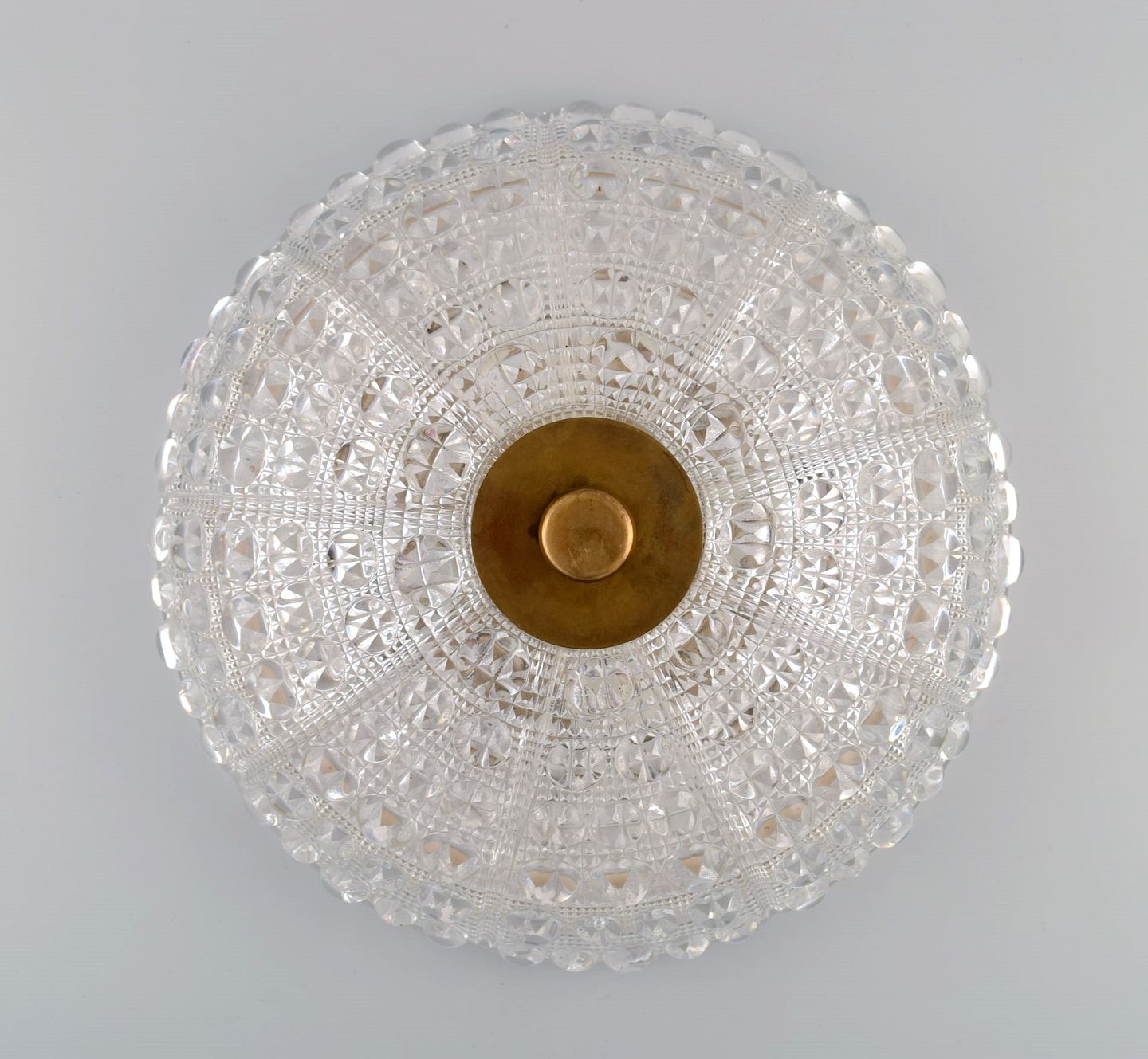 Orrefors væg / loftlampe i klart kunstglas og messing. 1970'erne. Diameter: 36 cm. Dybde: 14 cm. I flot stand.