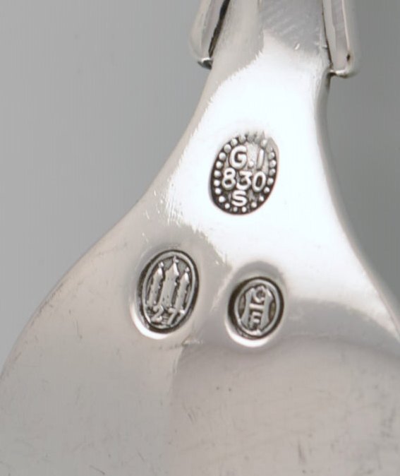 Tidlig Georg Jensen Liljekonval middagsgaffel i sølv (830). Dateret 1915-1930. 15 styk på lager.