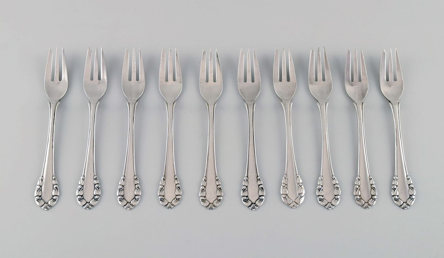 10 Georg Jensen Lily of the valley pastry forks in sterling silver.