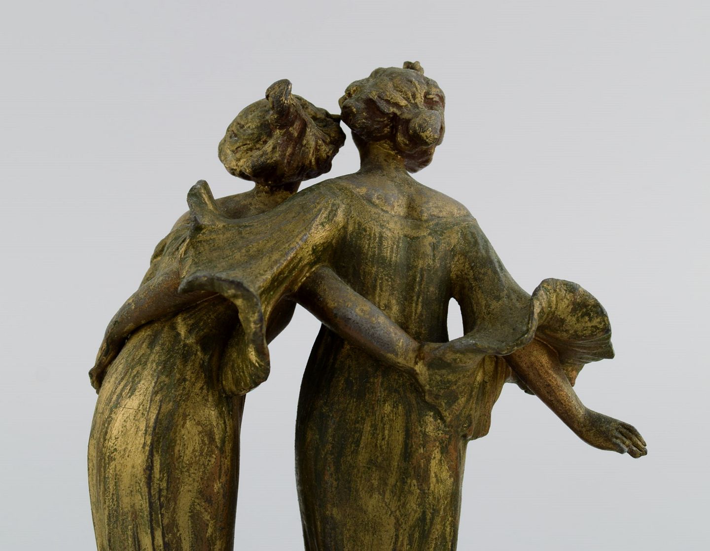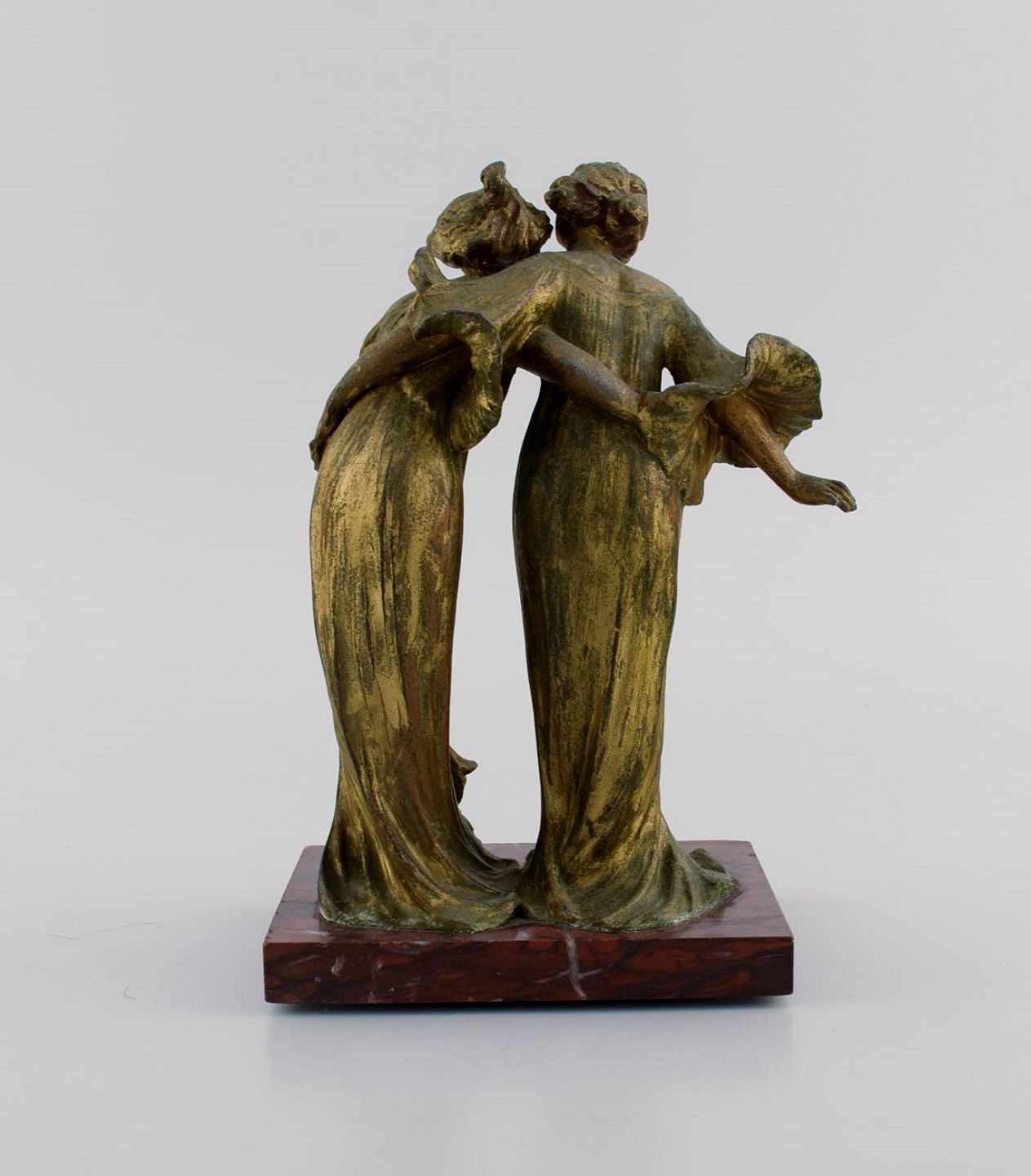 Lucien Charles Edouard Alliot (1877-1967), French sculptor. Art nouveau bronze sculpture. "The Twins". 1920s.