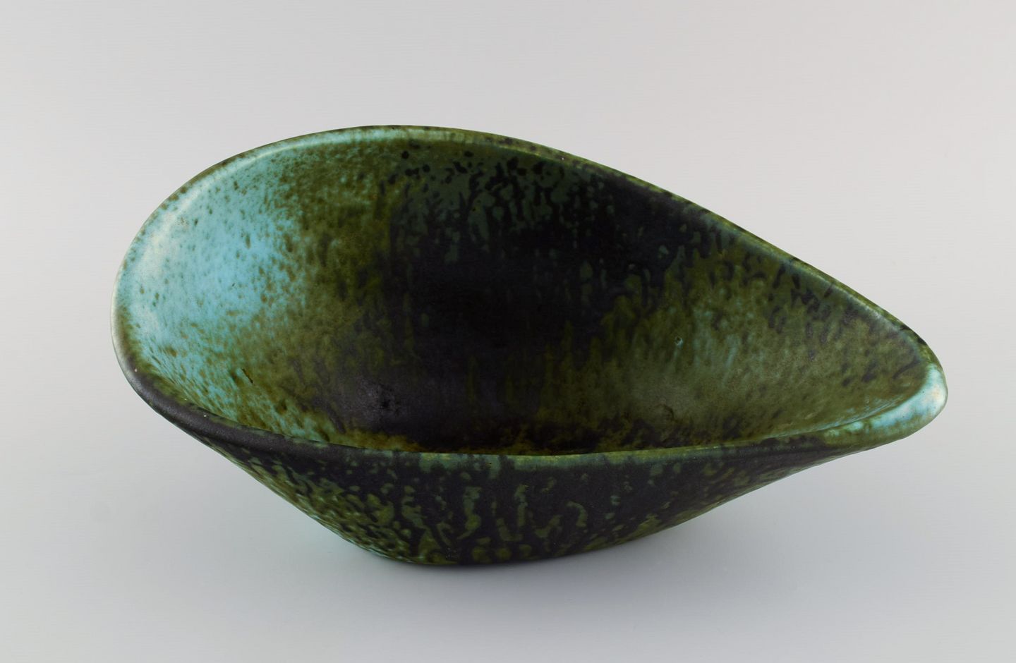 Accolay, Frankrig. Freeform skål i glaseret keramik. Smuk glasur i grønne og mørke nuancer. 1960'erne. Måler: 30 x 14,5 cm. I flot stand. Stemplet.
