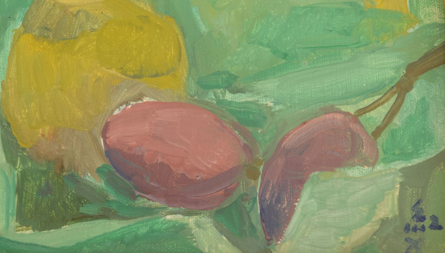 Koko Fukazawa (1903-1993), Japan. Oil on canvas. Arrangement with fruits. Mid-20th century.